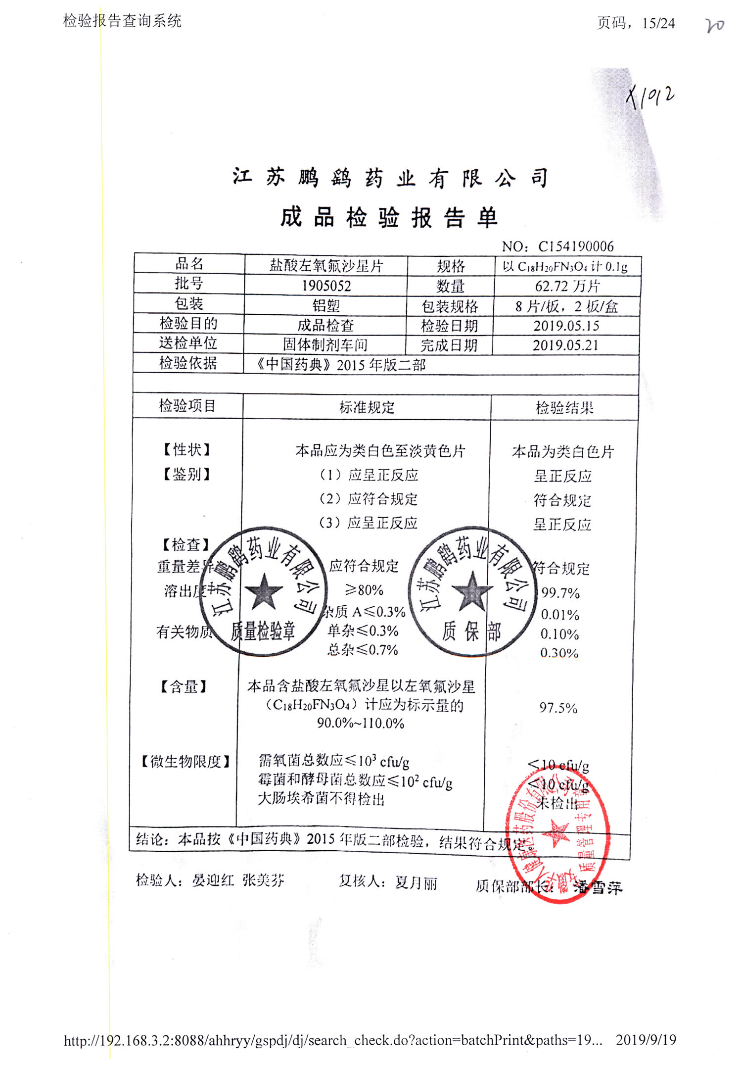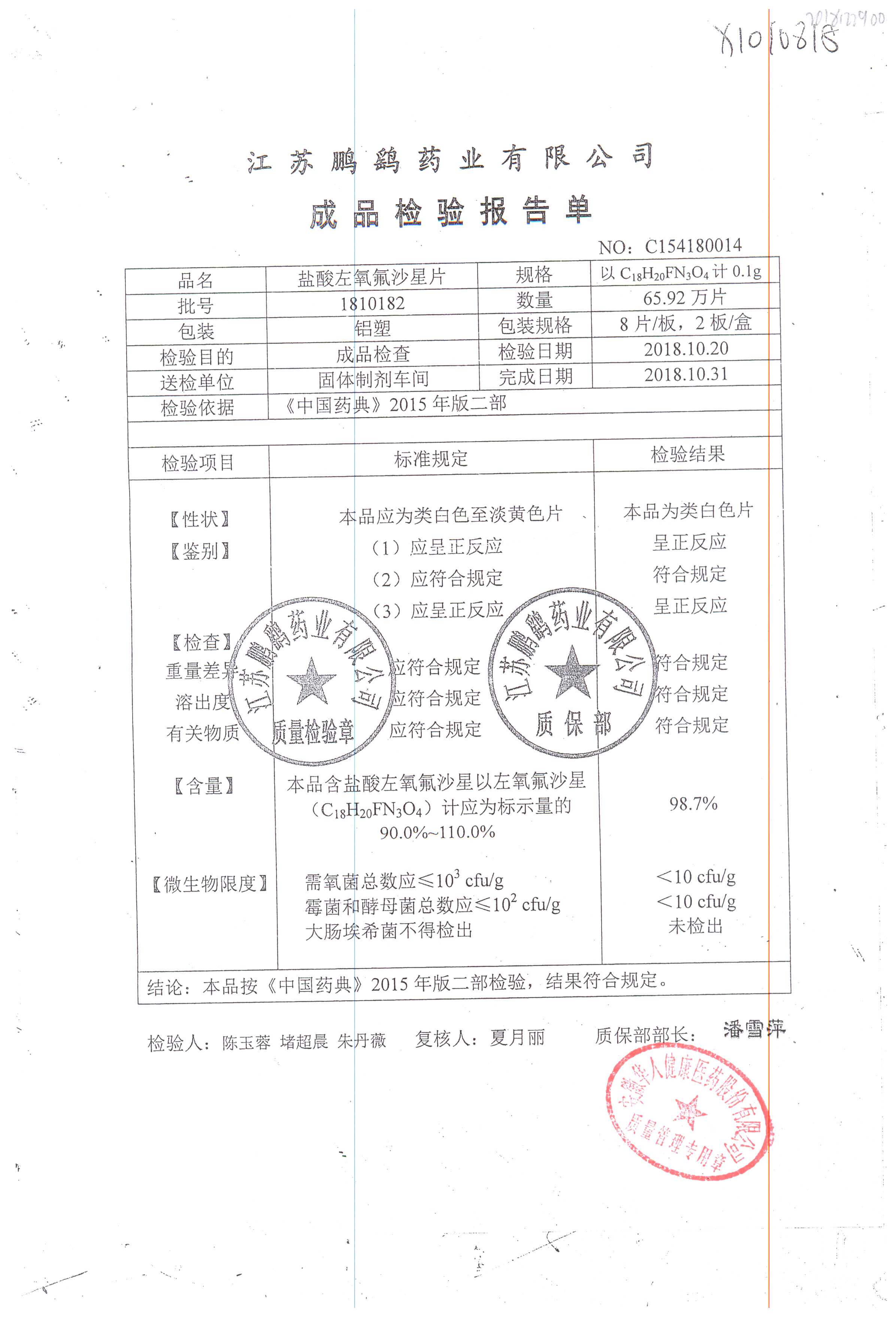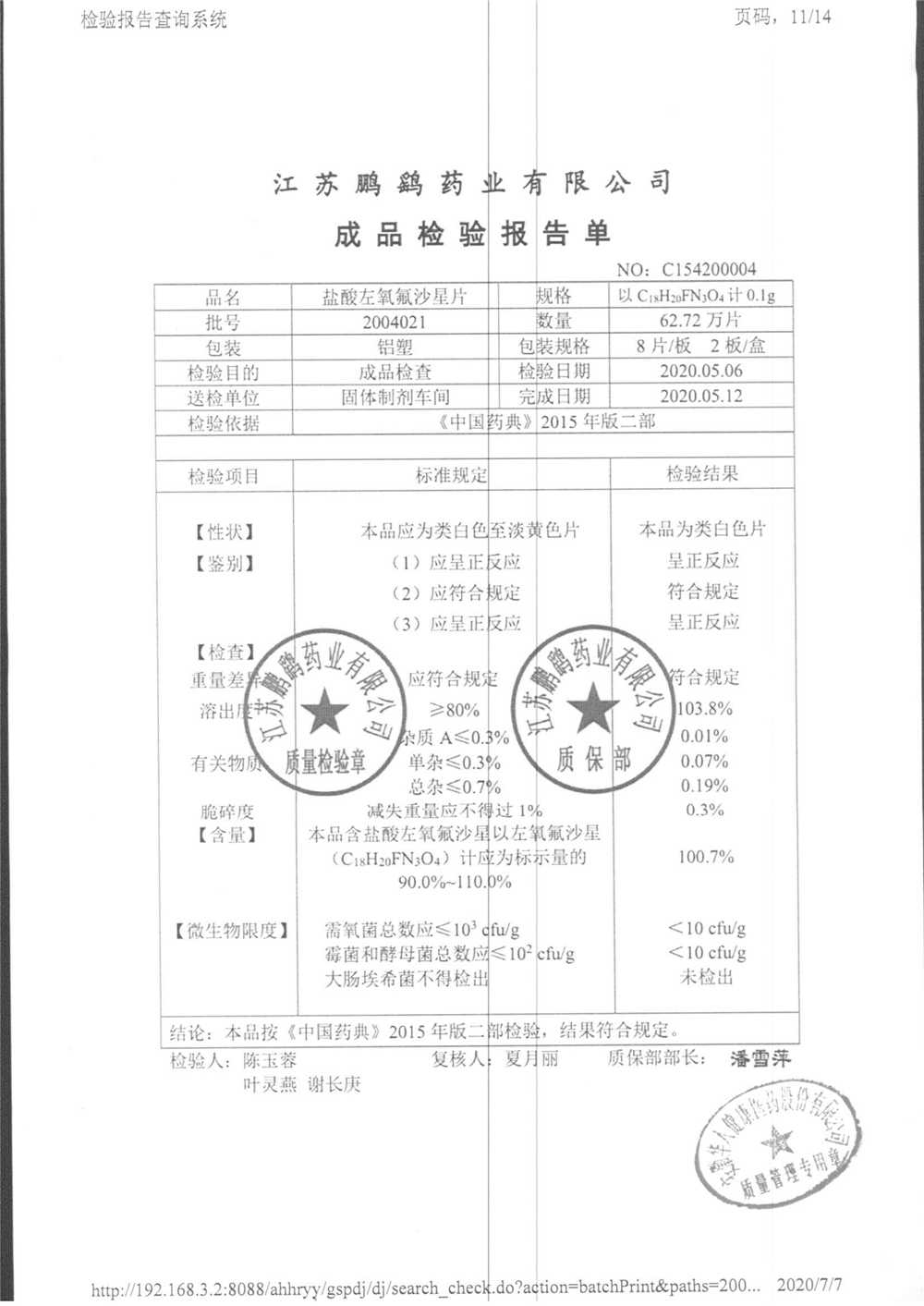 | 鹽酸左氧氟沙星片 | 16s | 2012071 | 查看詳情 |