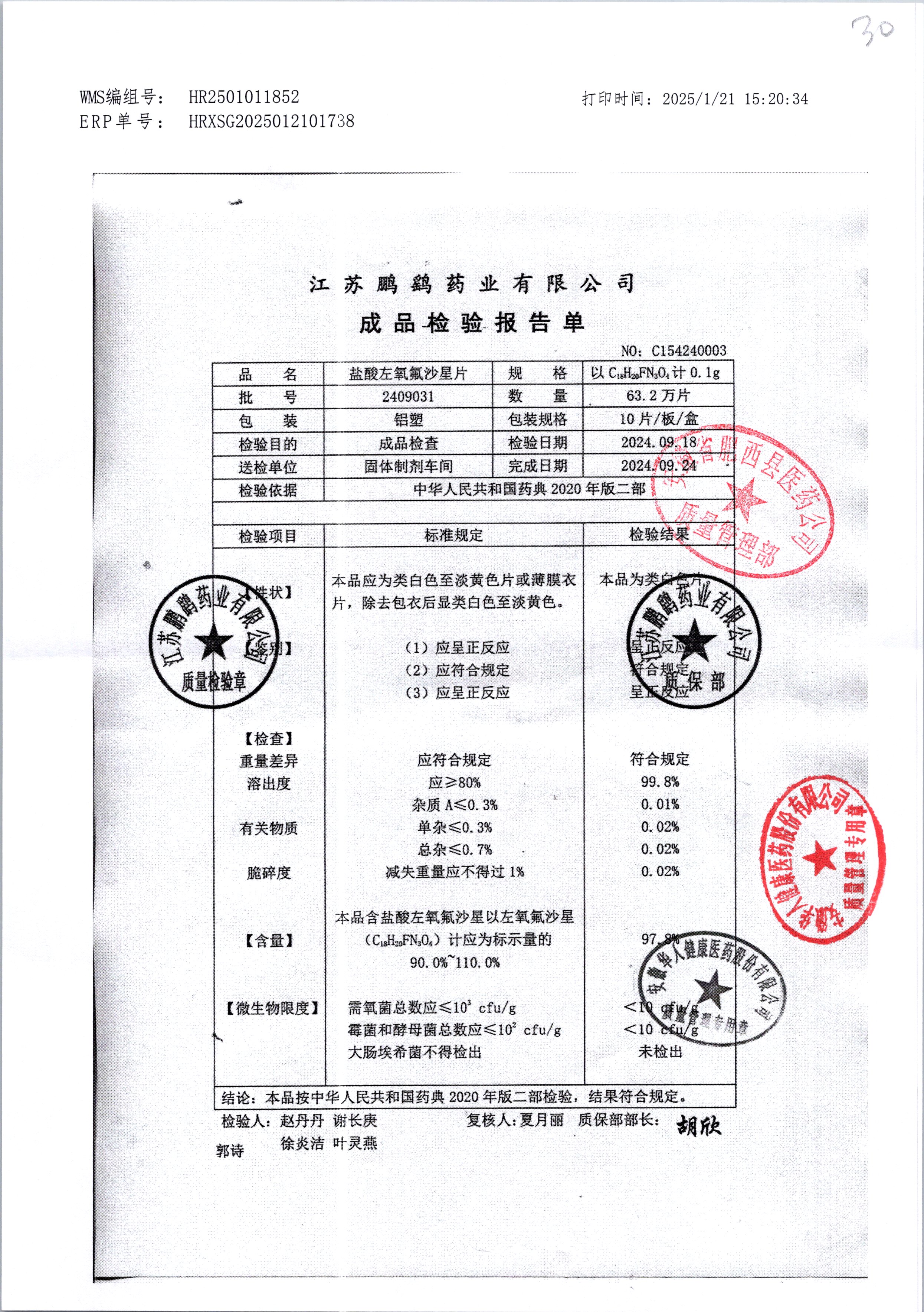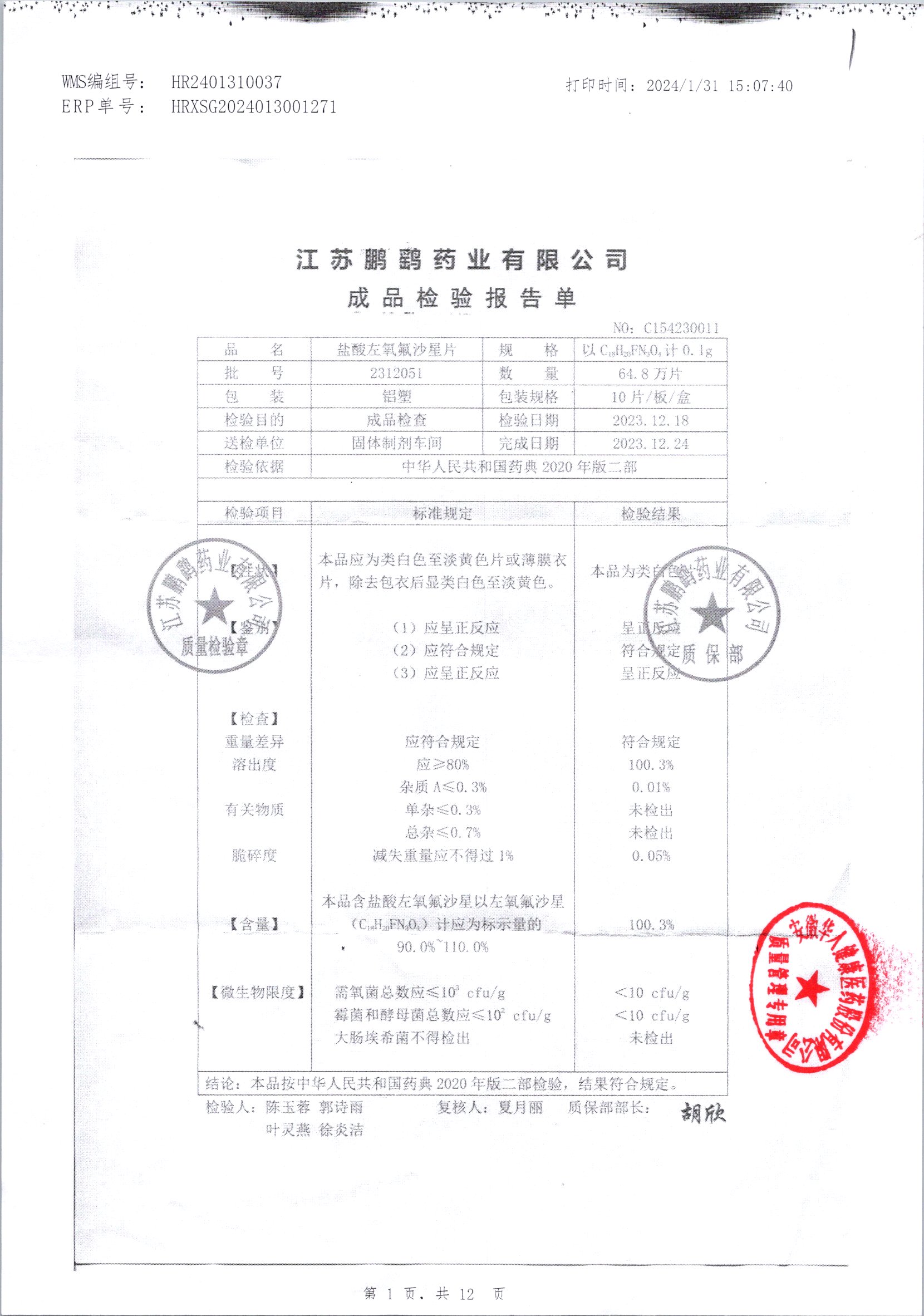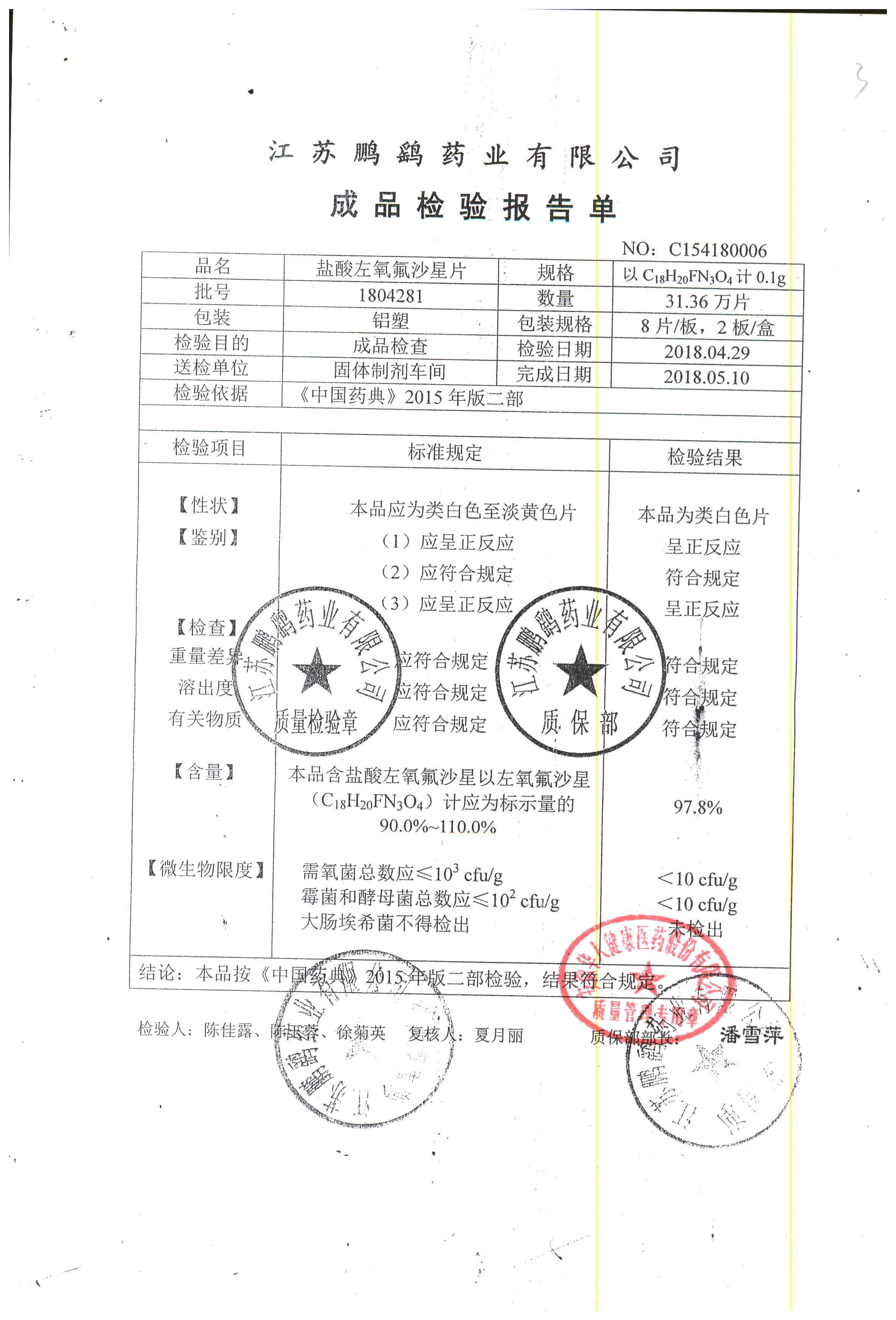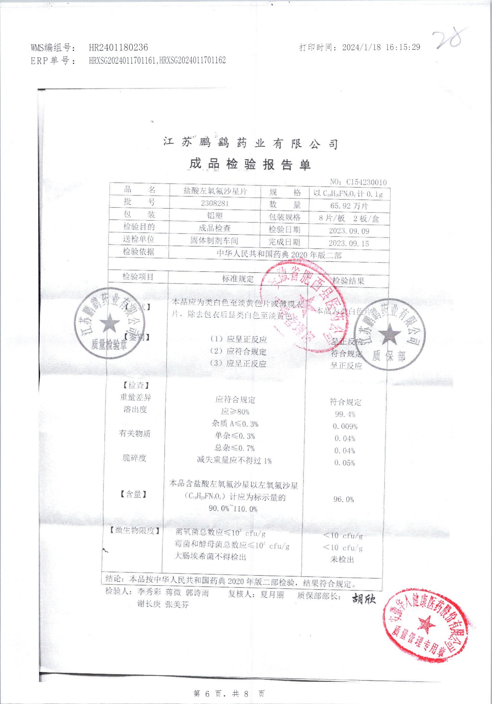 | 鹽酸左氧氟沙星片 | 16s | 2303111 | 查看詳情 |