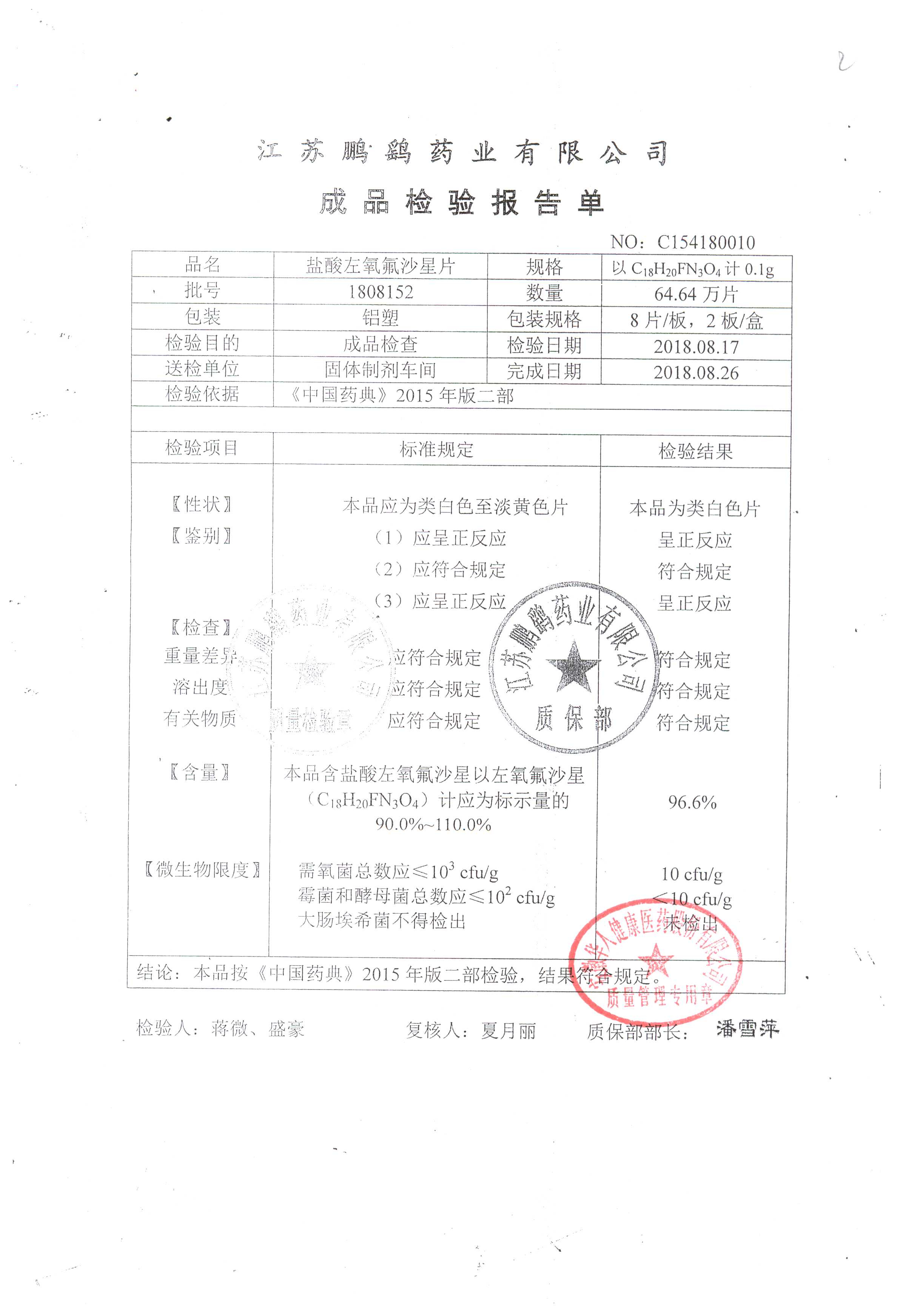 | 鹽酸左氧氟沙星片 | 16s | 2010211 | 查看詳情 |