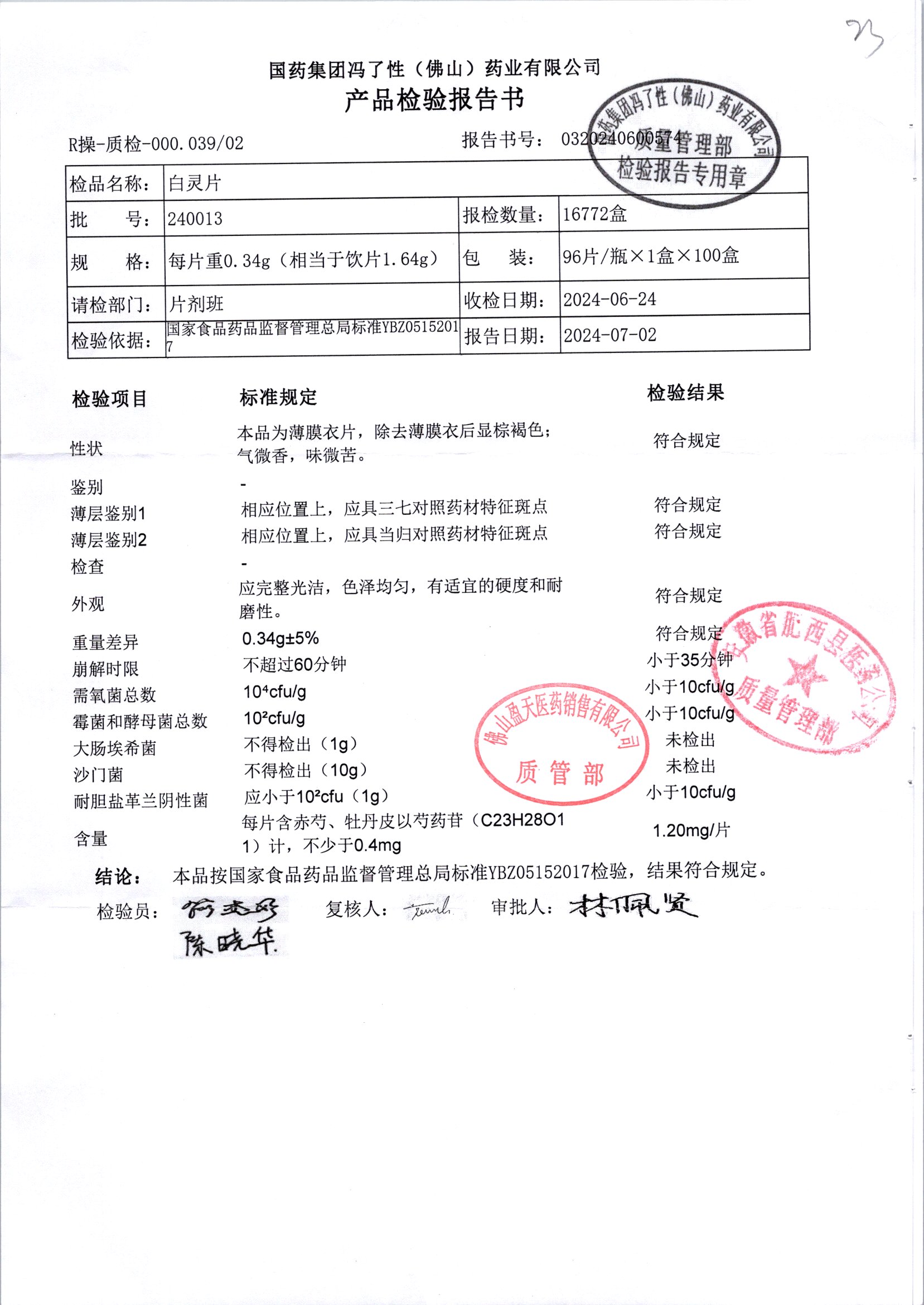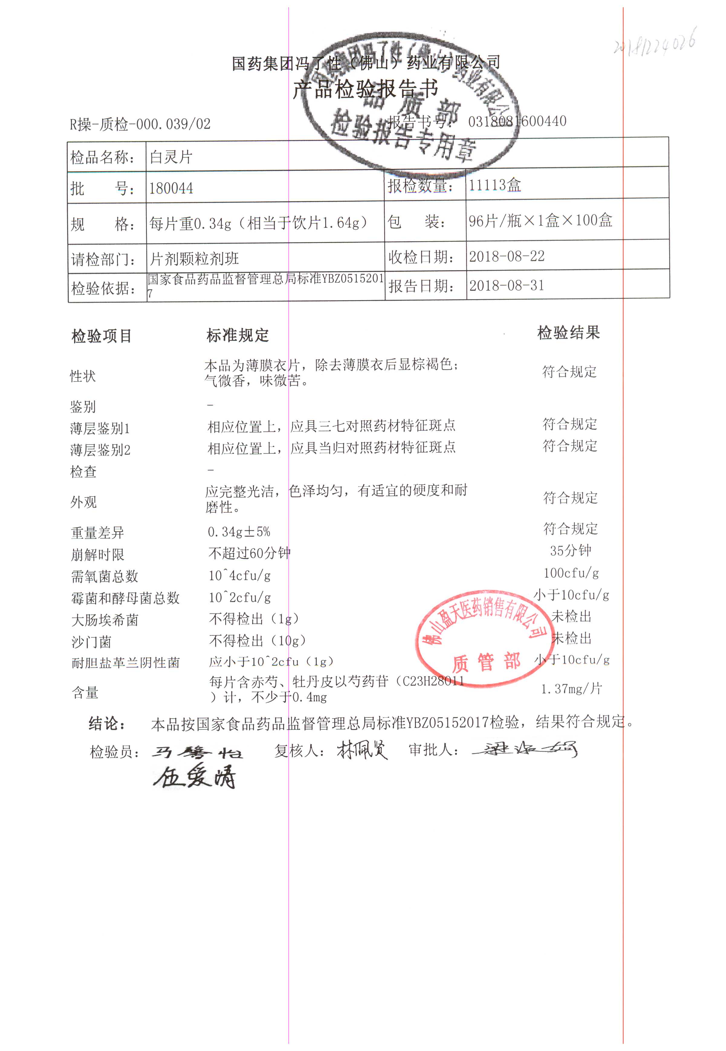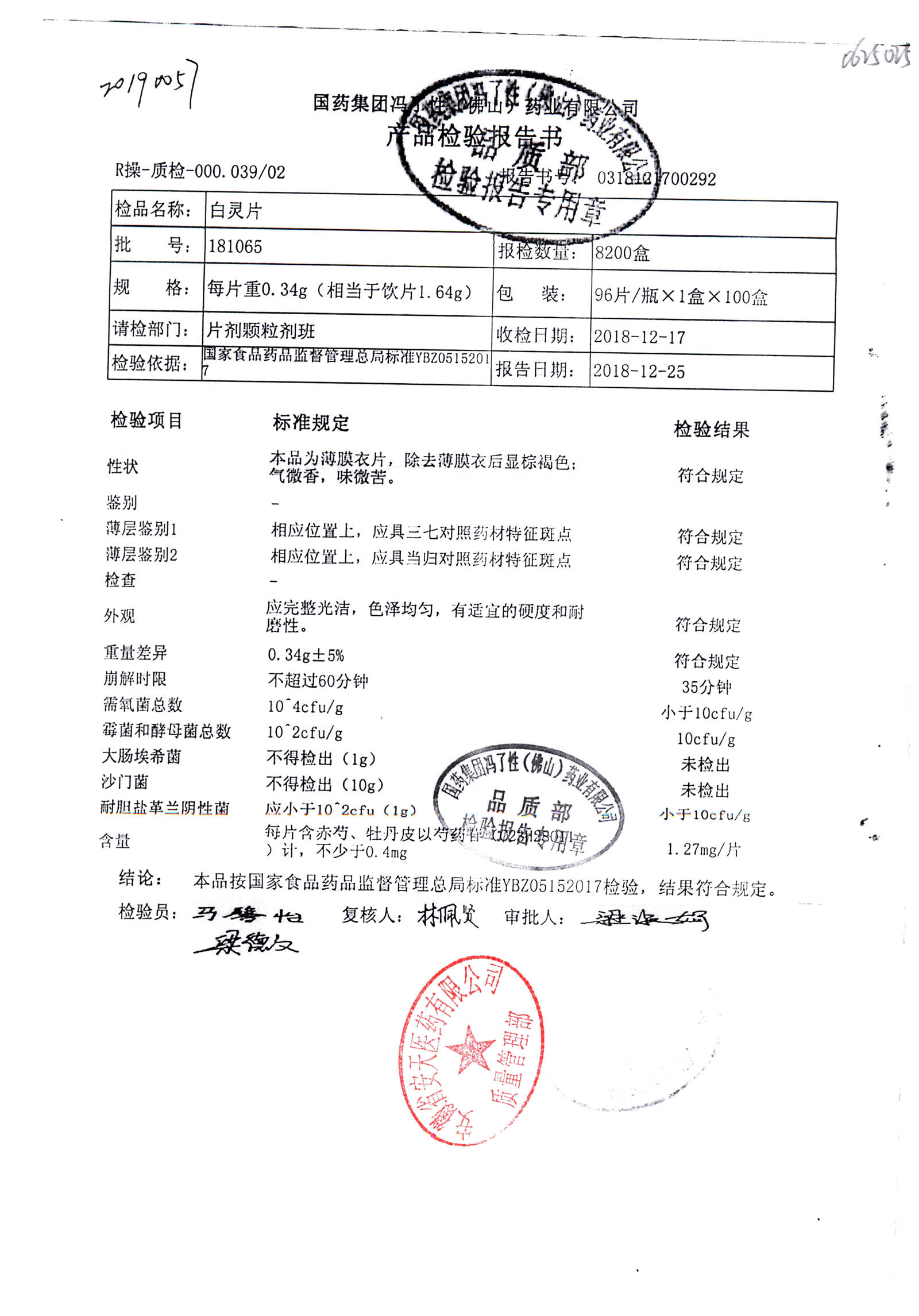 | 名稱 | 規(guī)格 | 批號 | 藥檢報告 |