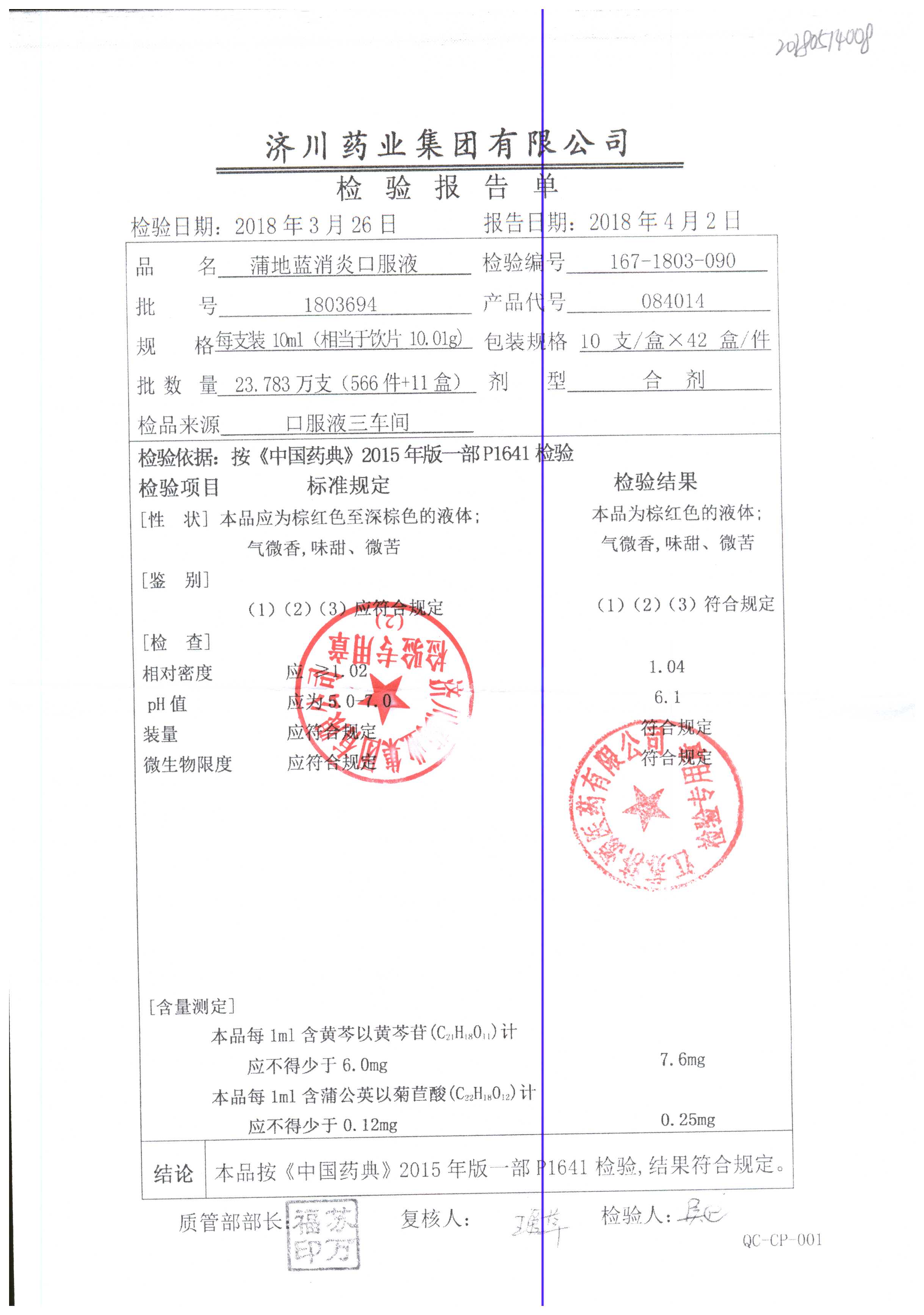 | 蒲地藍(lán)消炎口服液 | 10ml*10支 | 1805A74 | 查看詳情 |