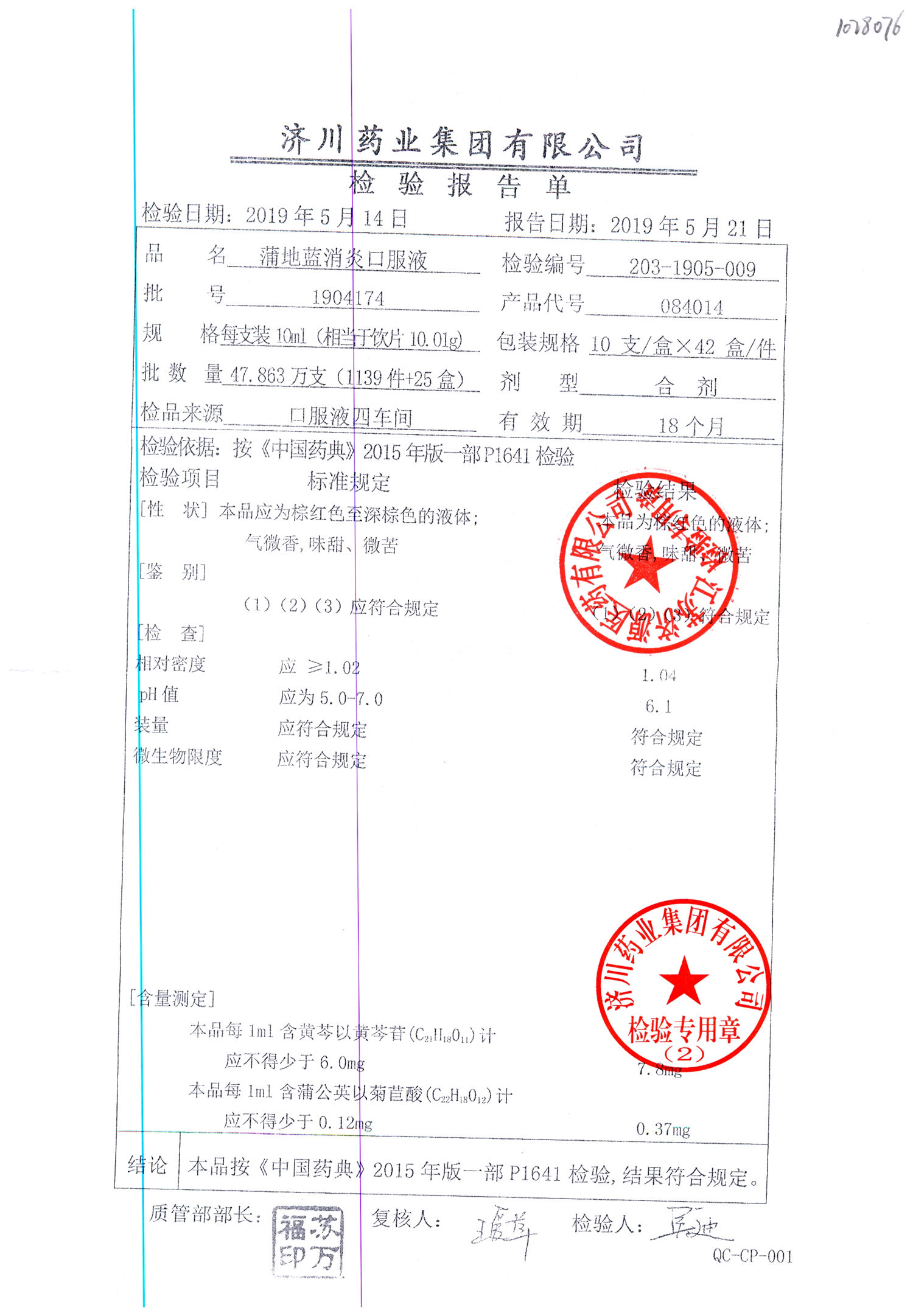 | 名稱 | 規(guī)格 | 批號(hào) | 藥檢報(bào)告 |