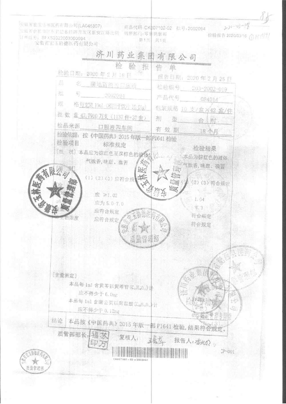 | 蒲地藍(lán)消炎口服液 | 10ml*10支 | 2012106 | 查看詳情 |
