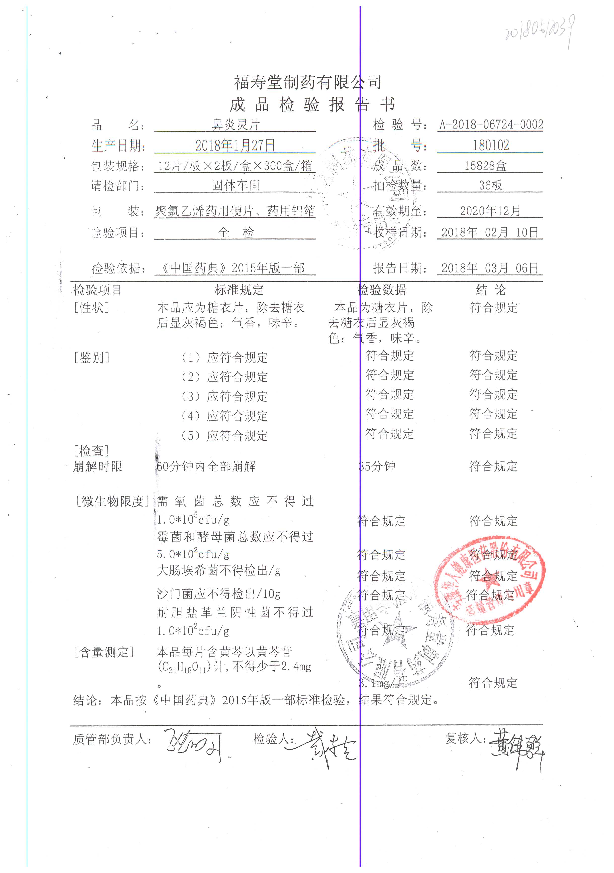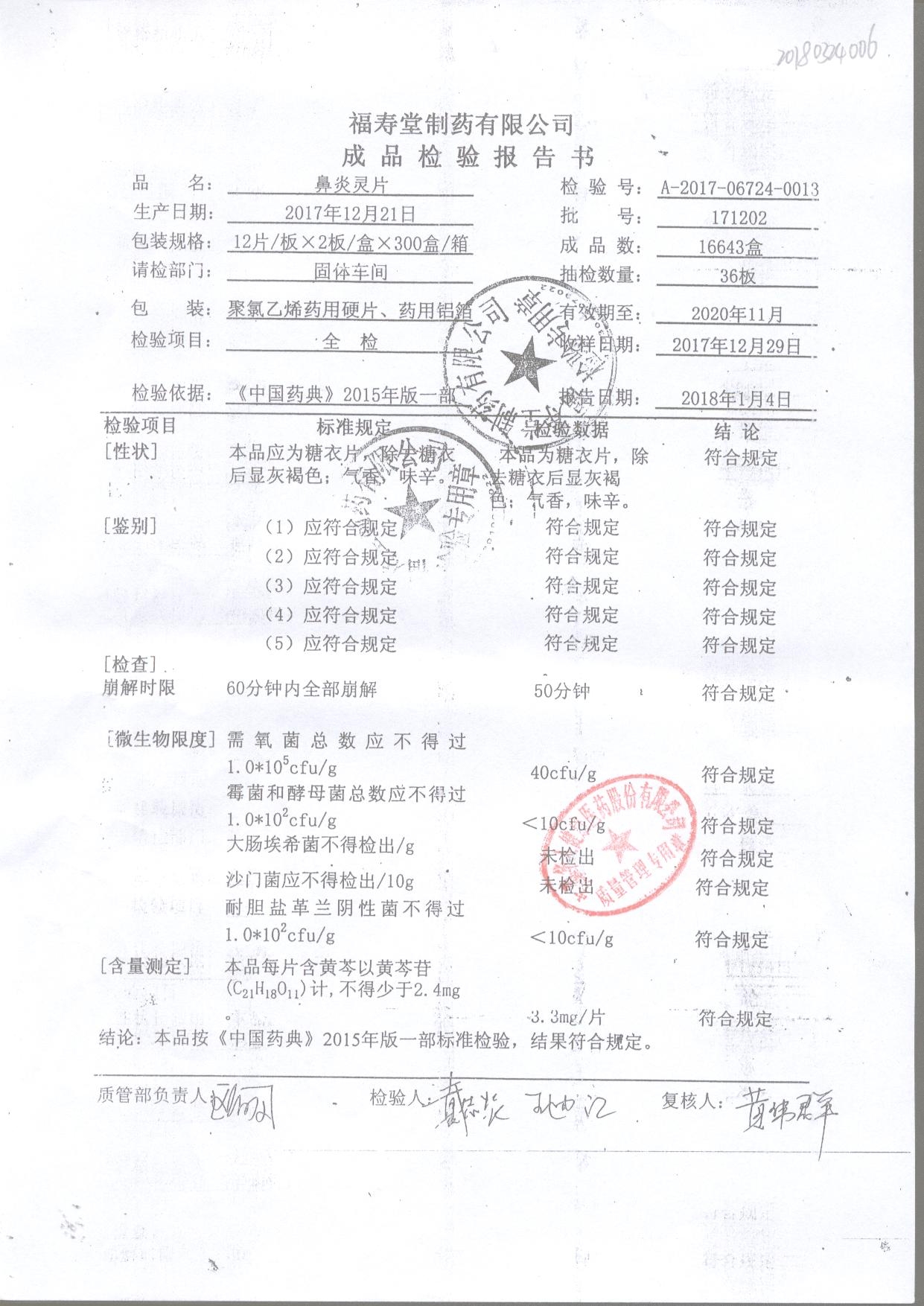 名稱 規(guī)格 批號(hào) 藥檢報(bào)告