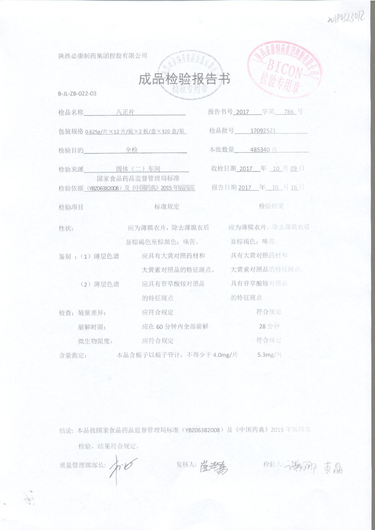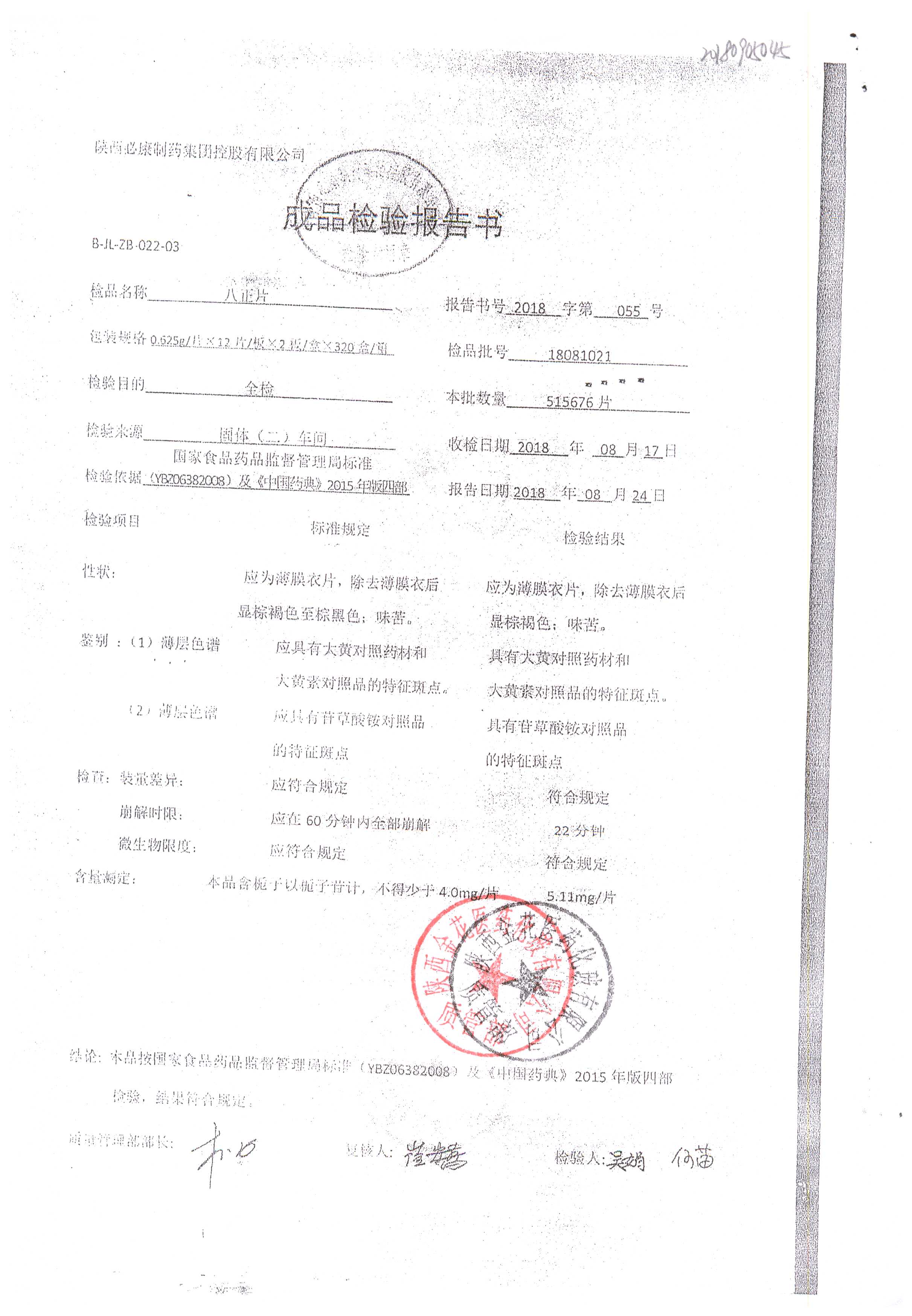 名稱 規(guī)格 批號 藥檢報告