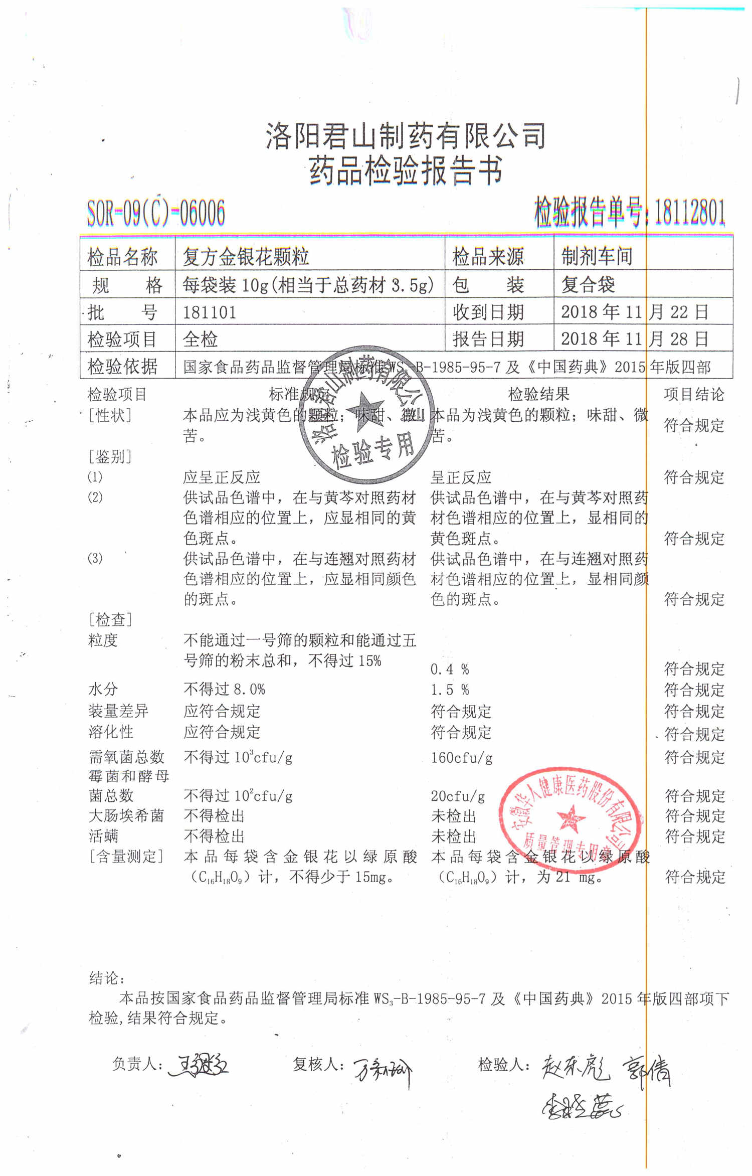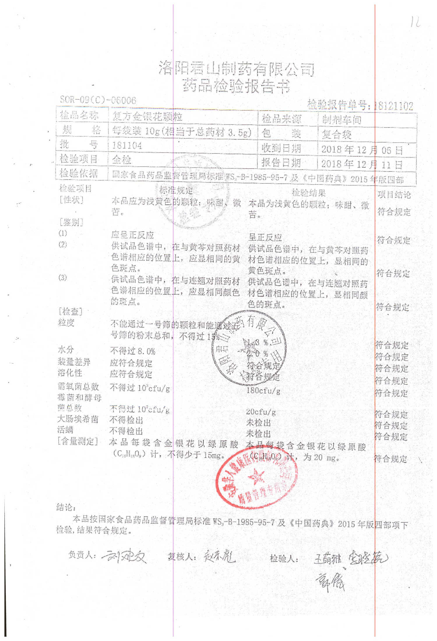 | 復(fù)方金銀花顆粒 | 10g | 181101 | 查看詳情 |