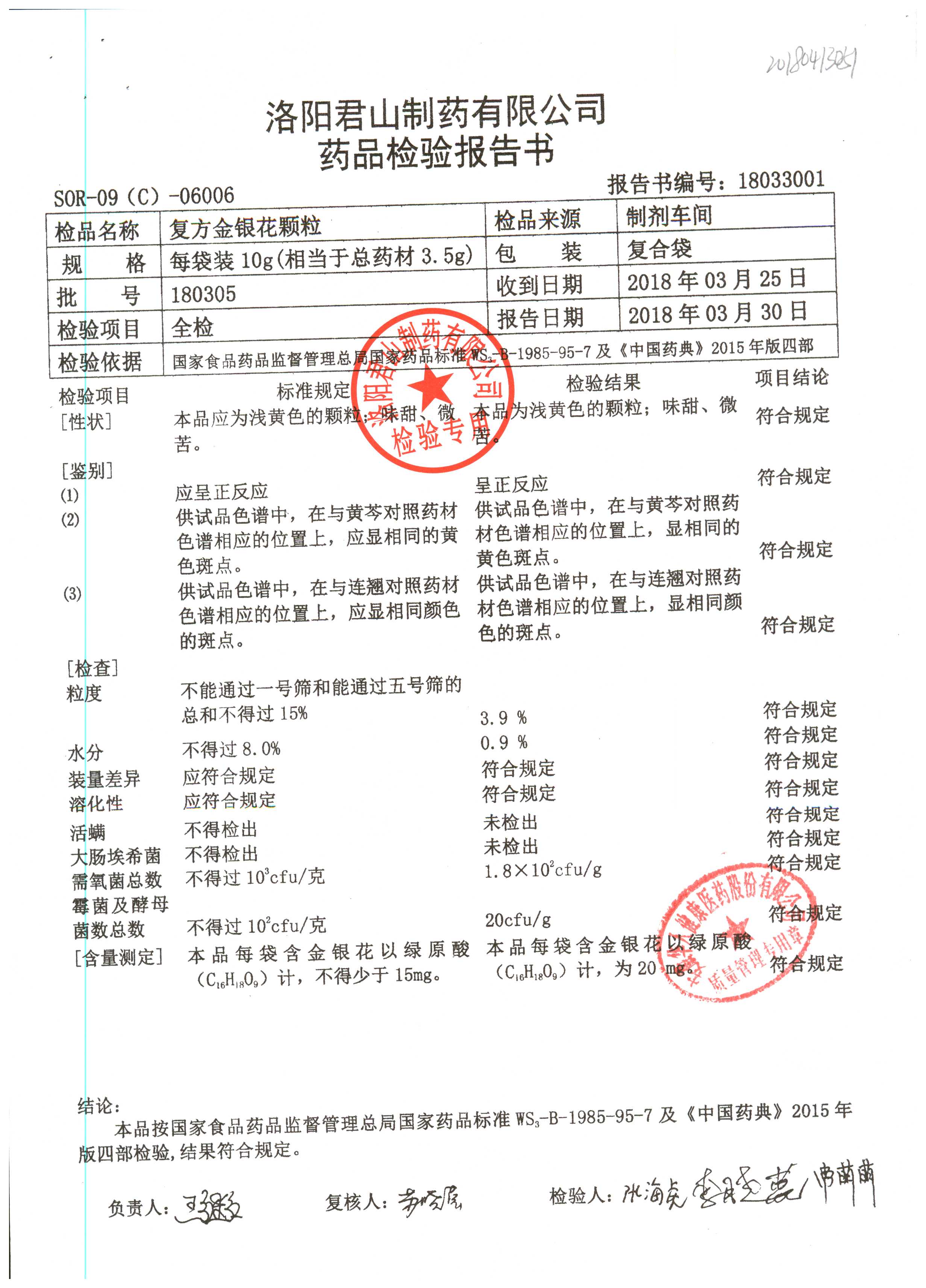 | 復(fù)方金銀花顆粒 | 10g | 180301 | 查看詳情 |