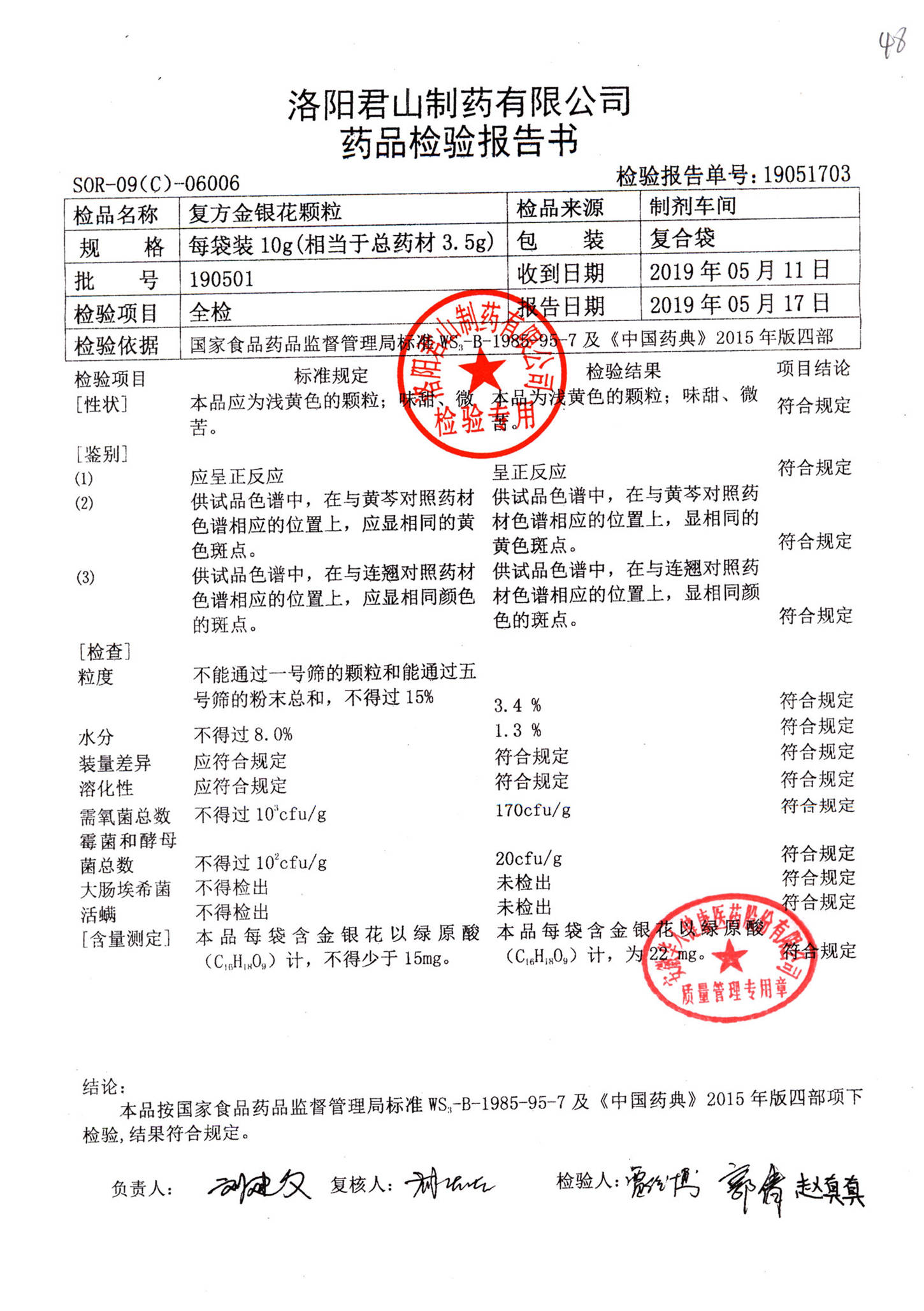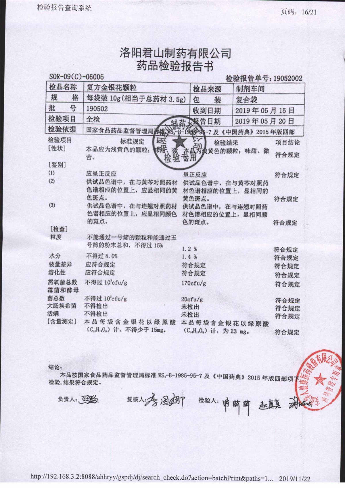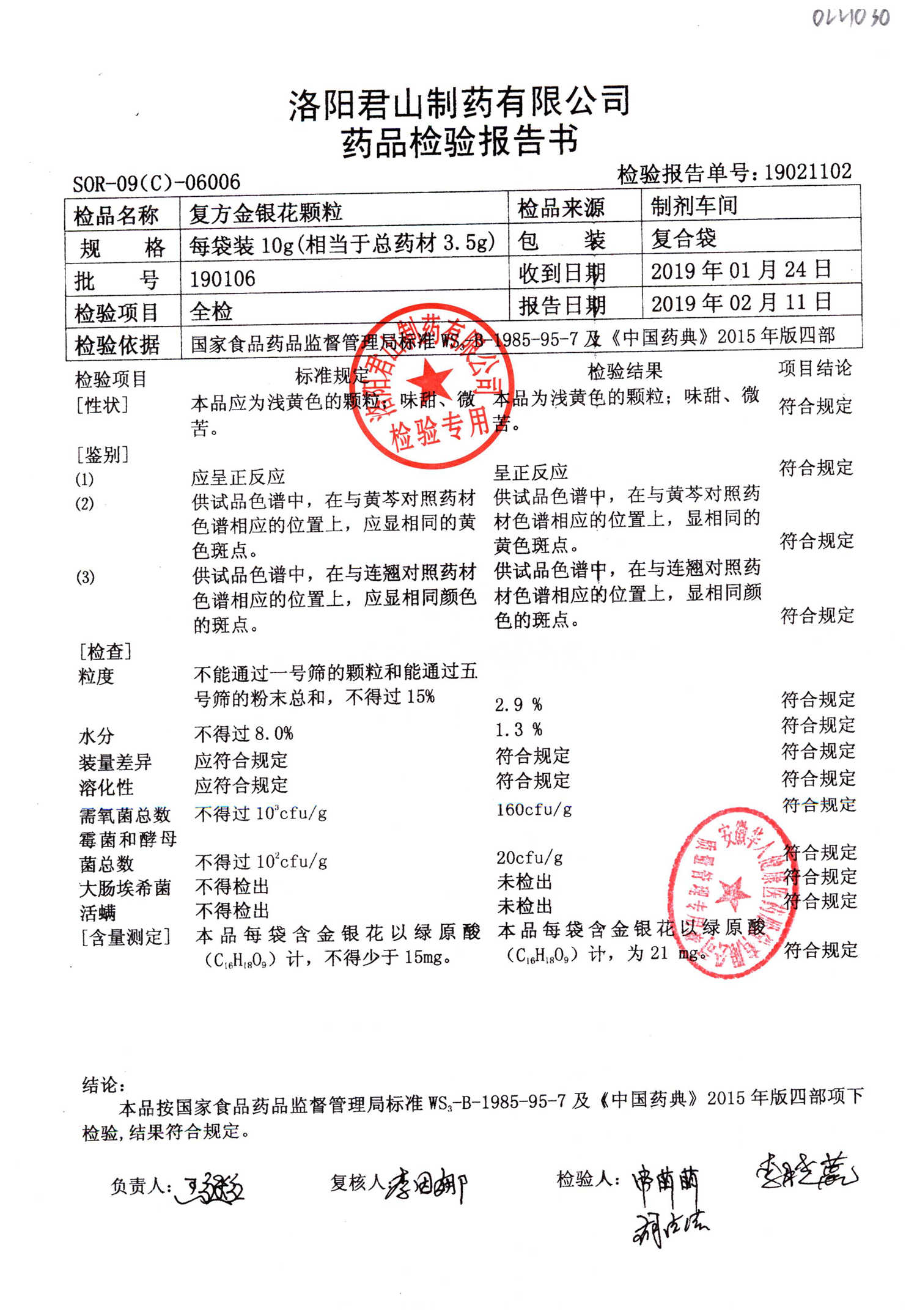 | 復(fù)方金銀花顆粒 | 10g | 190501 | 查看詳情 |