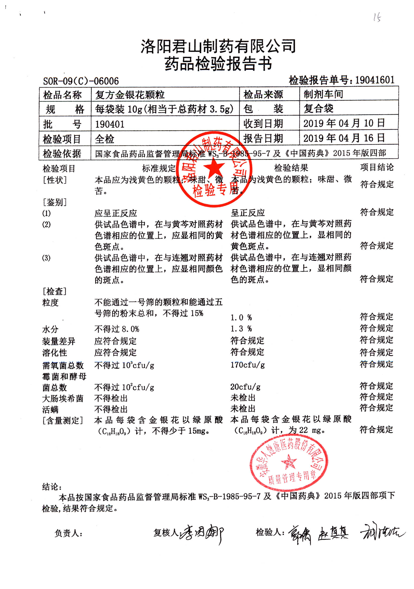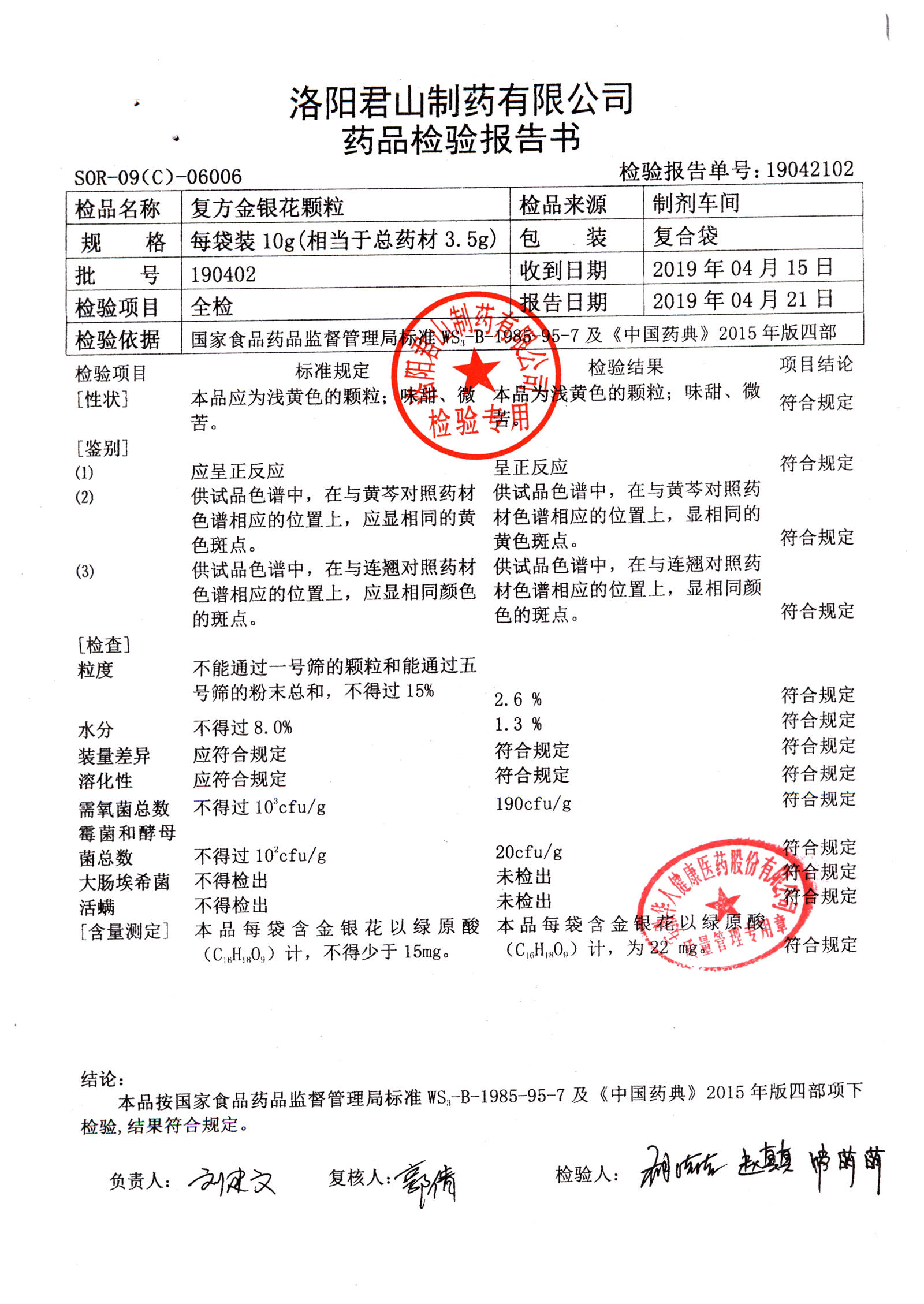 | 復(fù)方金銀花顆粒 | 10g | 190401 | 查看詳情 |