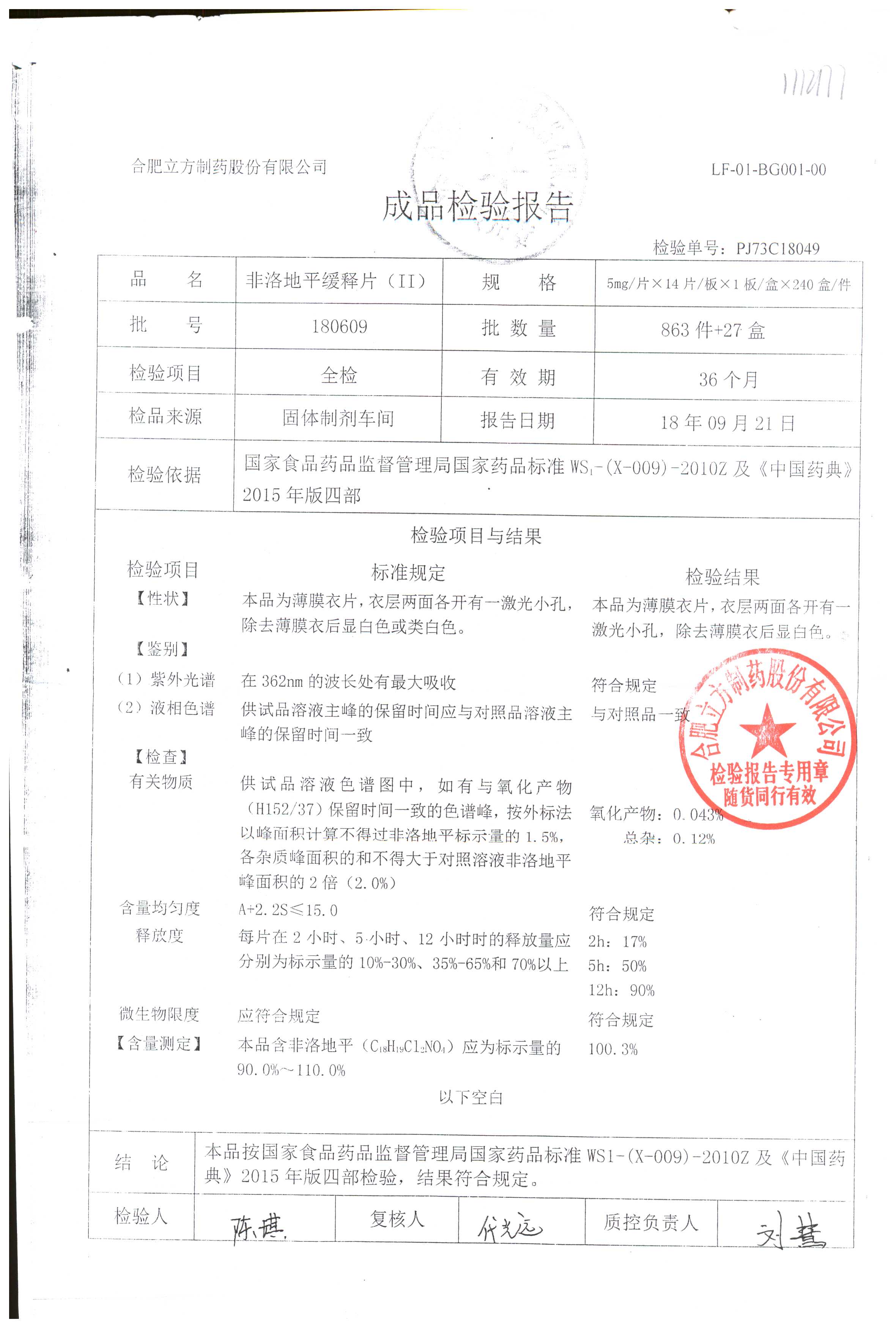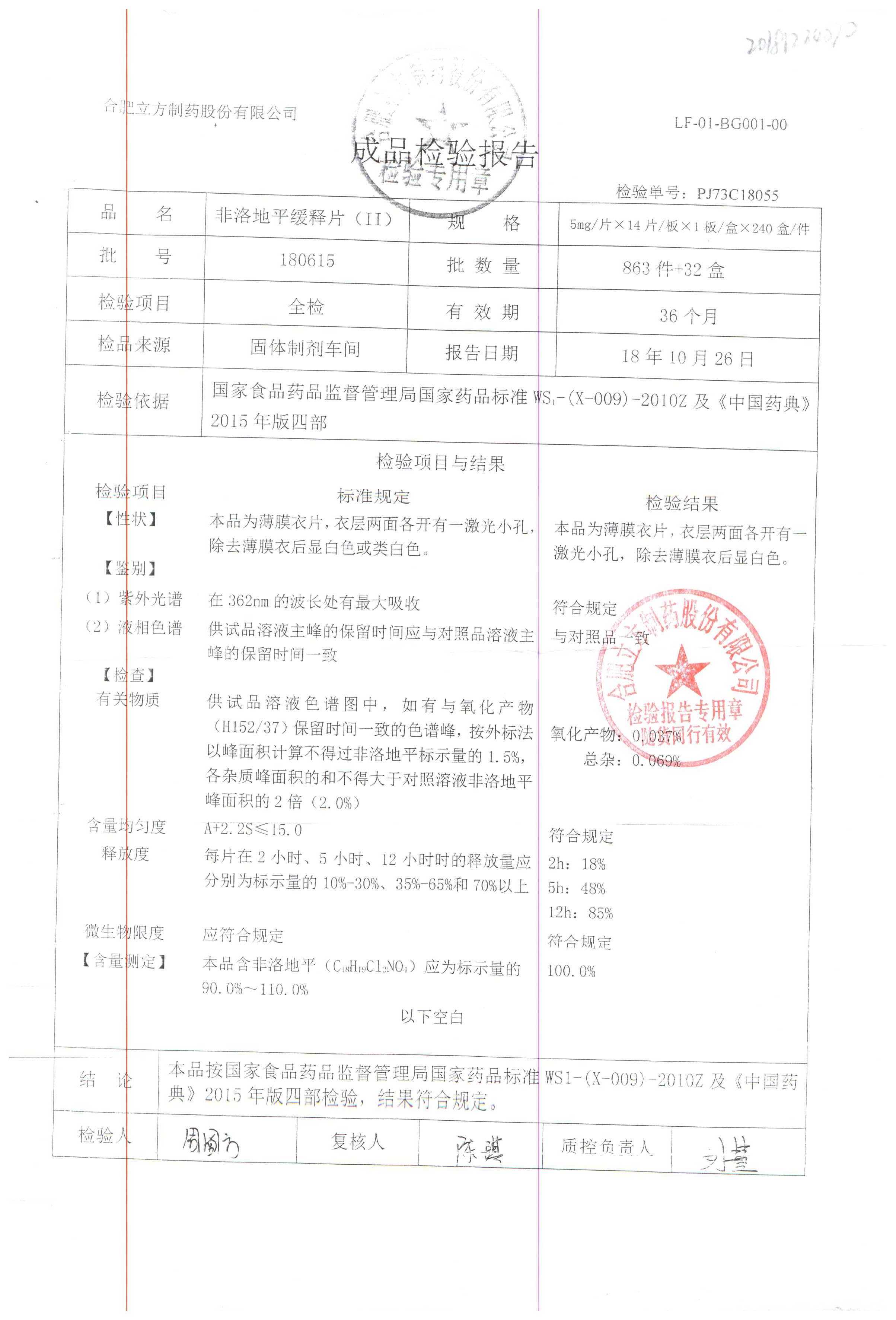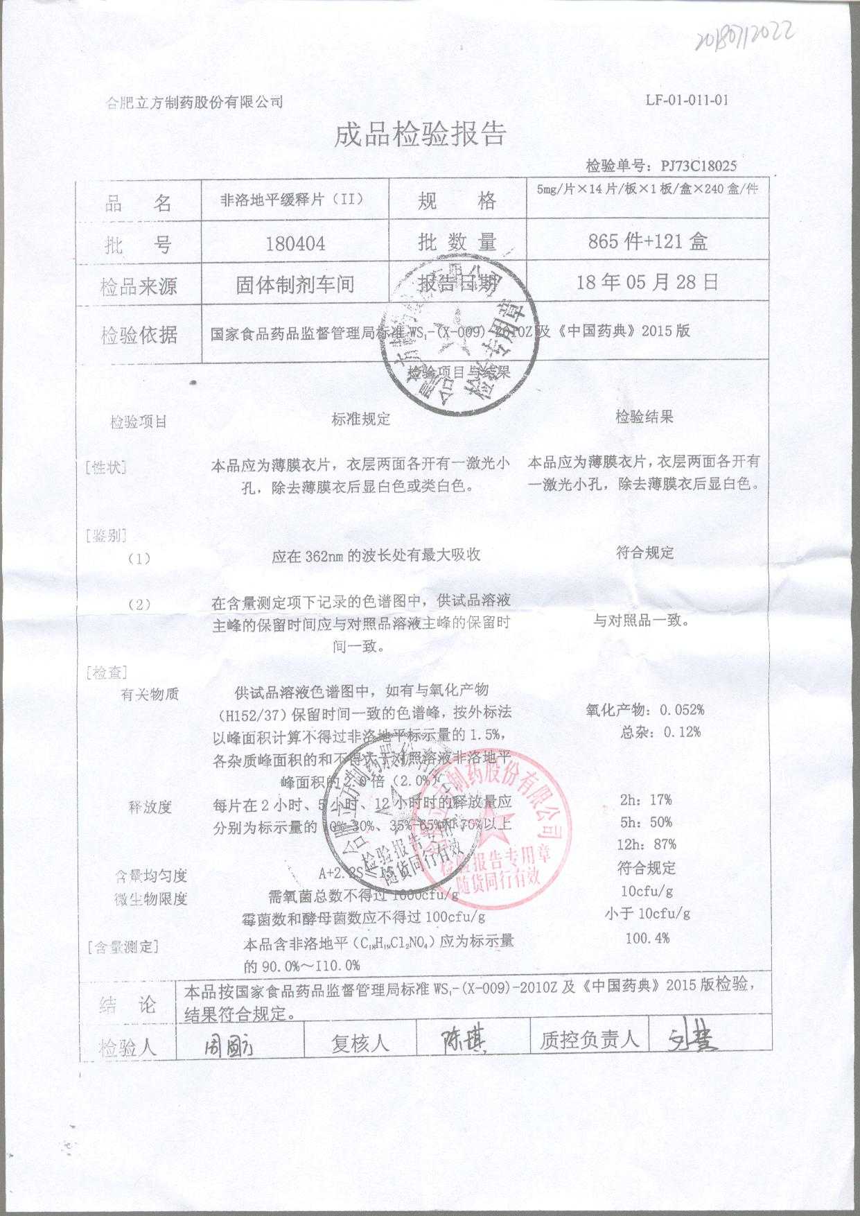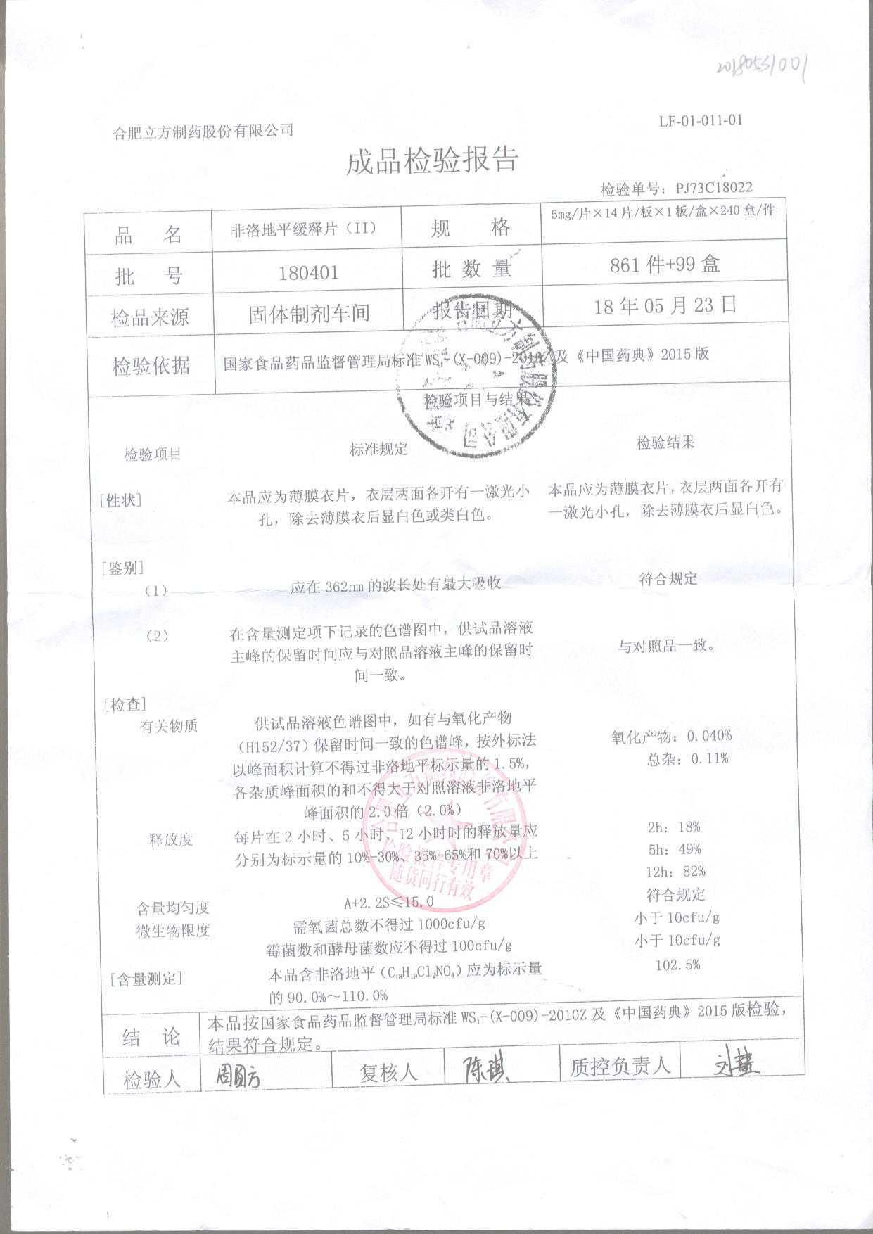 | 非洛地平緩釋片 | 5mg*14s | 180401 | 查看詳情 |