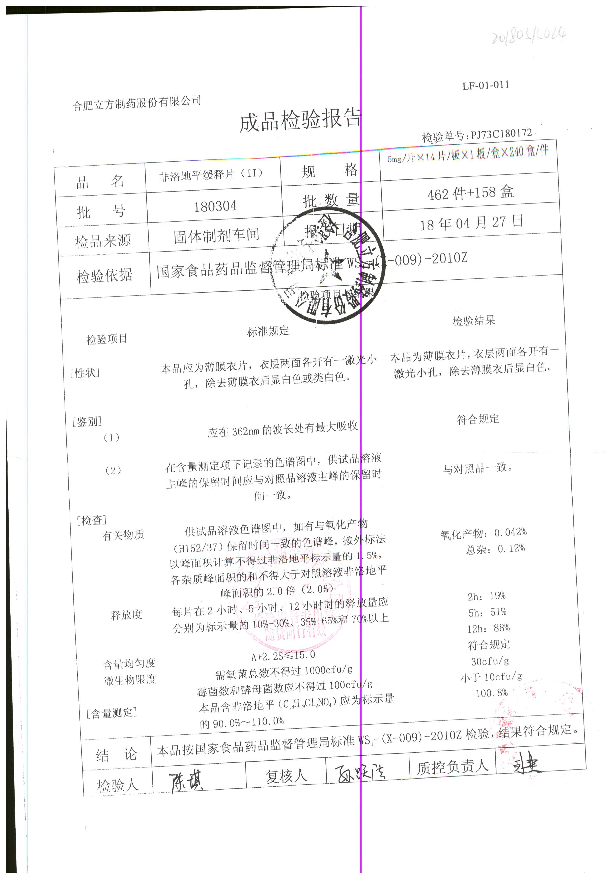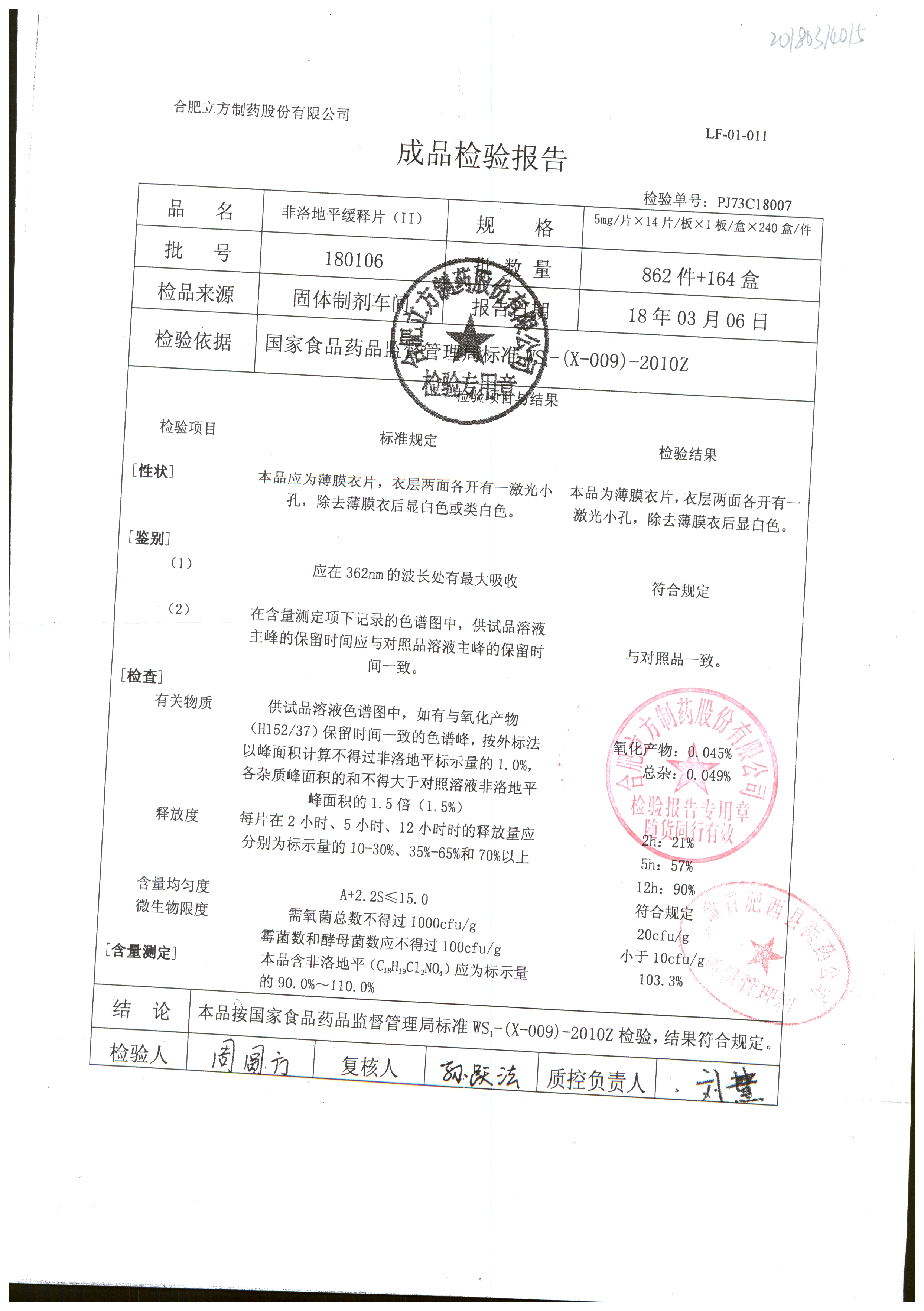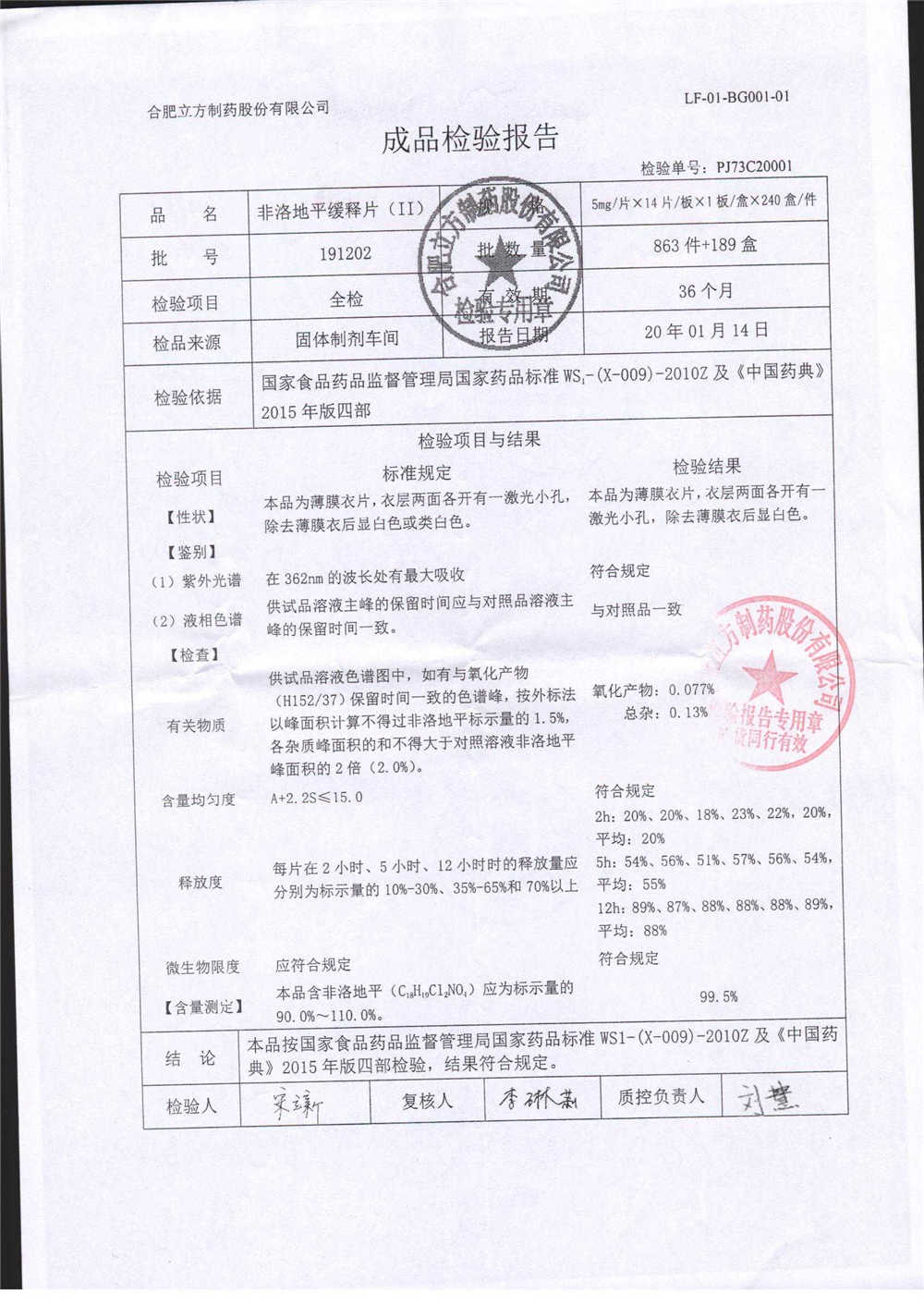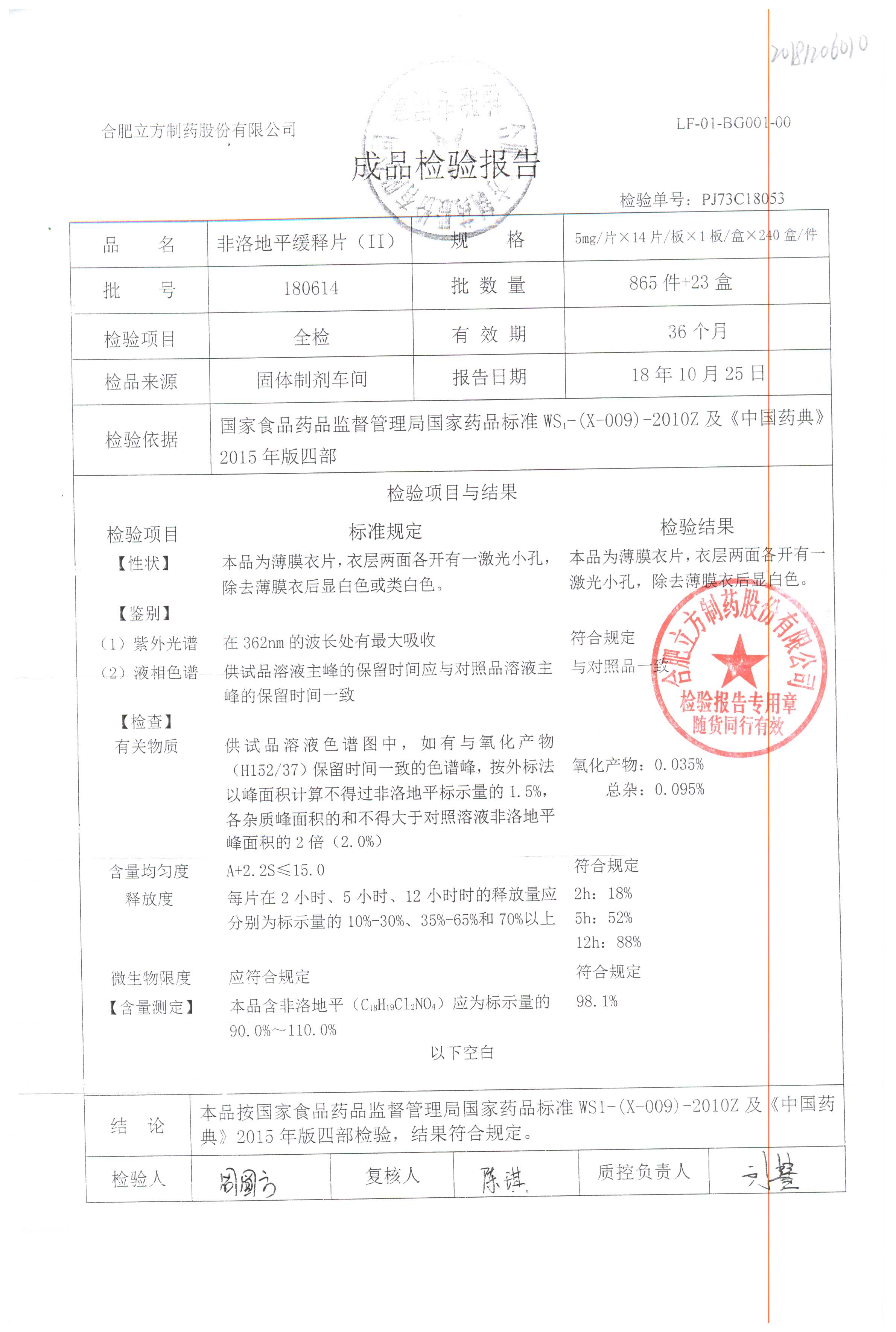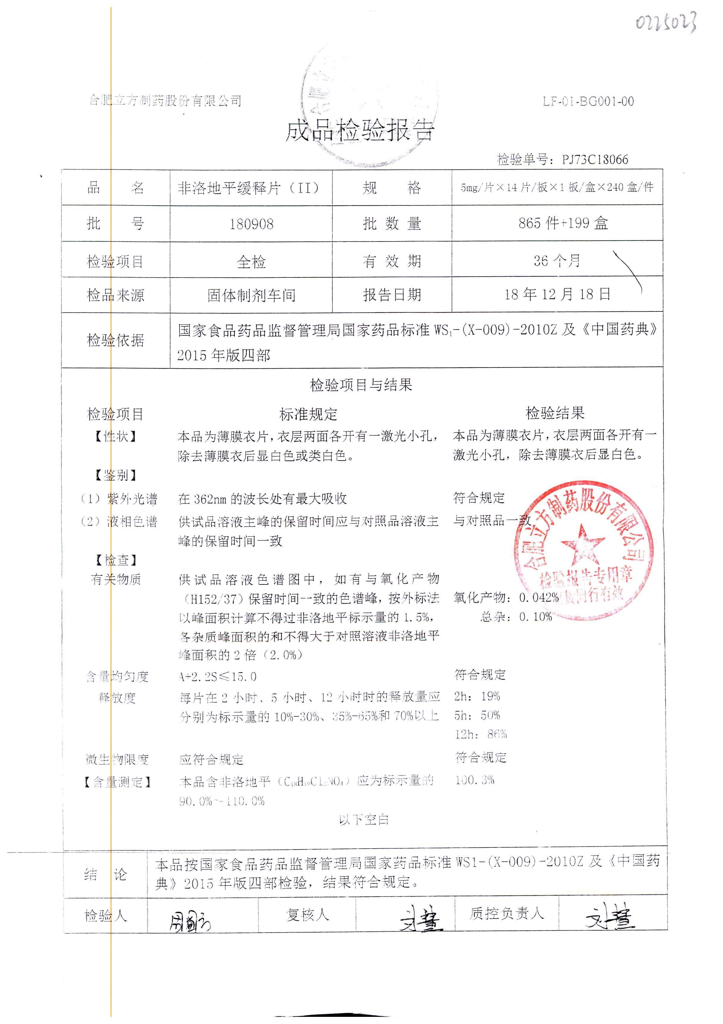 | 非洛地平緩釋片 | 5mg*14s | 180401 | 查看詳情 |