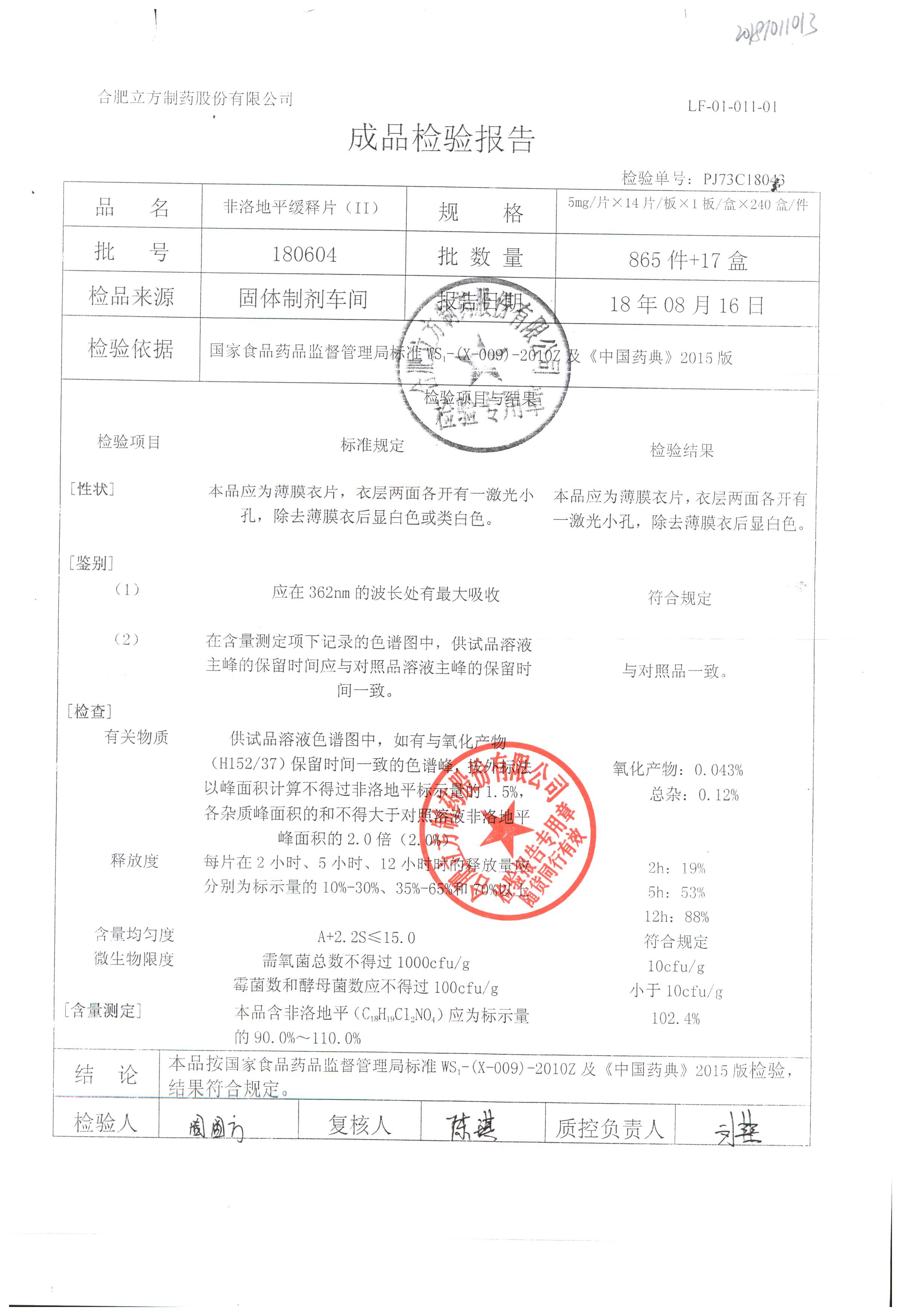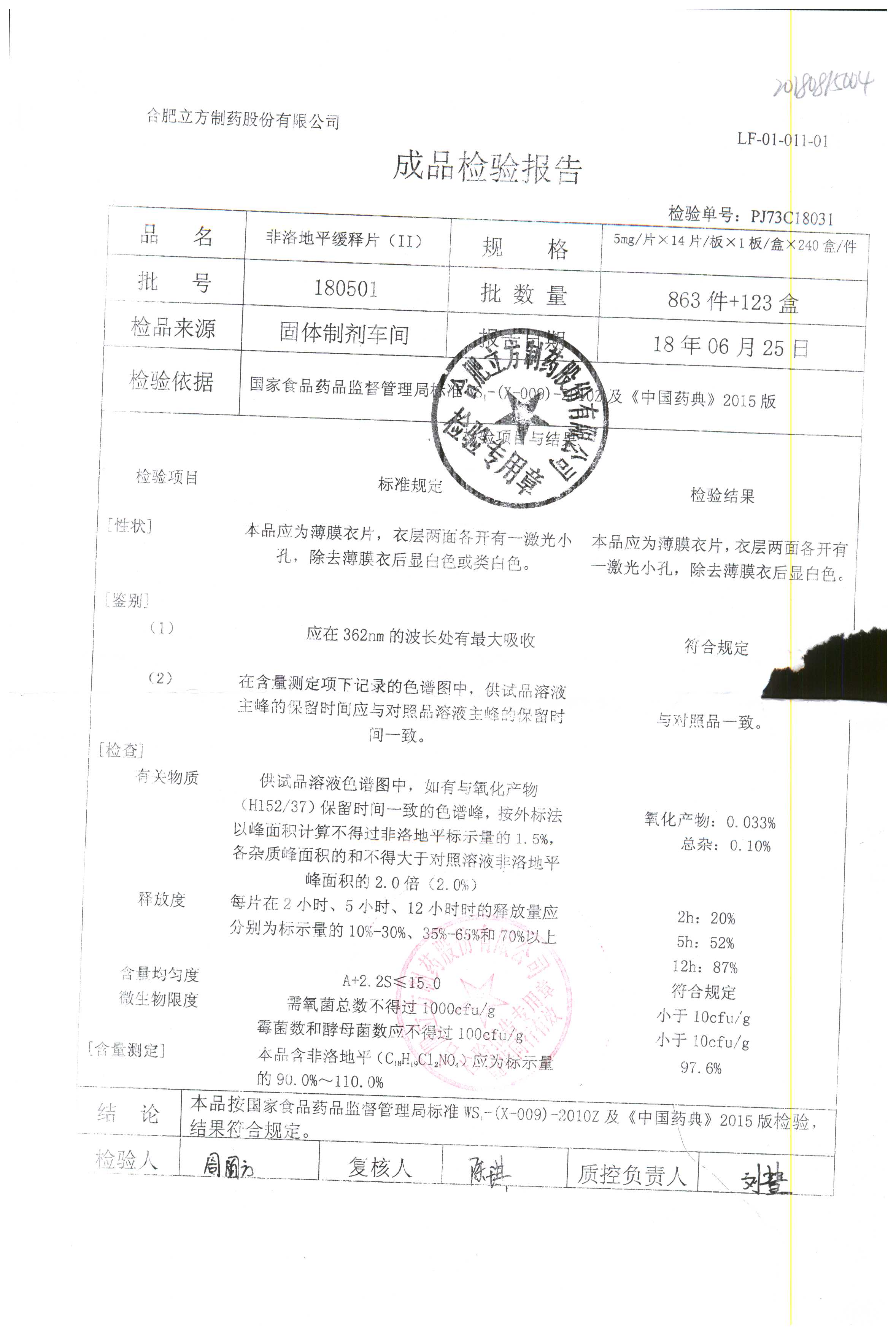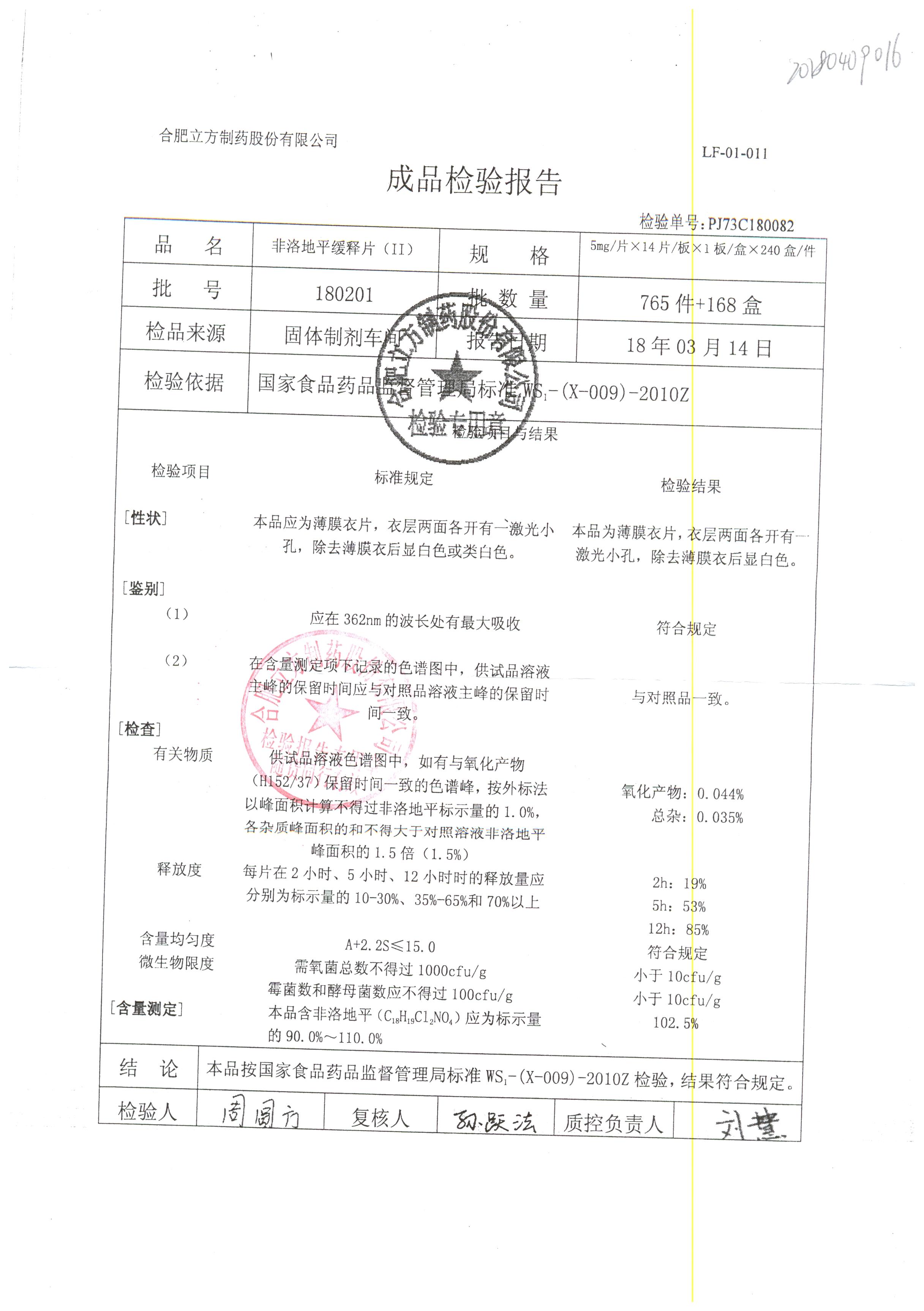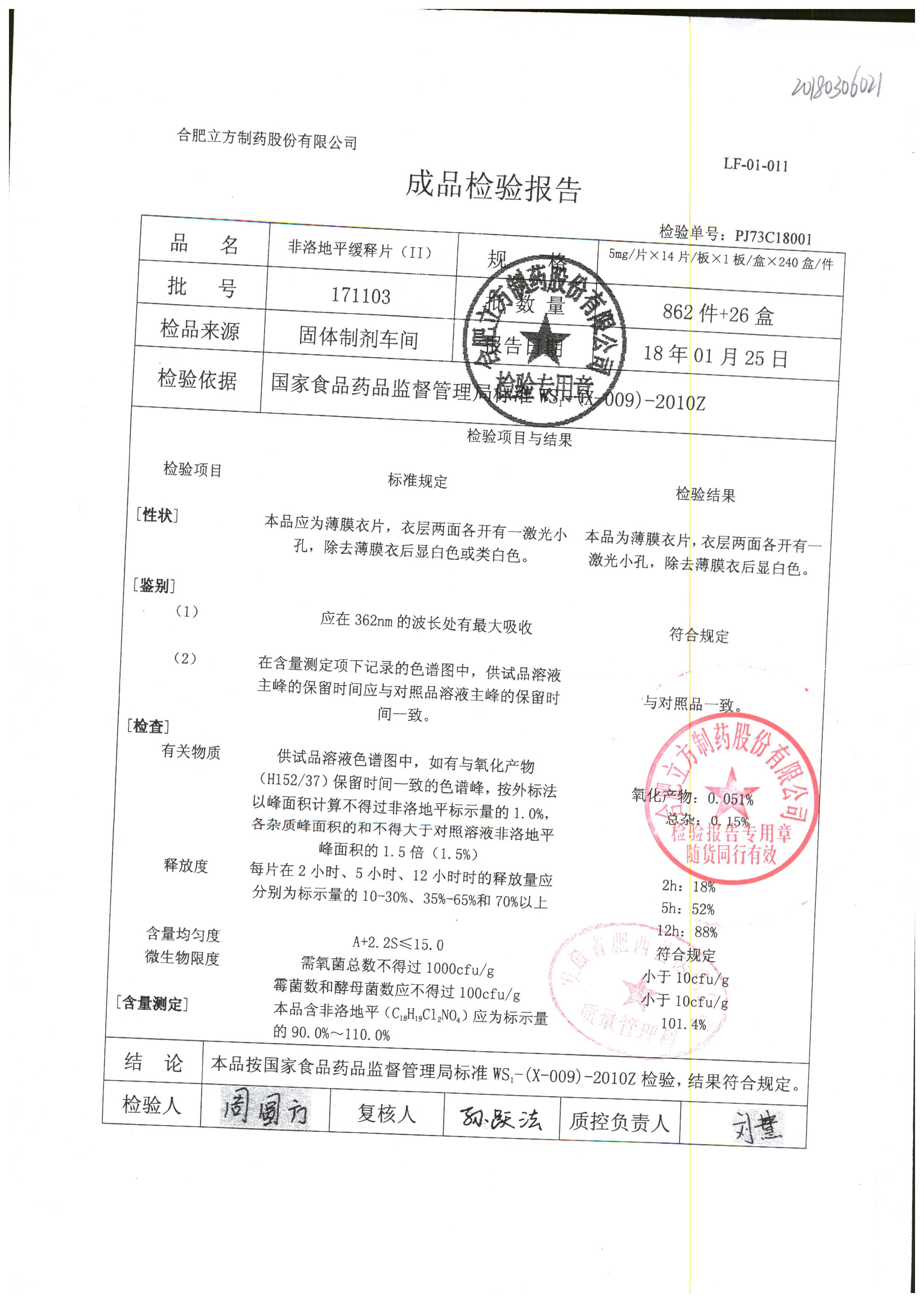 | 非洛地平緩釋片 | 5mg*14s | 180401 | 查看詳情 |