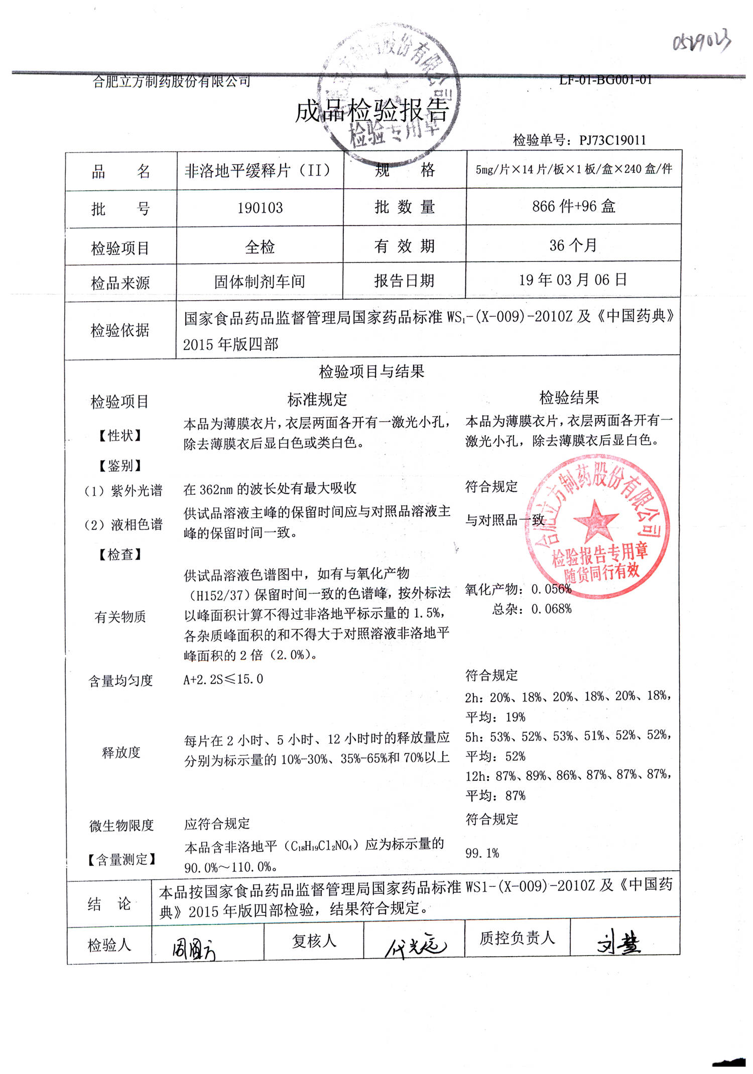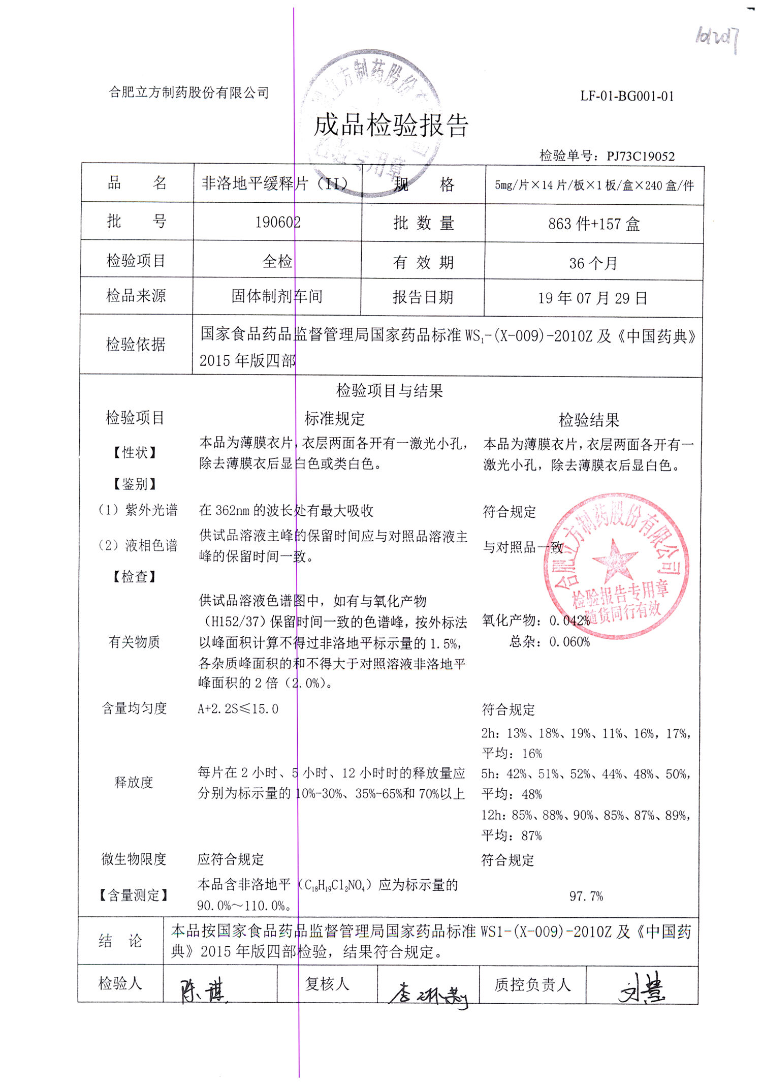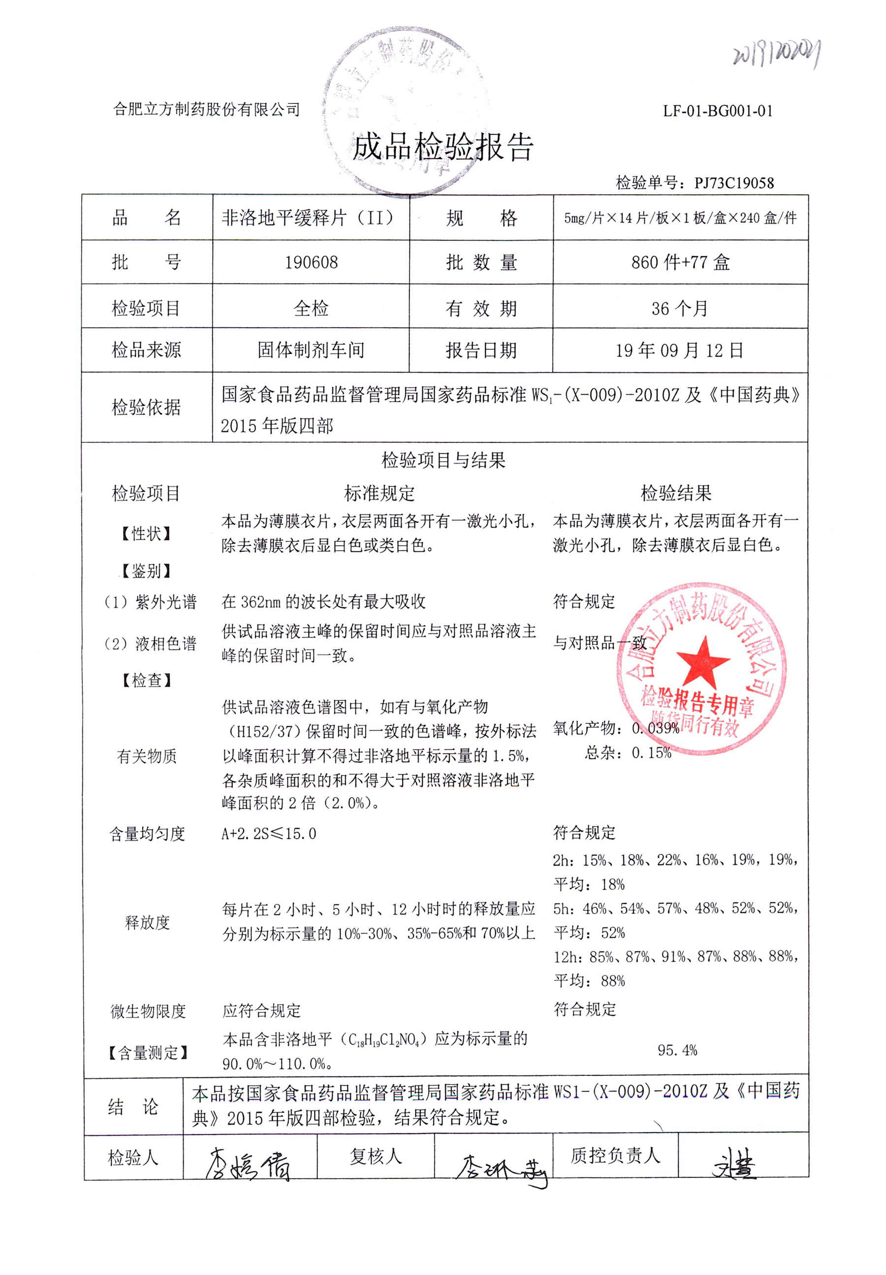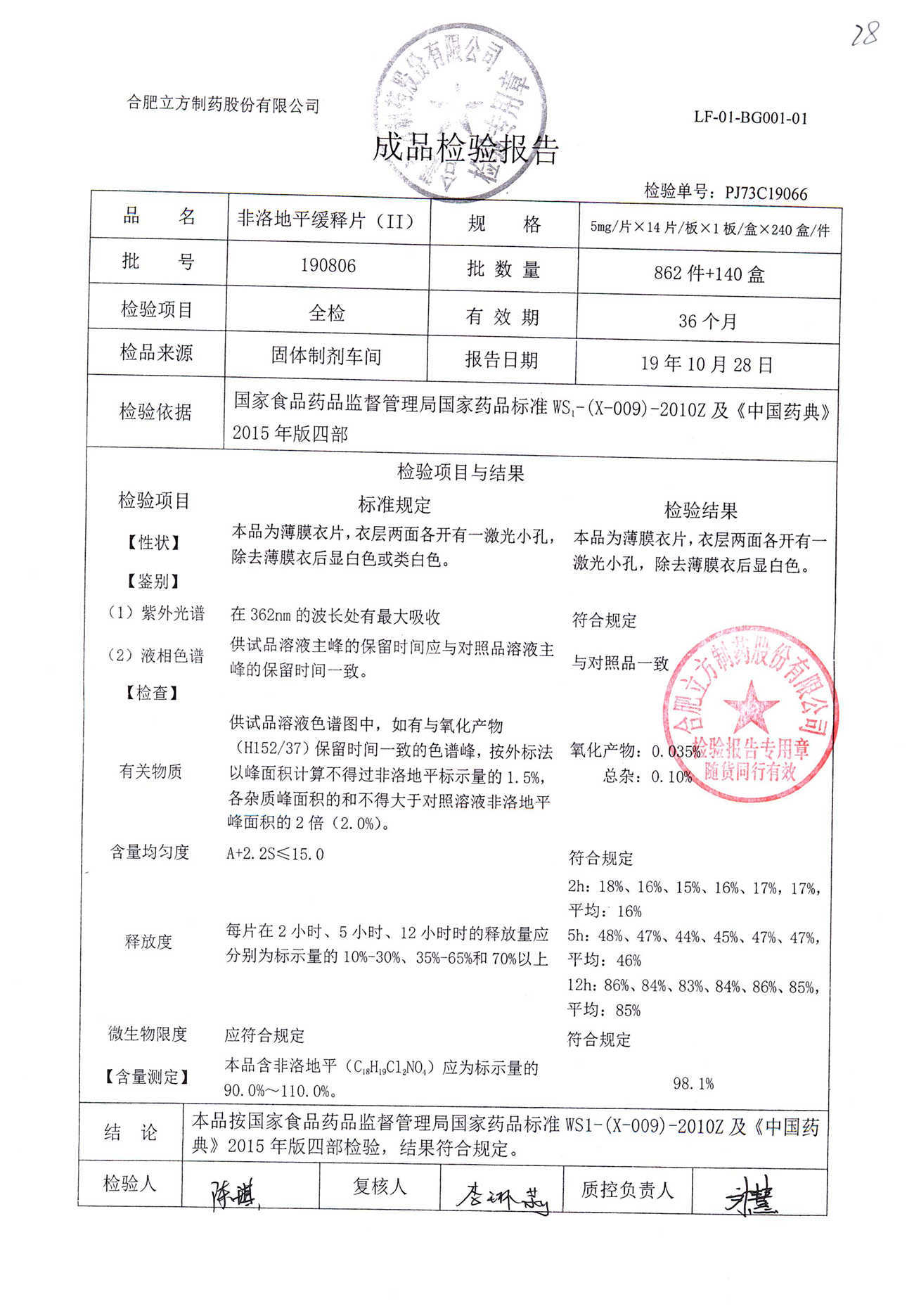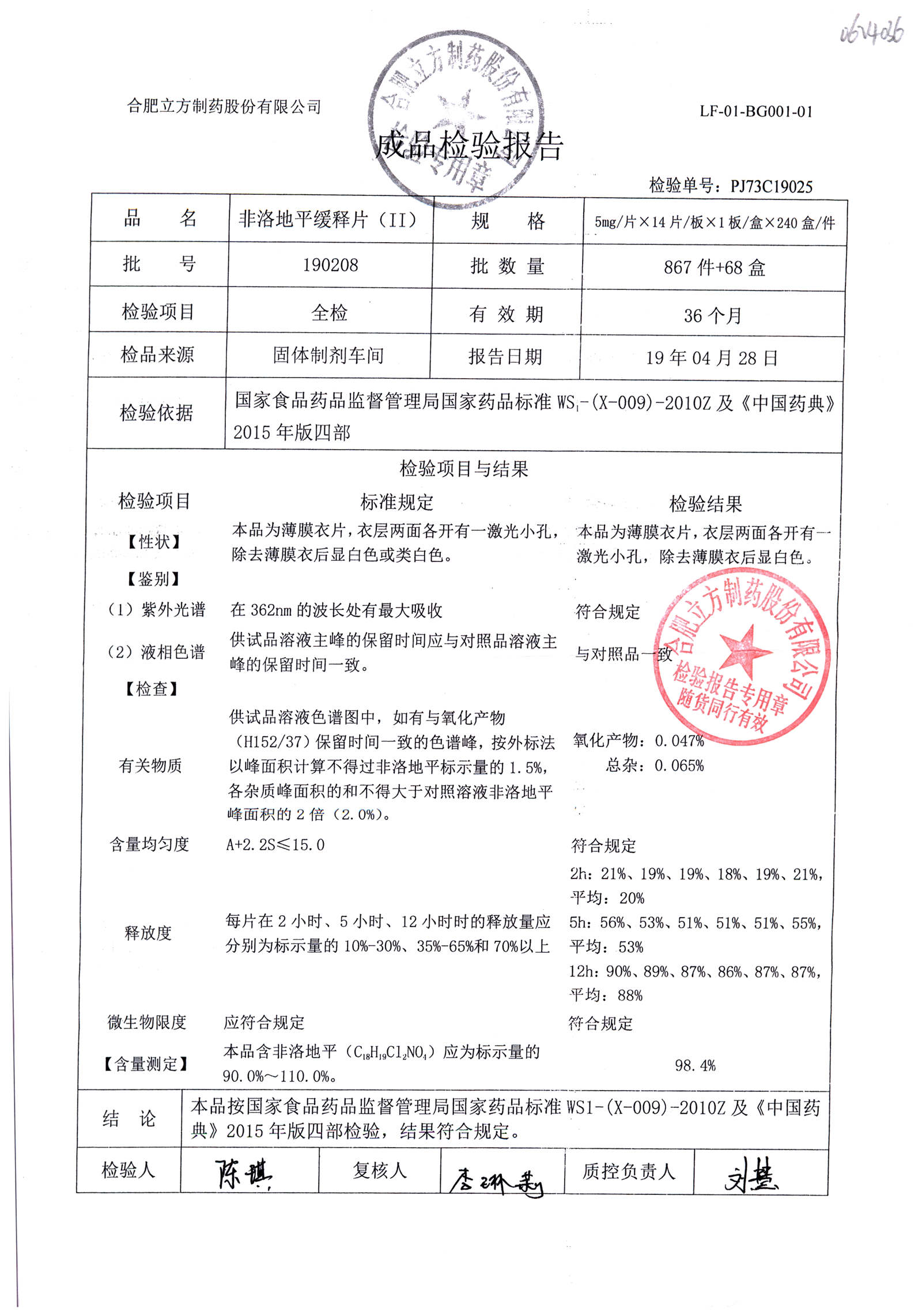 | 非洛地平緩釋片 | 5mg*14s | 190806 | 查看詳情 |