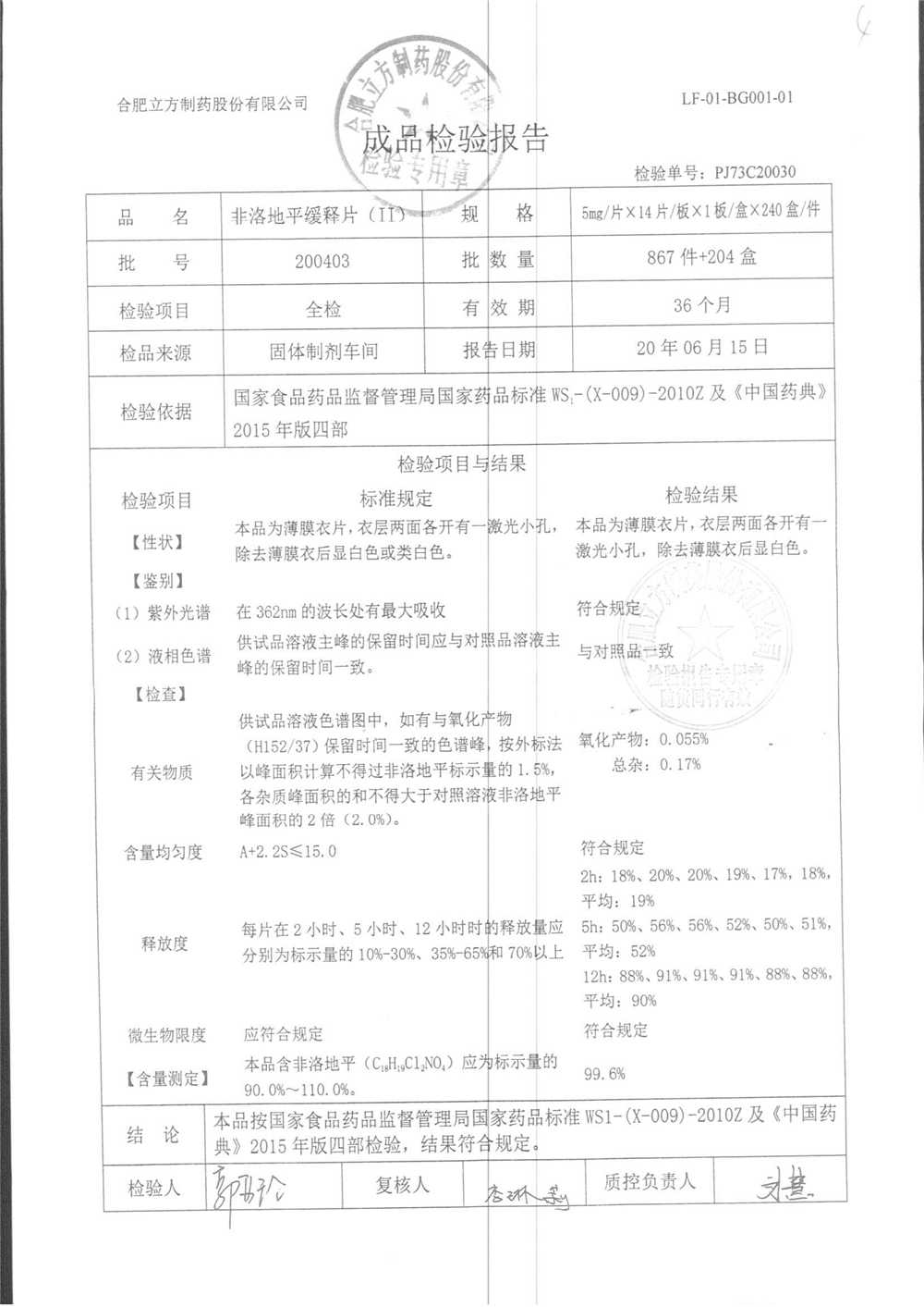 | 非洛地平緩釋片 | 5mg*14s | 200608 | 查看詳情 |