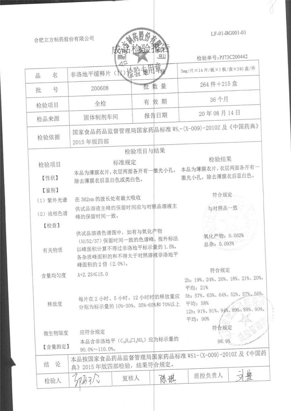 | 非洛地平緩釋片 | 5mg*14s | 200809 | 查看詳情 |