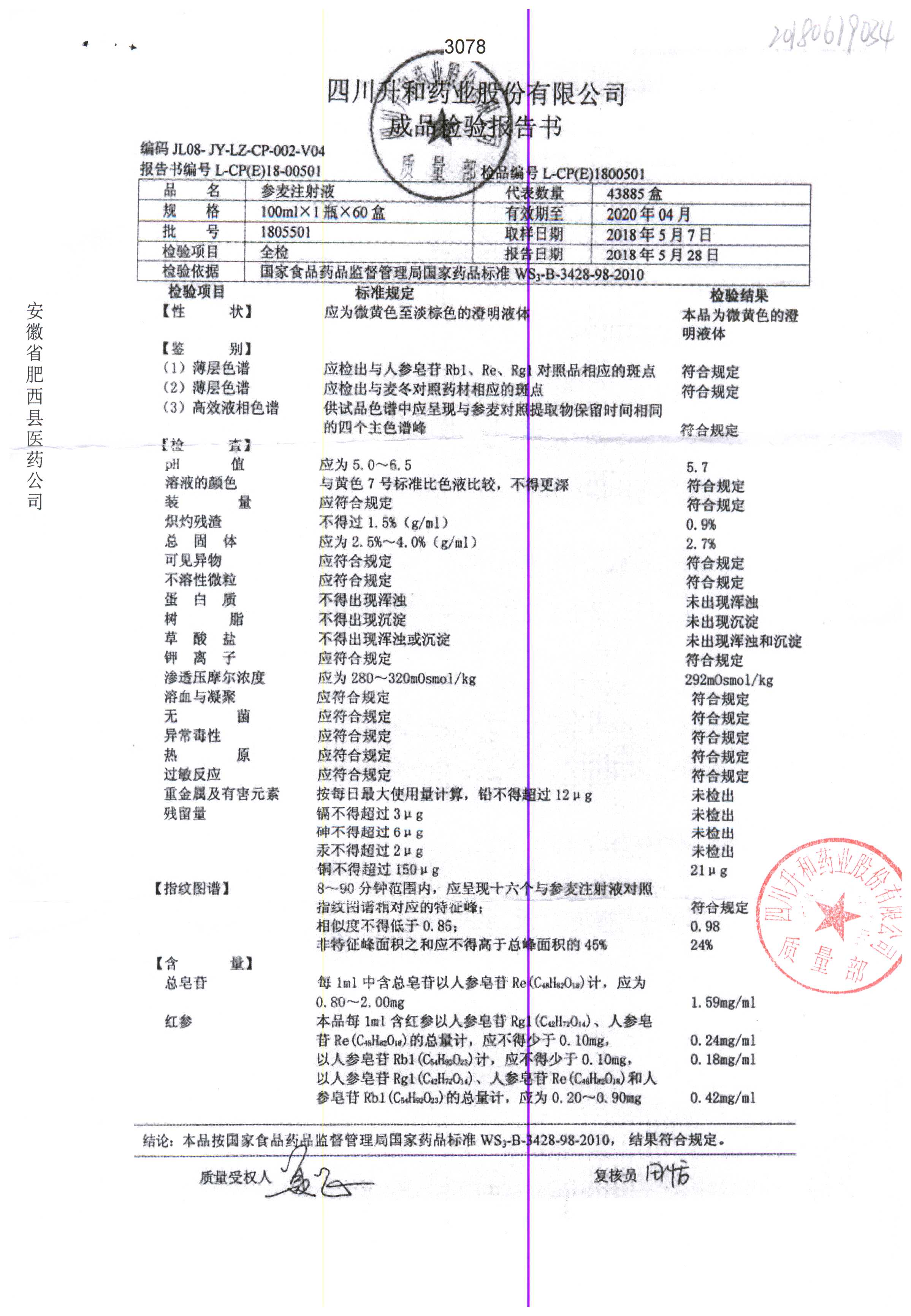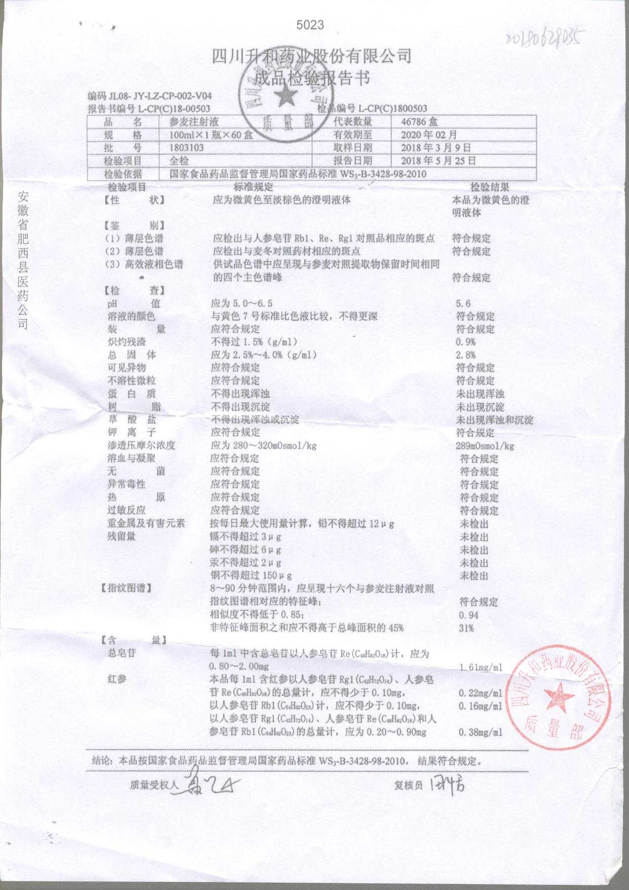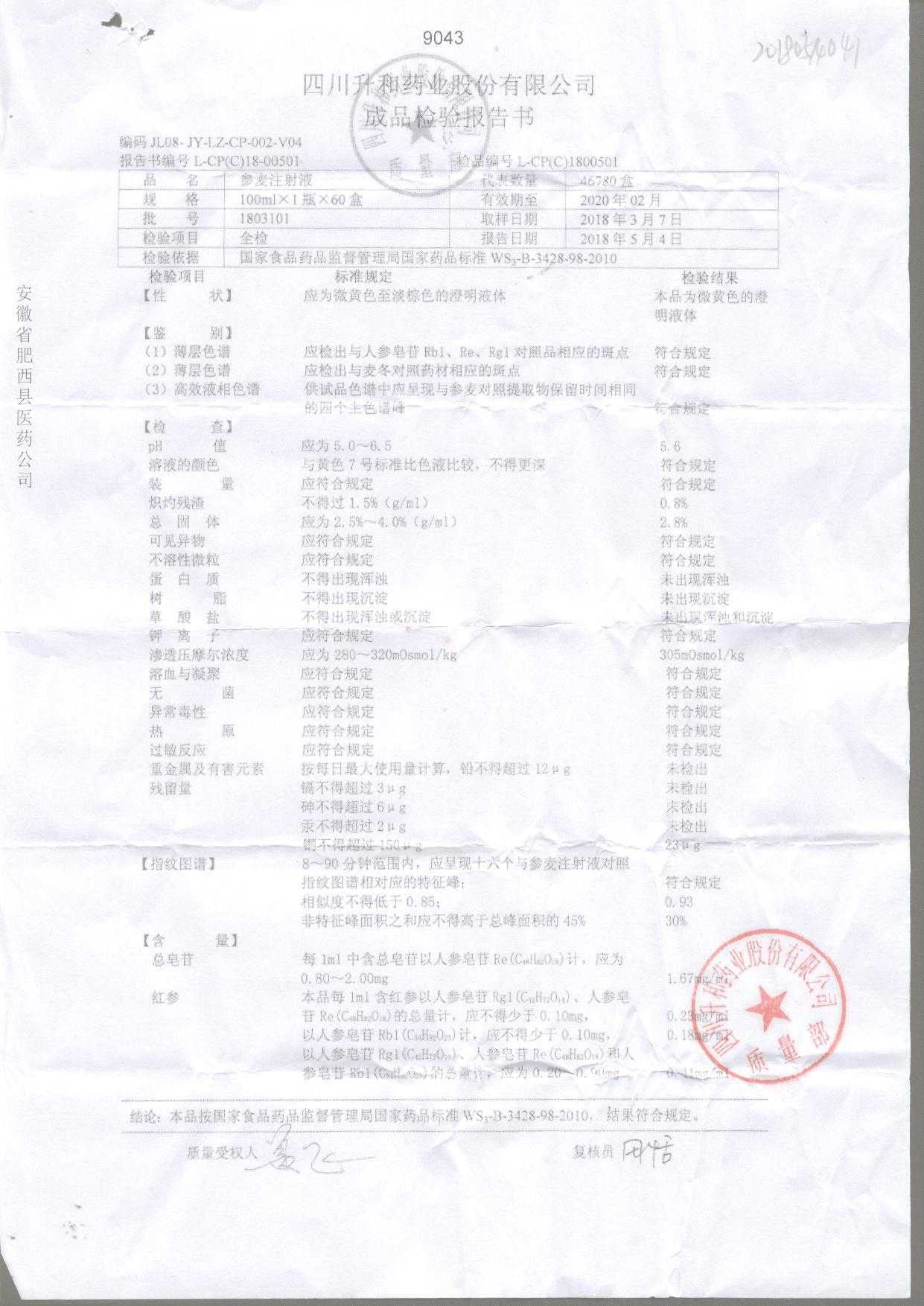 | 參麥注射液 | 100ml*1瓶 | 1803101 | 查看詳情 |