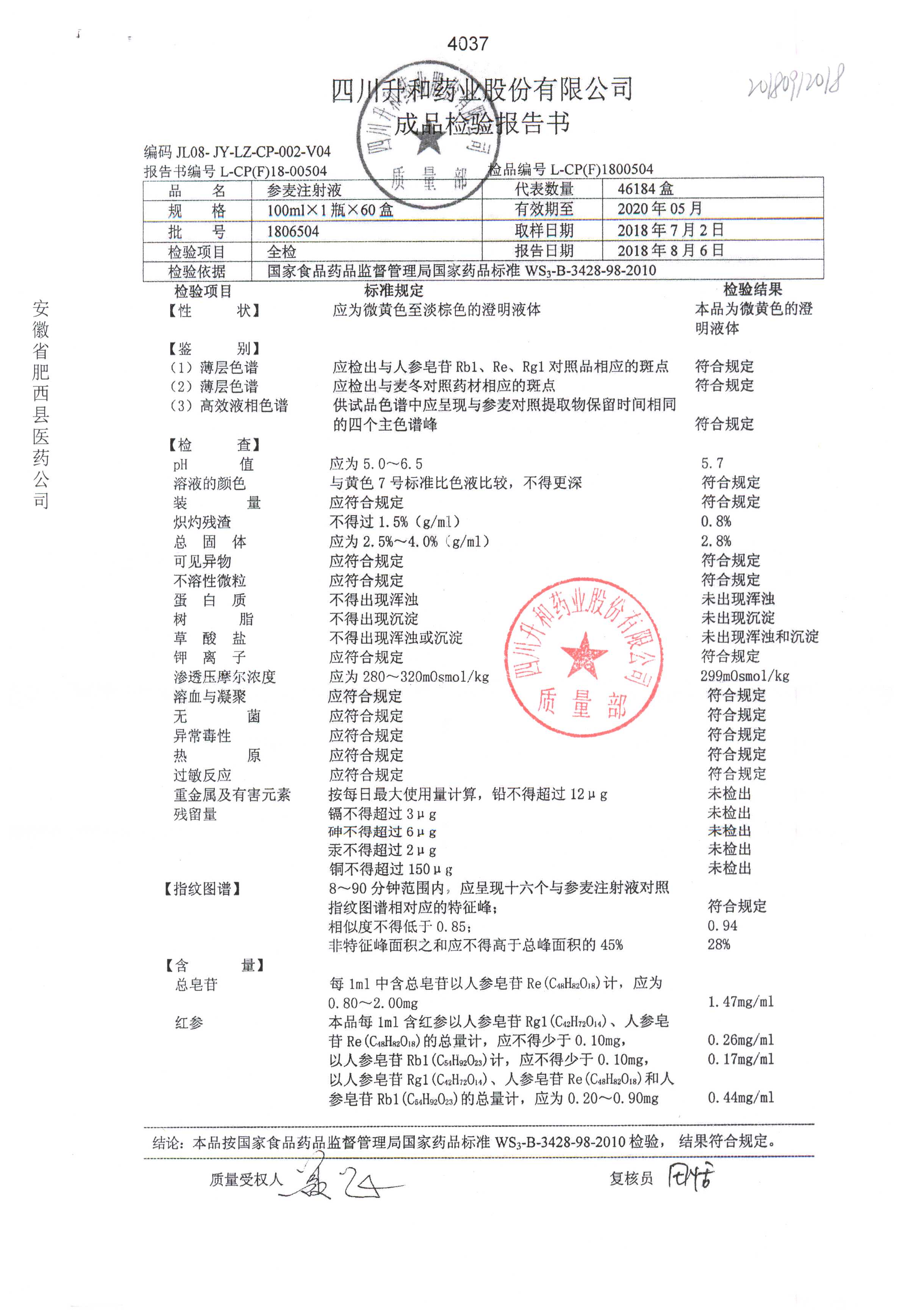 | 參麥注射液 | 100ml*1瓶 | 1803103 | 查看詳情 |