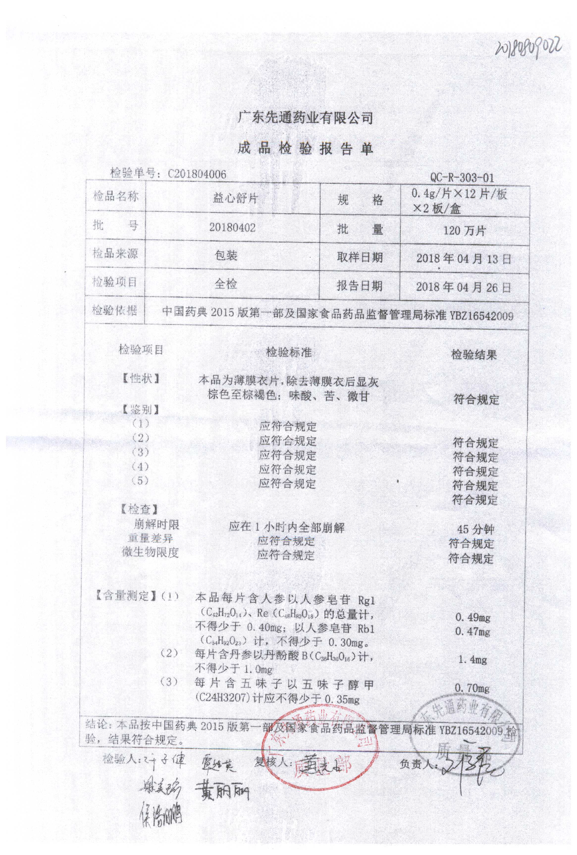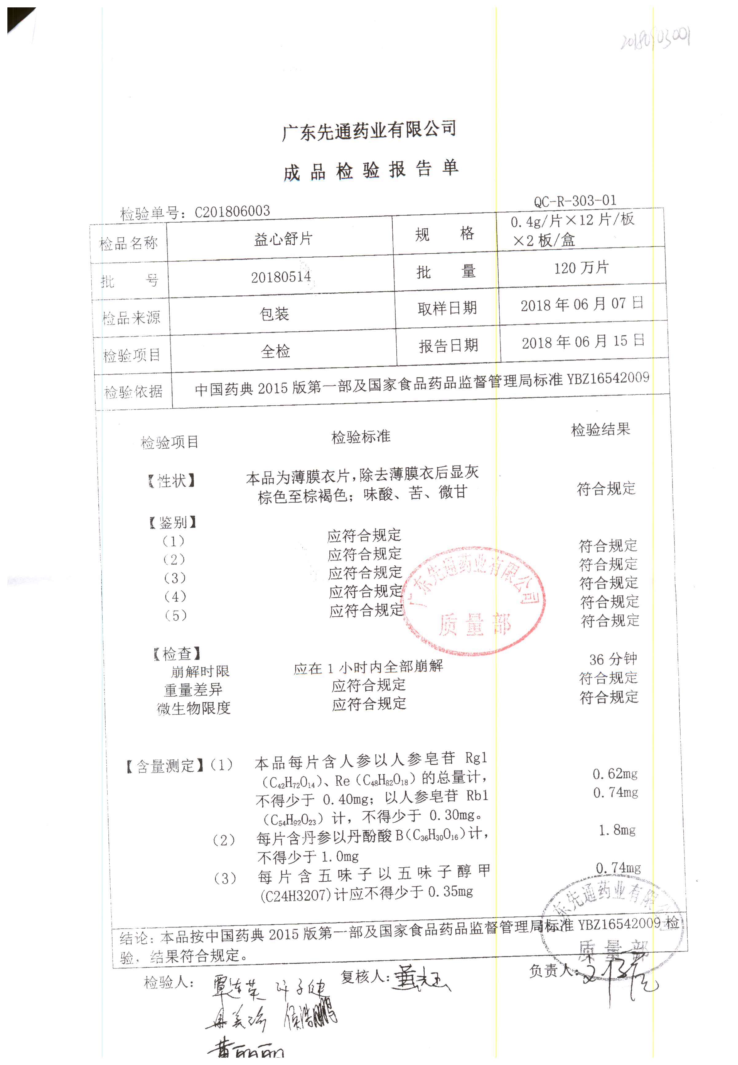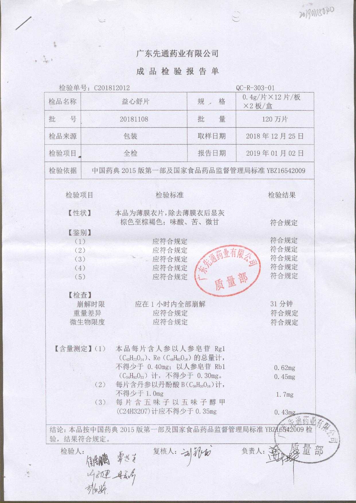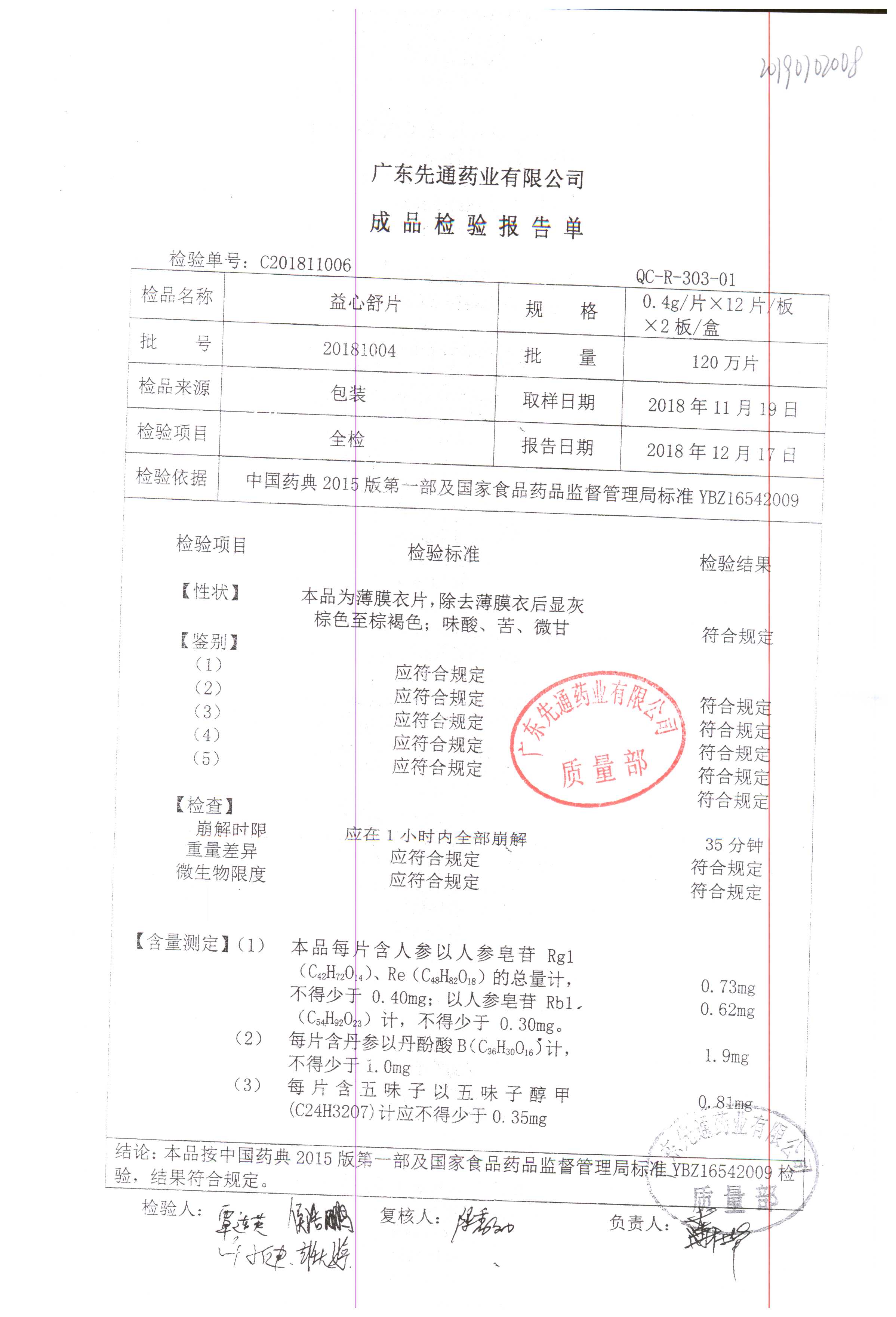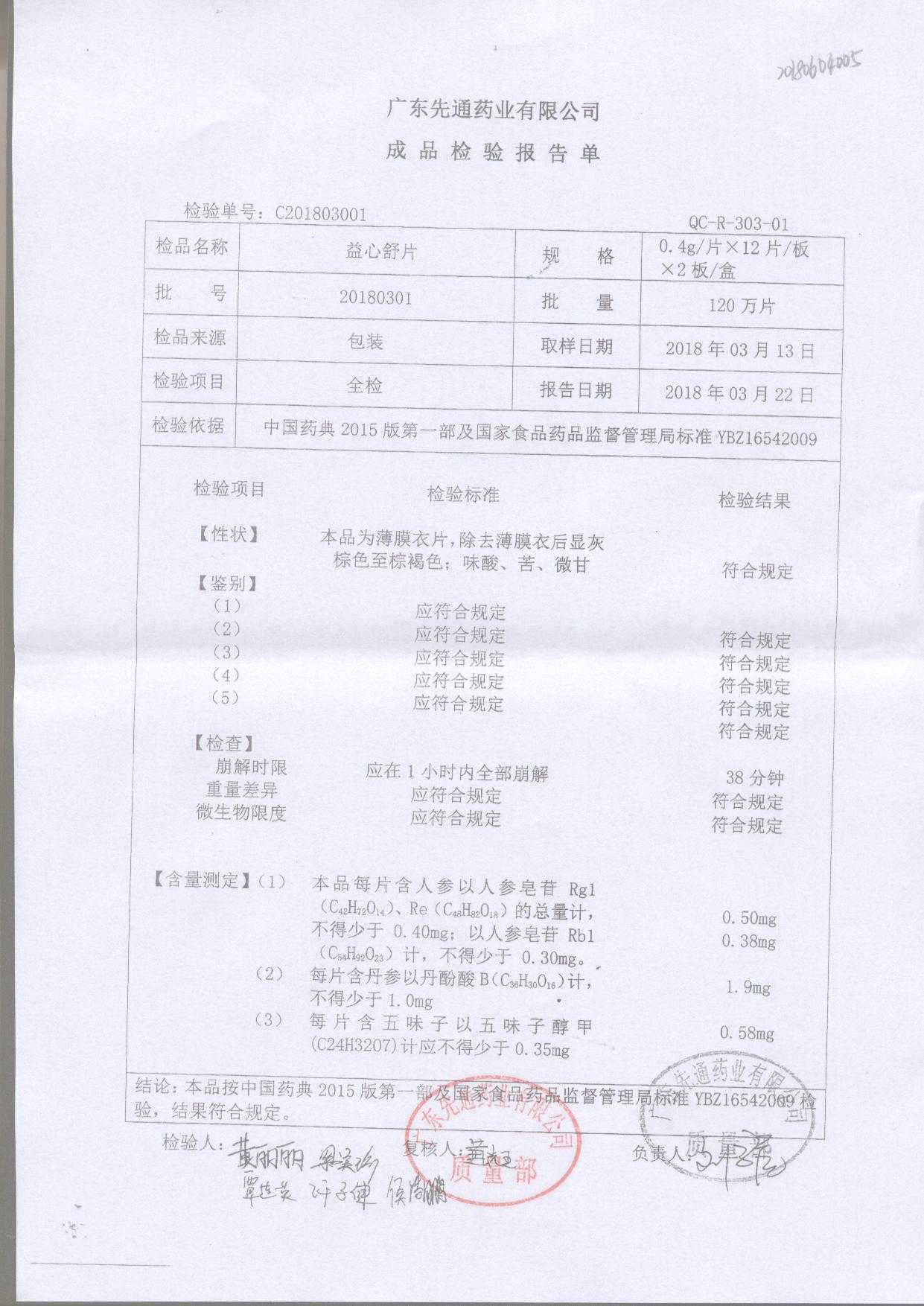 | 益心舒片 | 0.4g*24s | 20181108 | 查看詳情 |