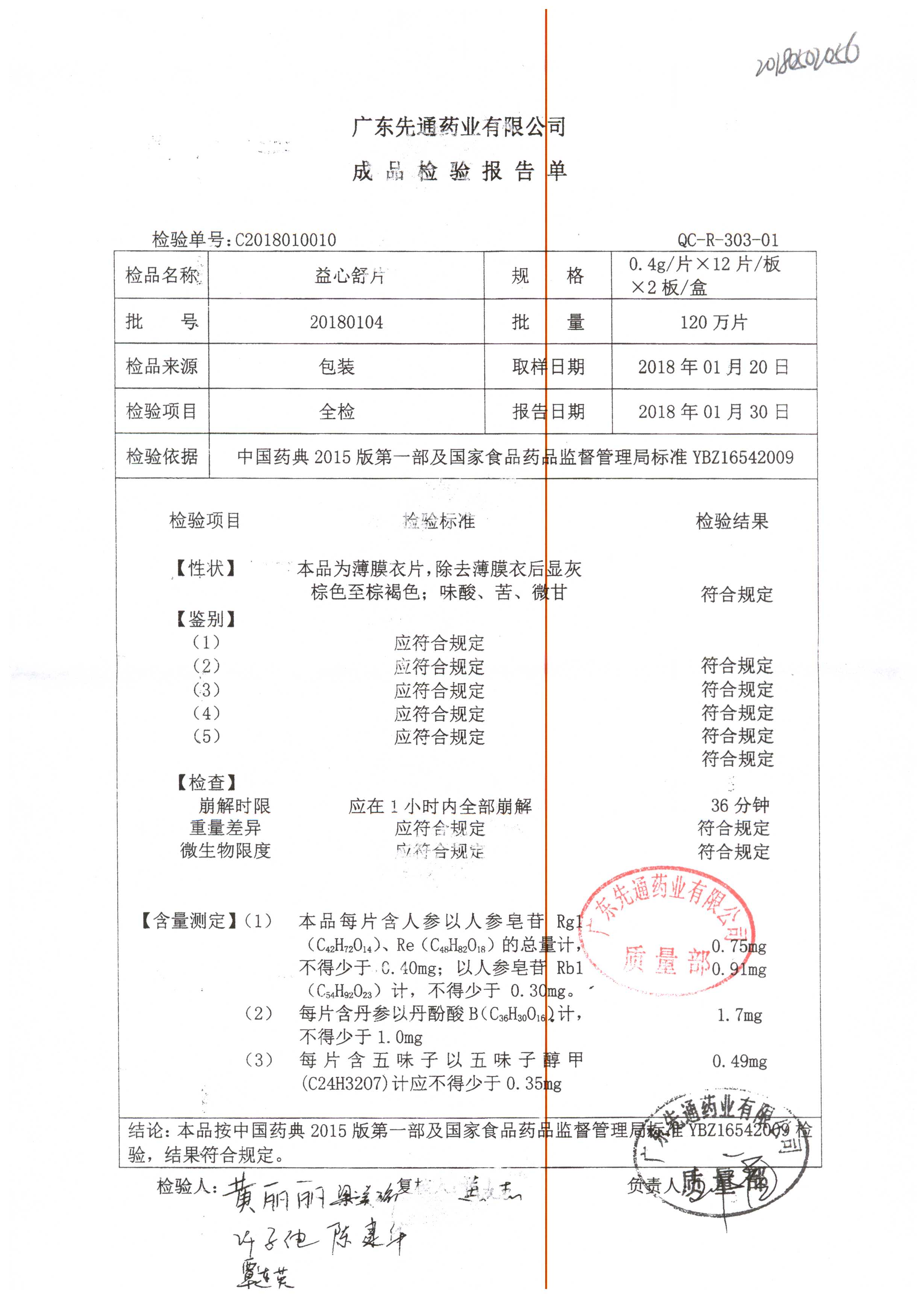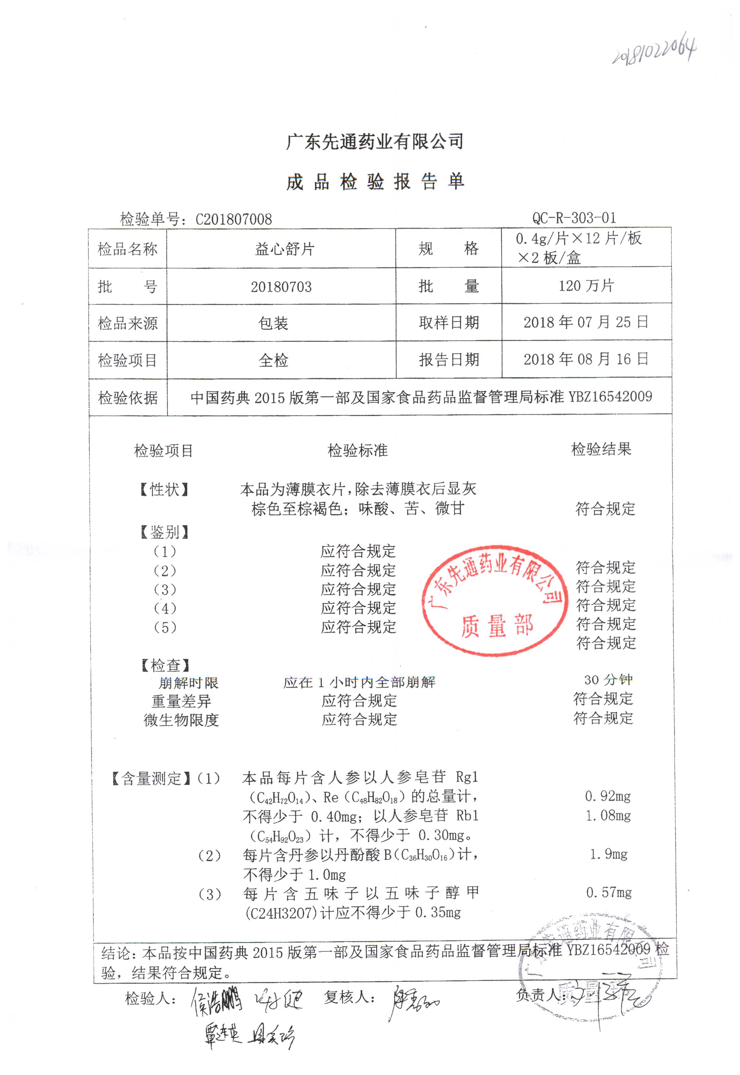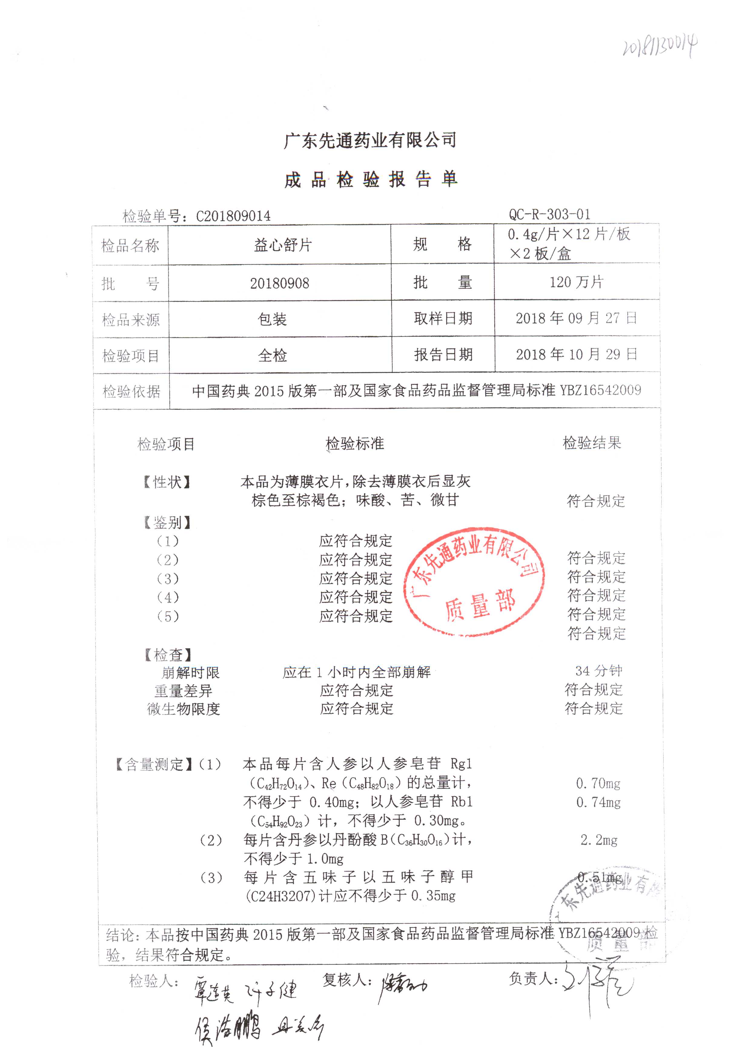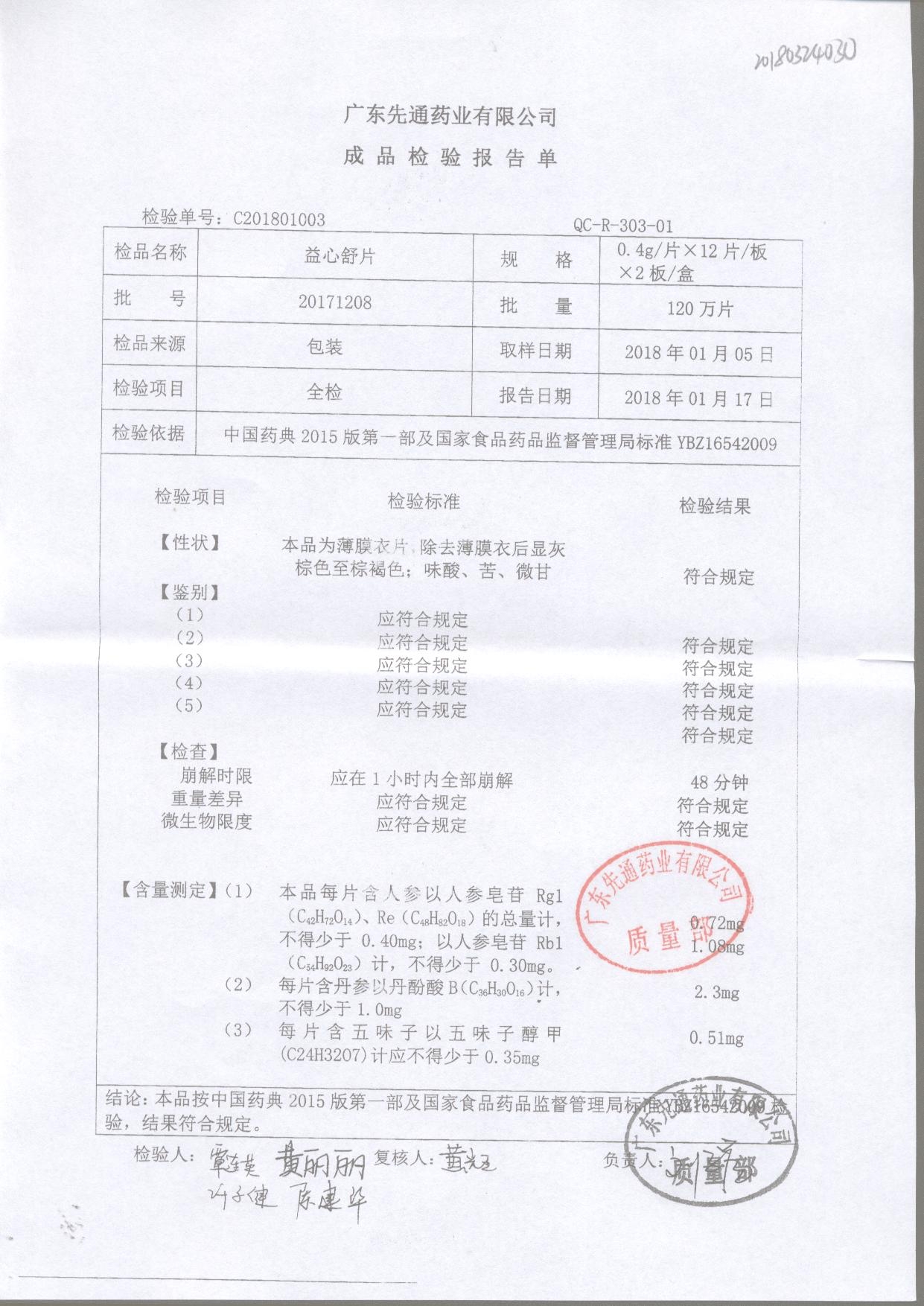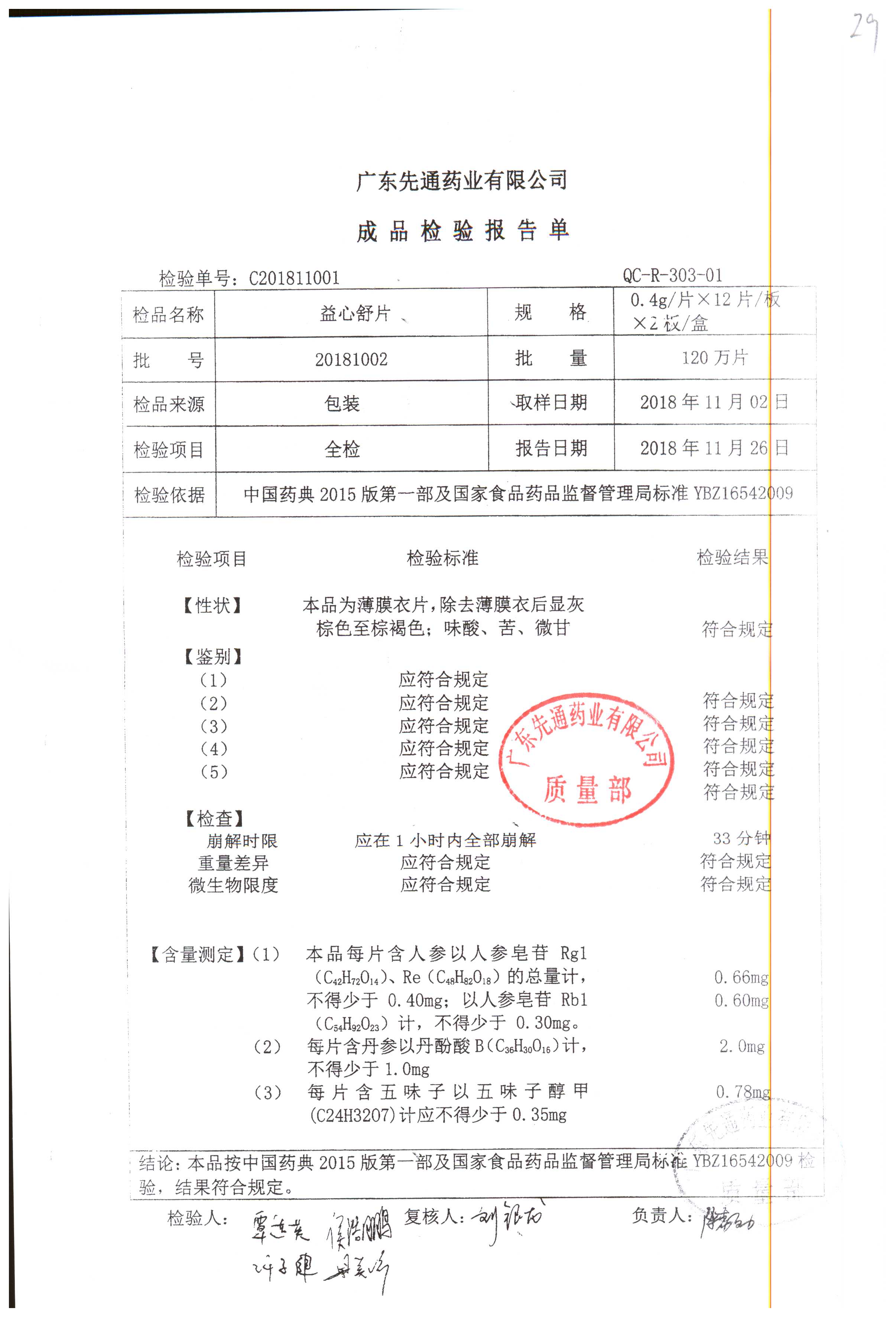 | 益心舒片 | 0.4g*24s | 20181108 | 查看詳情 |