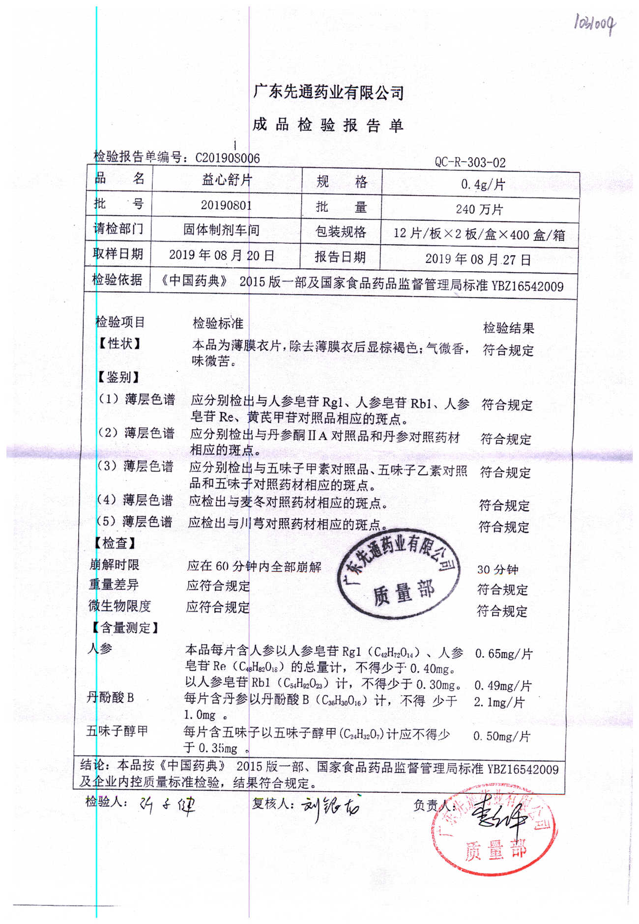 | 益心舒片 | 0.4g*24s | 20191001 | 查看詳情 |