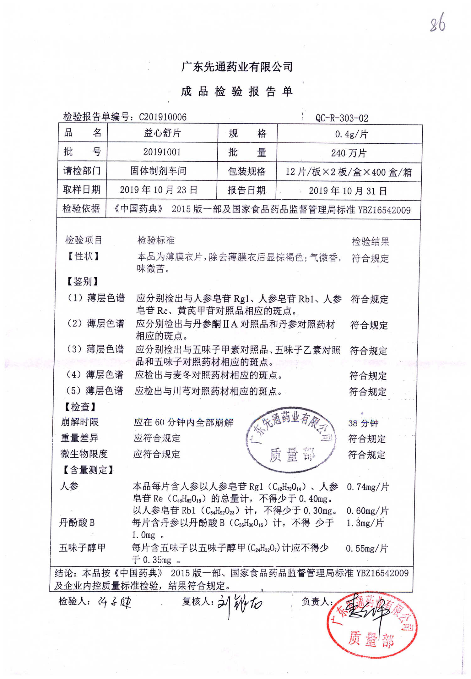 | 益心舒片 | 0.4g*24s | 20191105 | 查看詳情 |