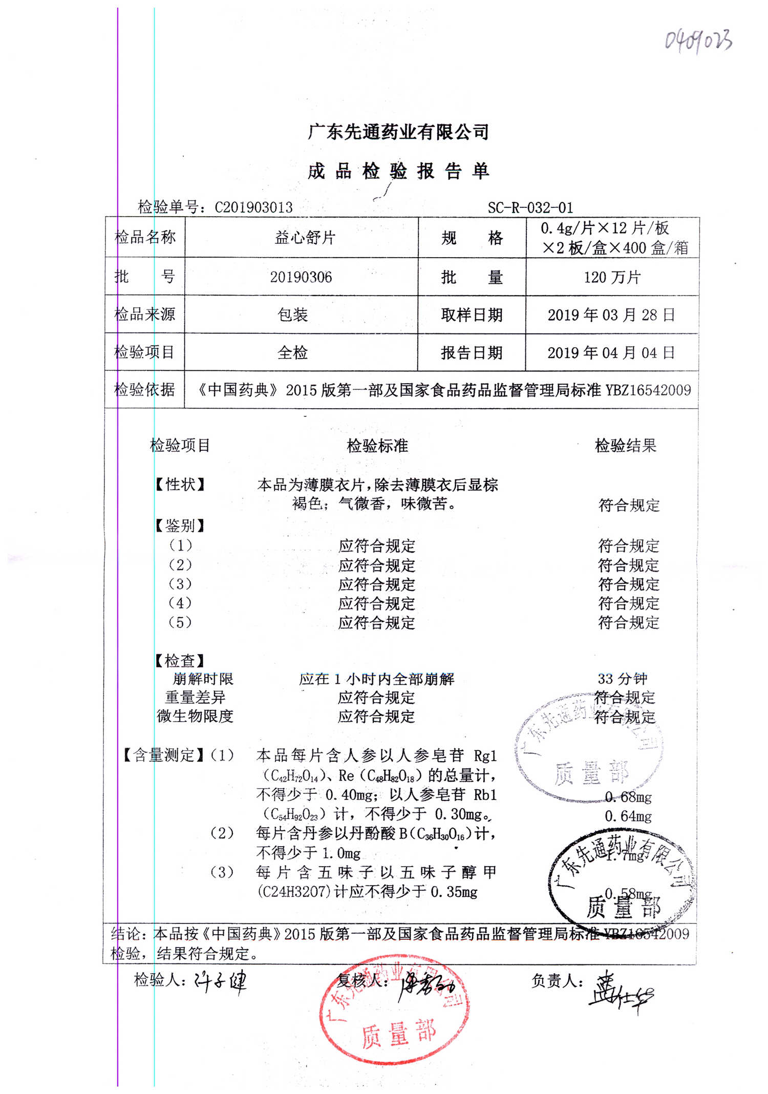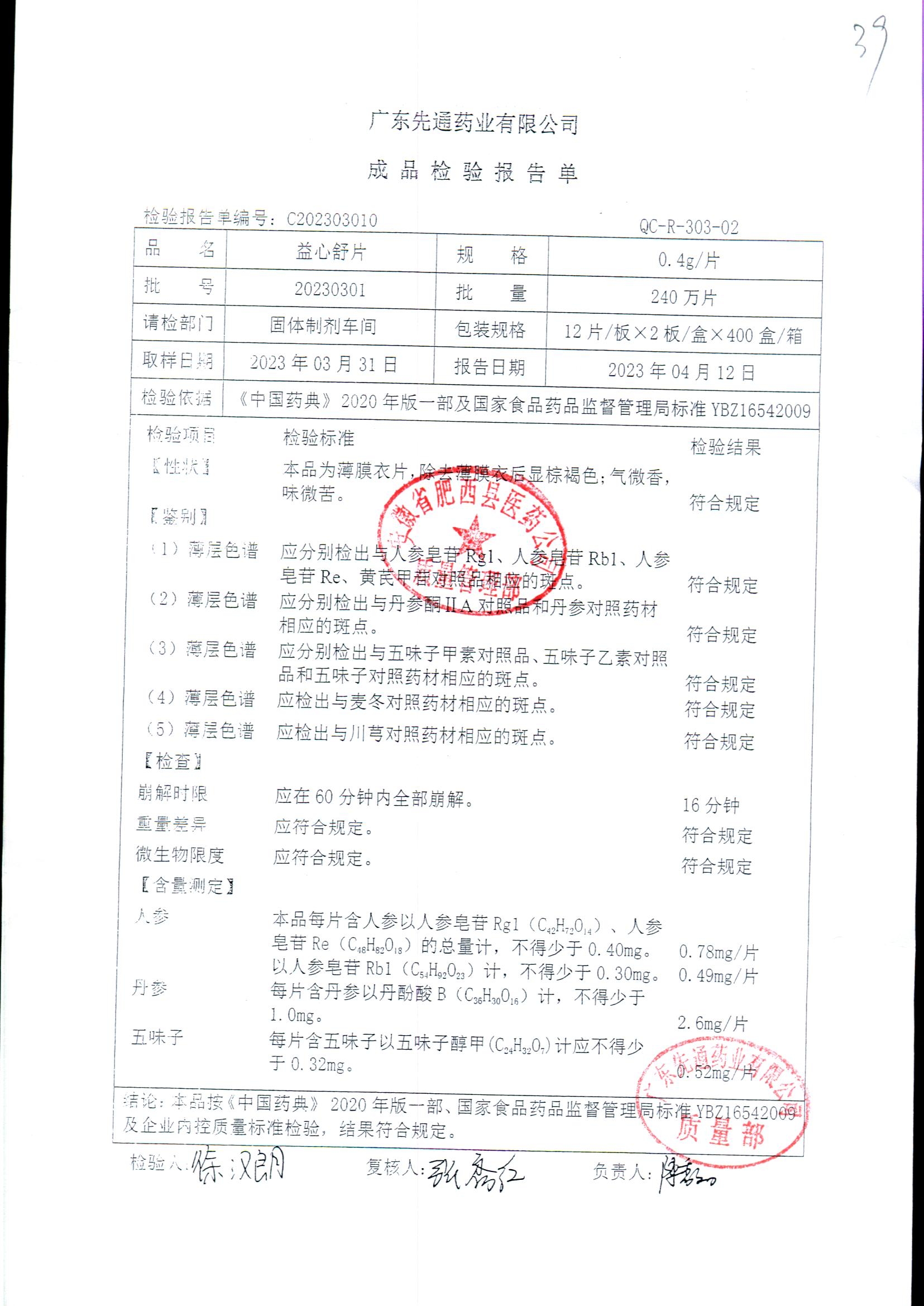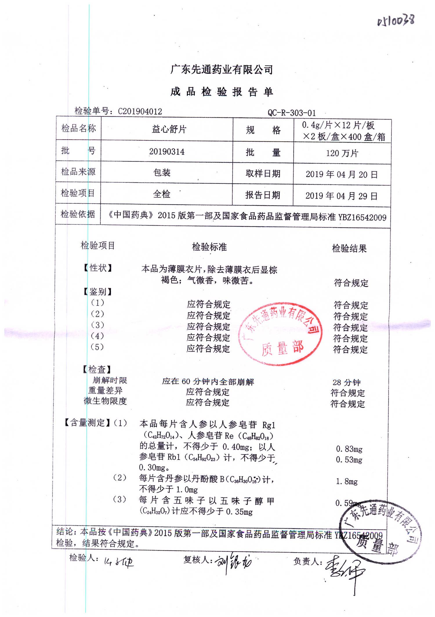 | 益心舒片 | 0.4g*24s | 20200401 | 查看詳情 |