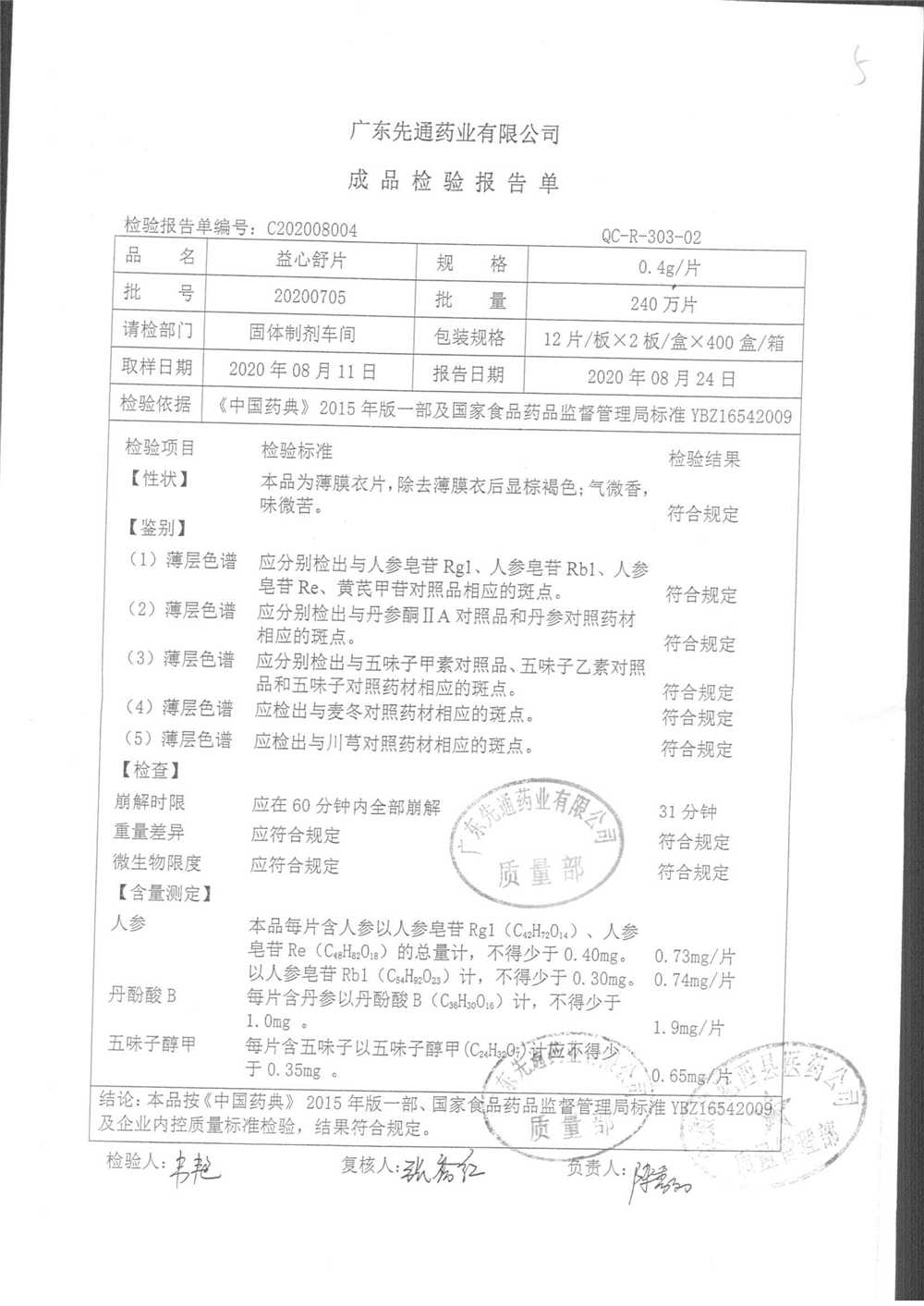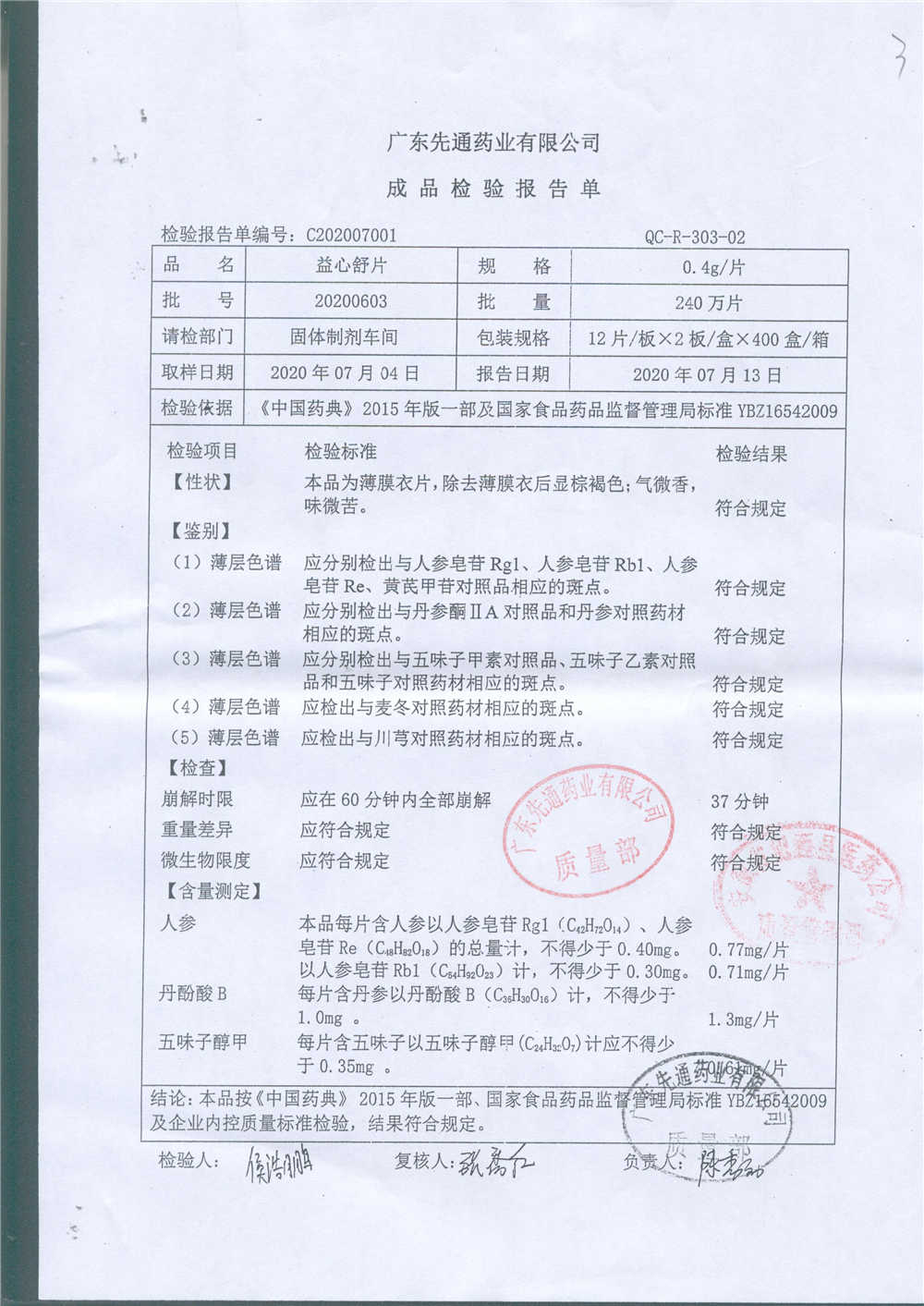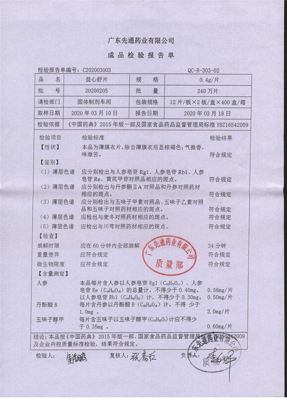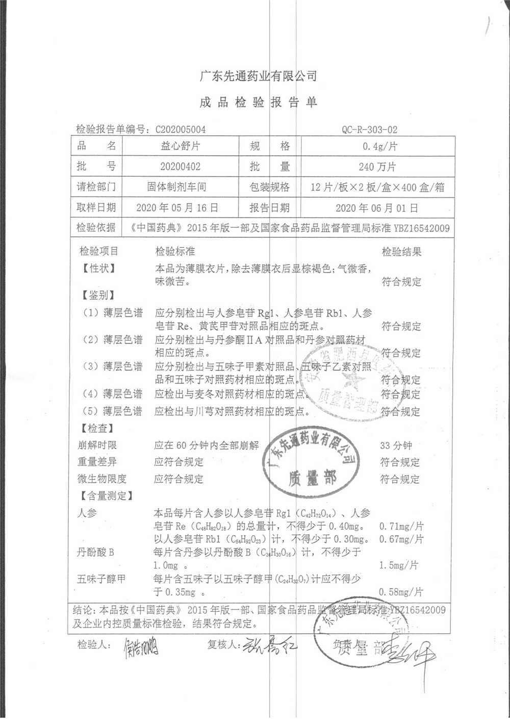 | 益心舒片 | 0.4g*24s | 20200604 | 查看詳情 |