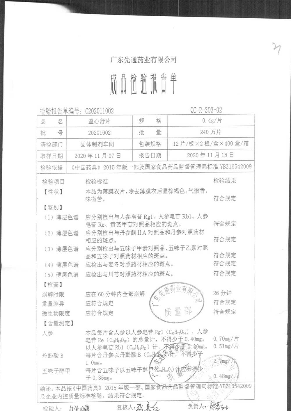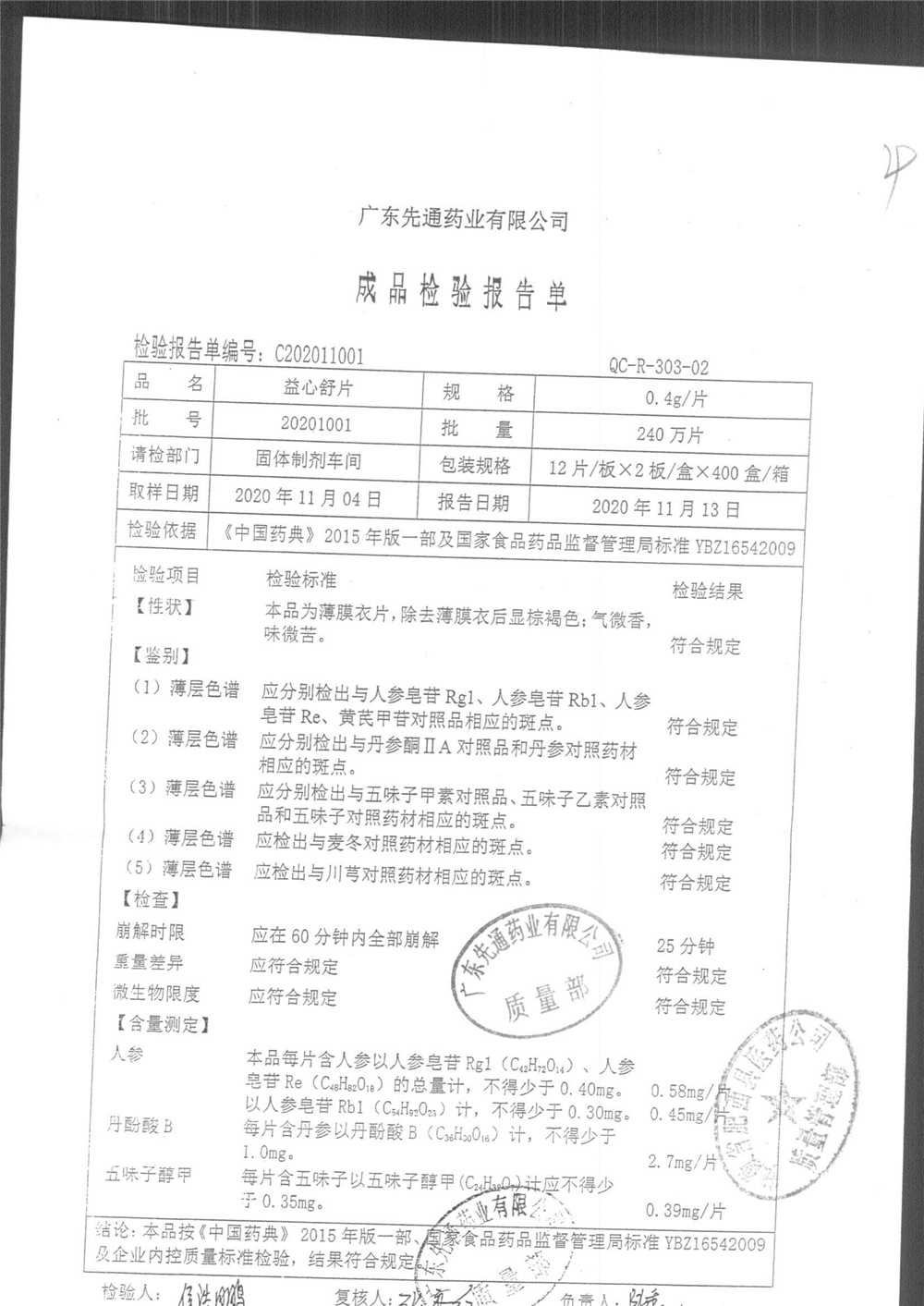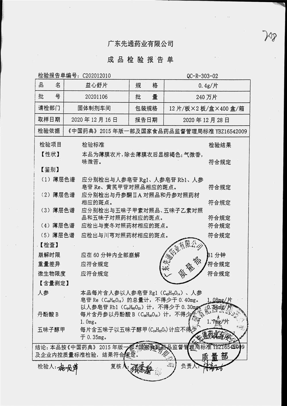 | 益心舒片 | 0.4g*24s | 20201106 | 查看詳情 |