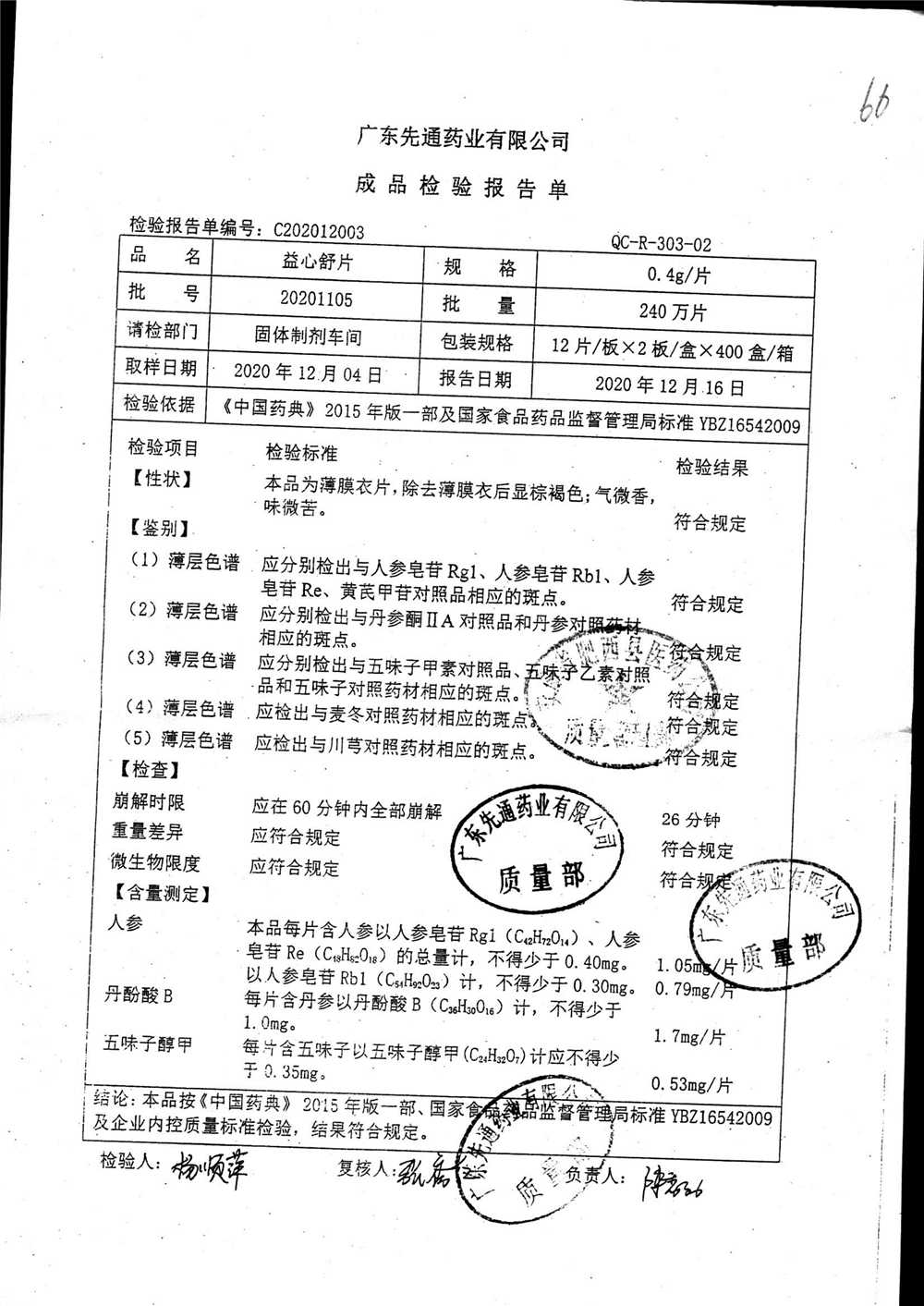 | 益心舒片 | 0.4g*24s | 20201105 | 查看詳情 |