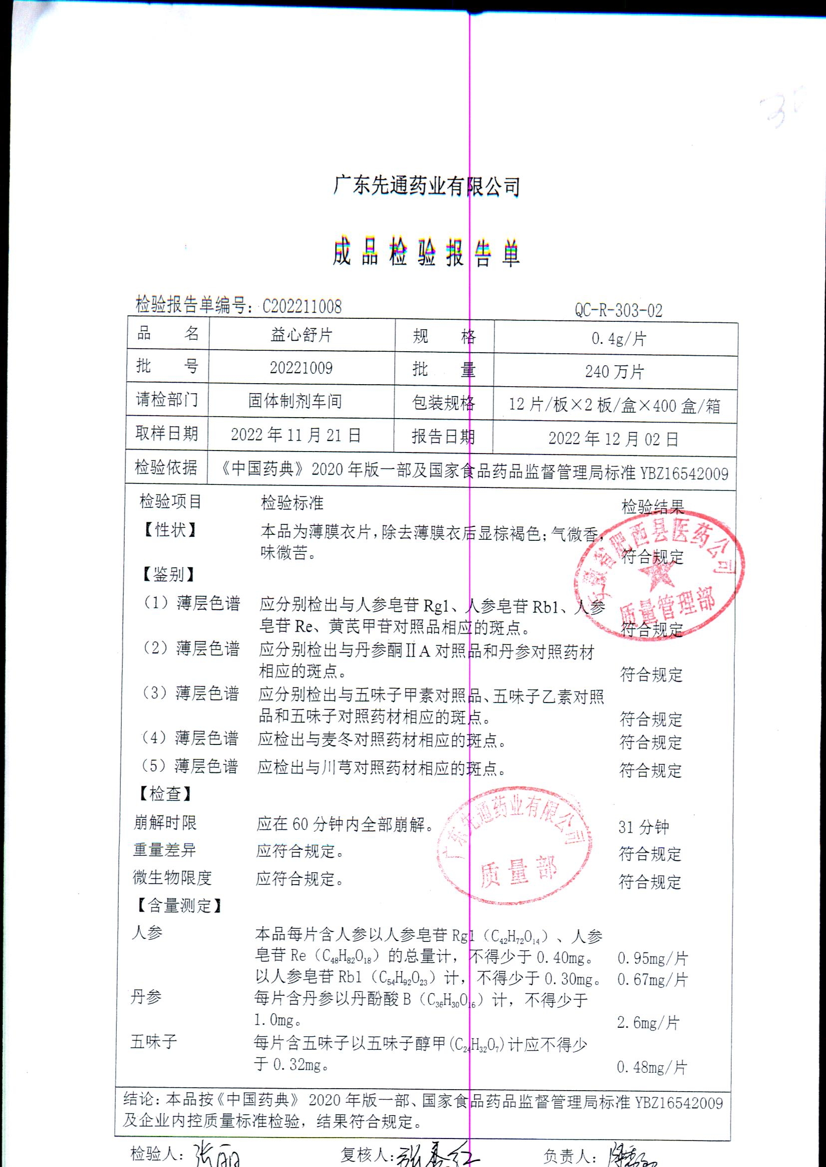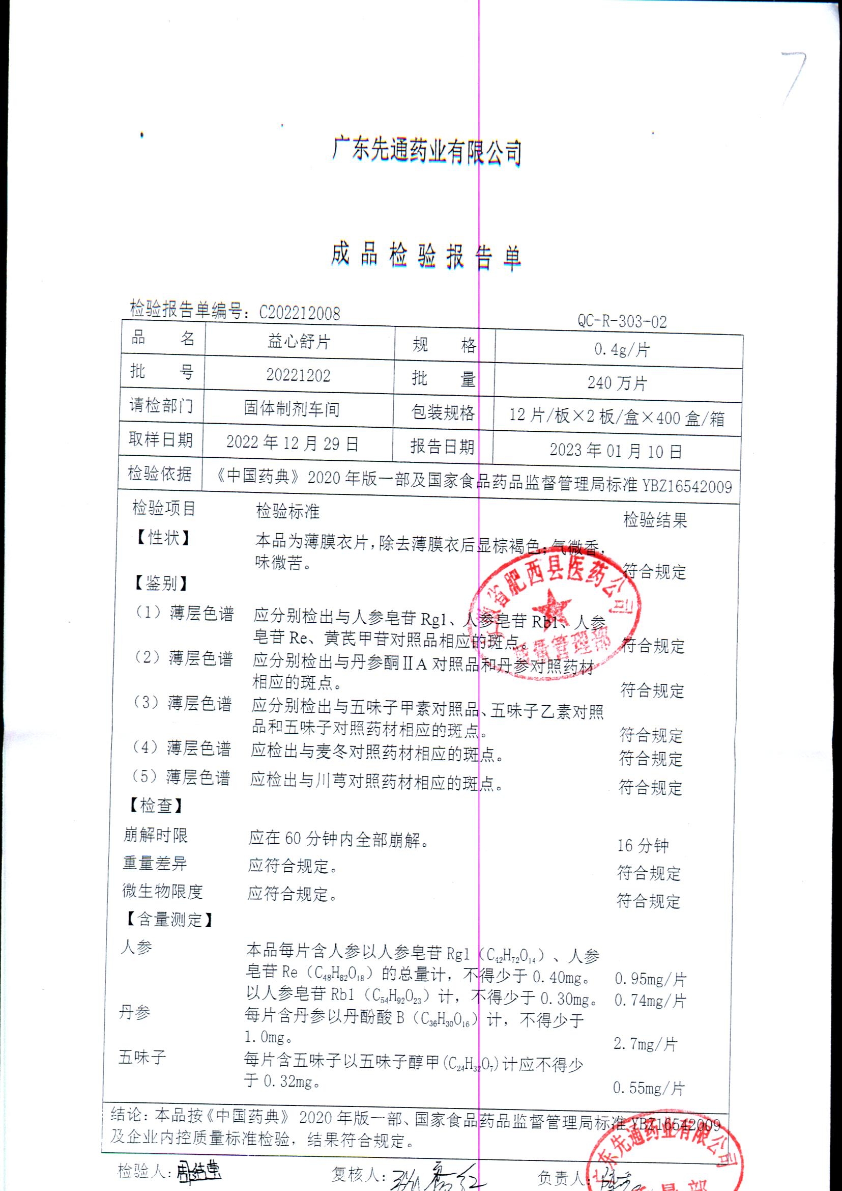 | 益心舒片 | 0.4g*24s | 20221202 | 查看詳情 |