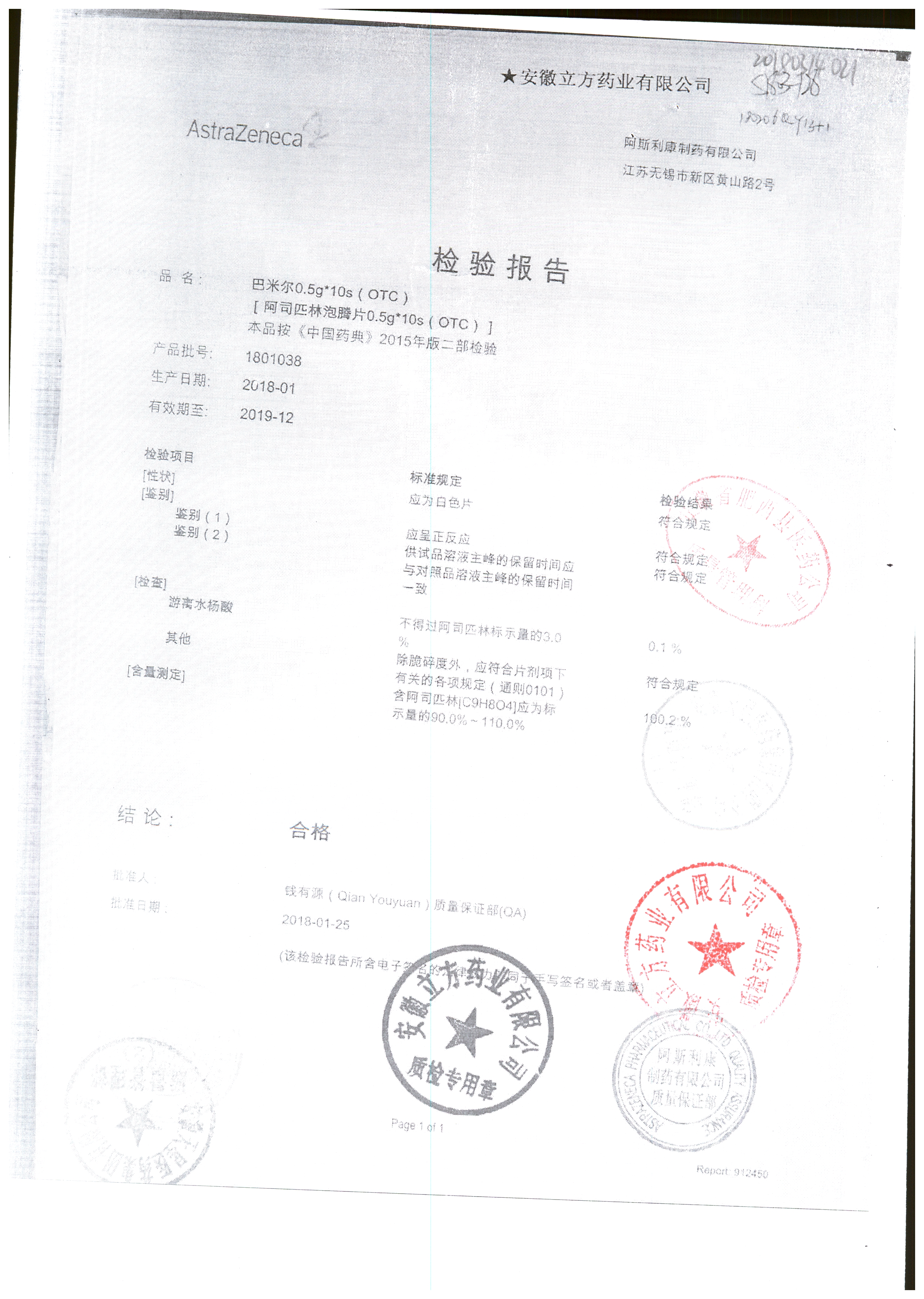 阿司匹林腸溶片 0.5g*10s 1801038 查看詳情