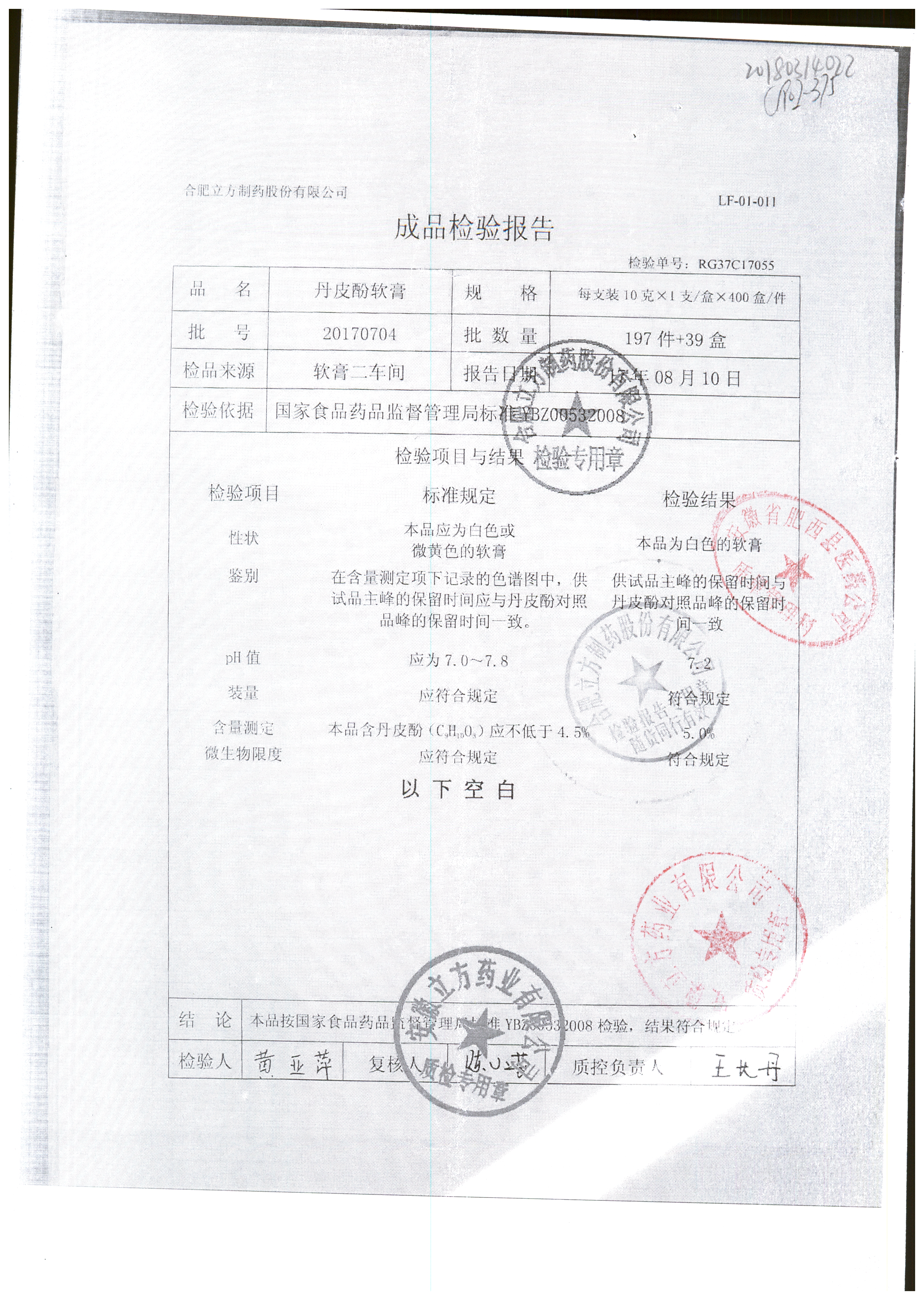 | 丹皮酚軟膏 | 10g | 20170704 | 查看詳情 |