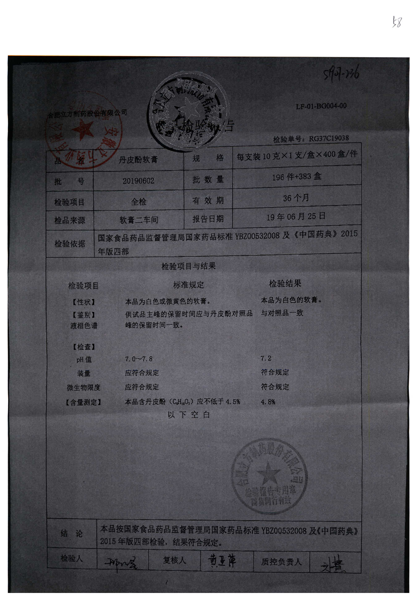 | 丹皮酚軟膏 | 10g | 20190602 | 查看詳情 |
