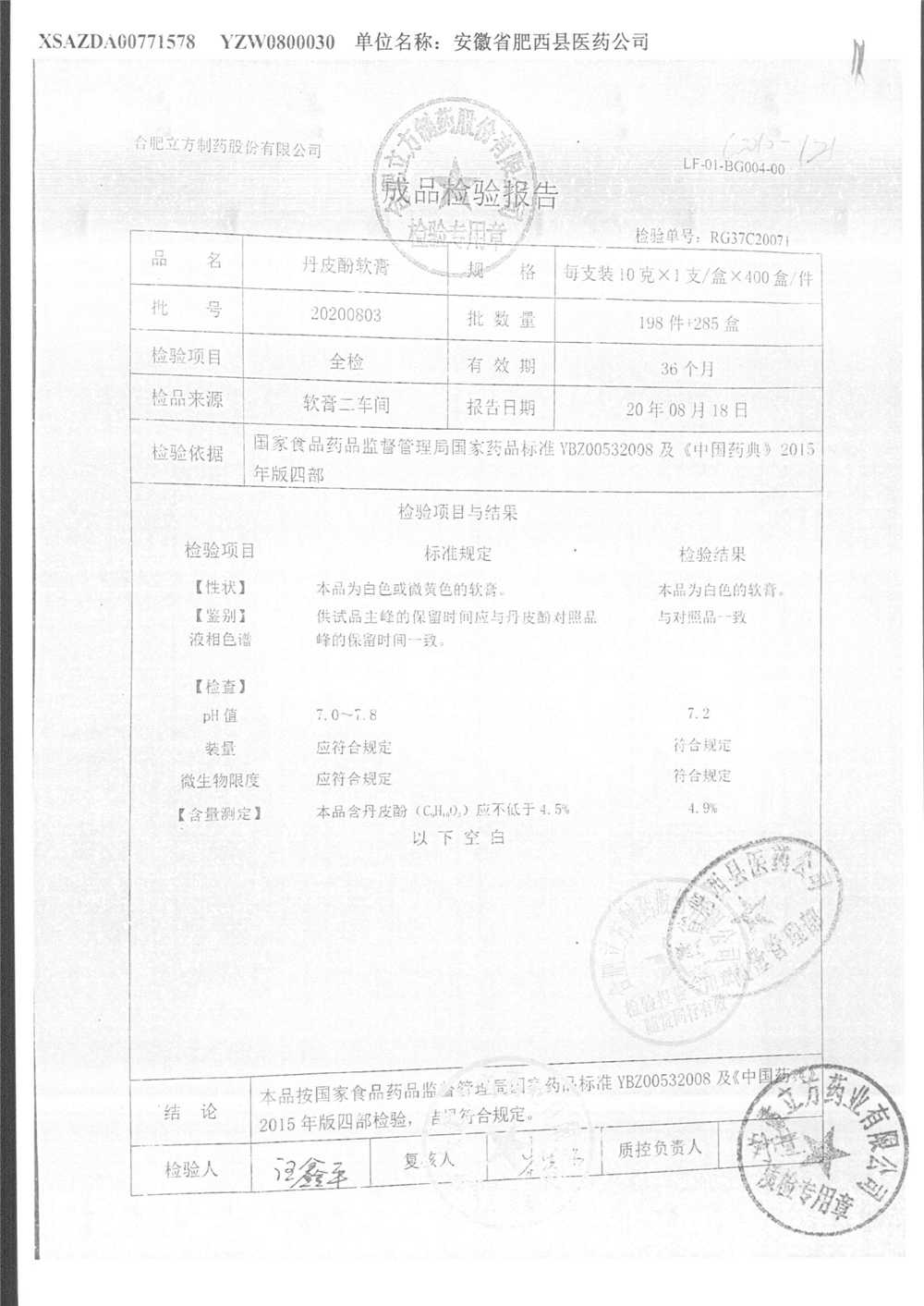 | 丹皮酚軟膏 | 10g | 20200803 | 查看詳情 |