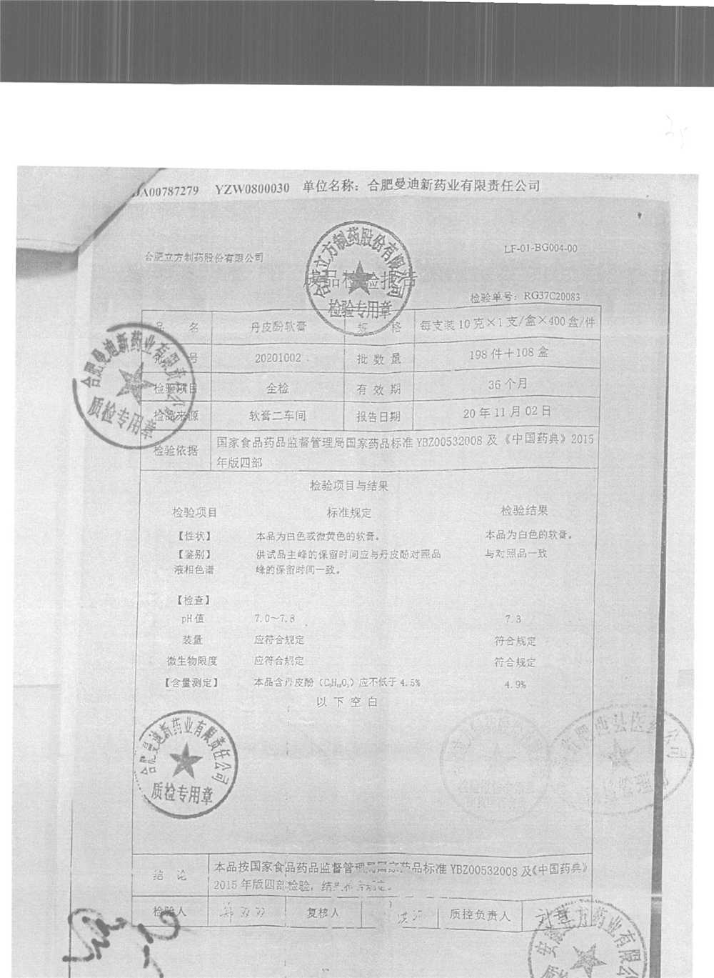 | 丹皮酚軟膏 | 10g | 20201202 | 查看詳情 |