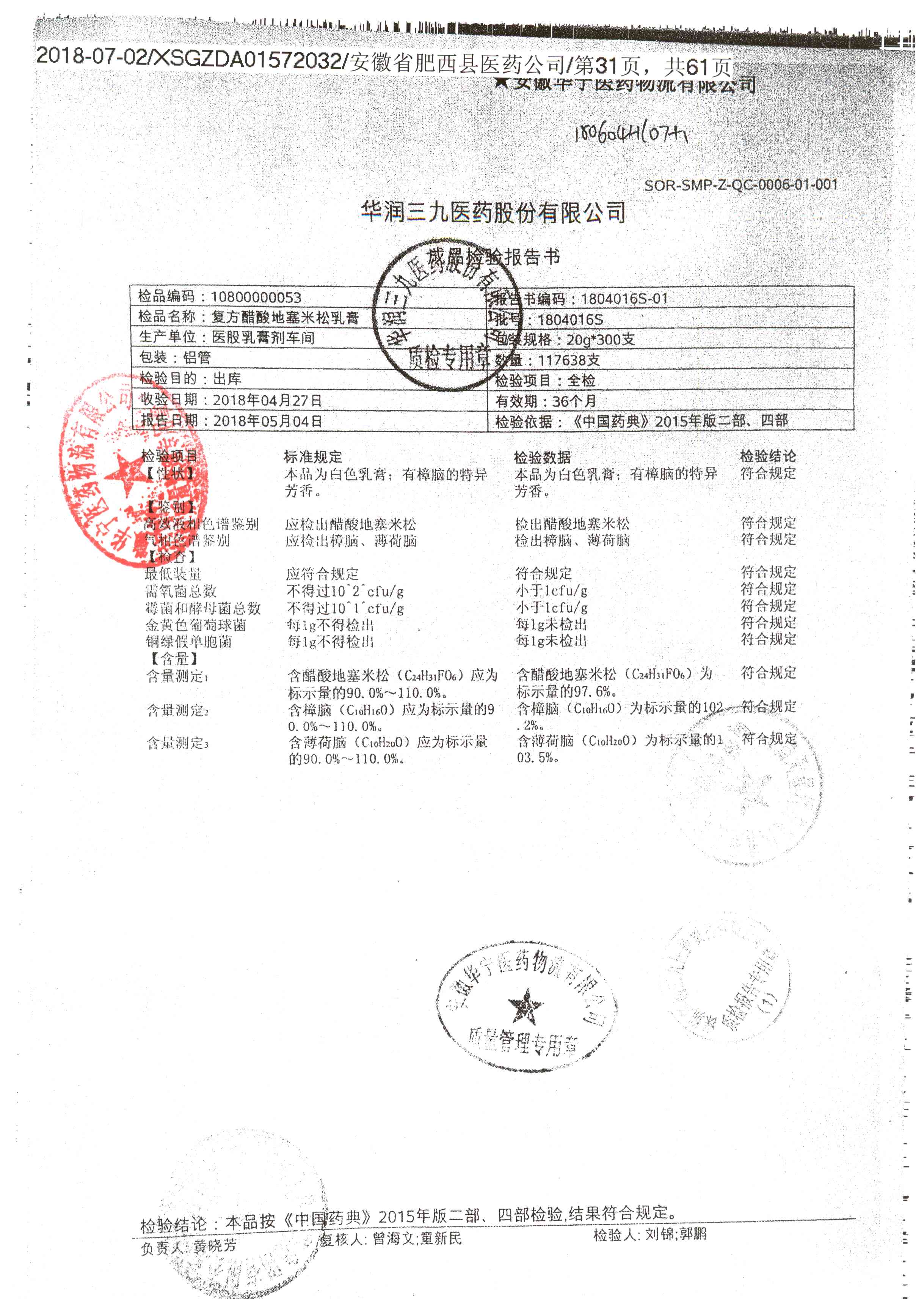 | 復(fù)方醋酸地塞米松乳膏 | 20g | 1804014S | 查看詳情 |