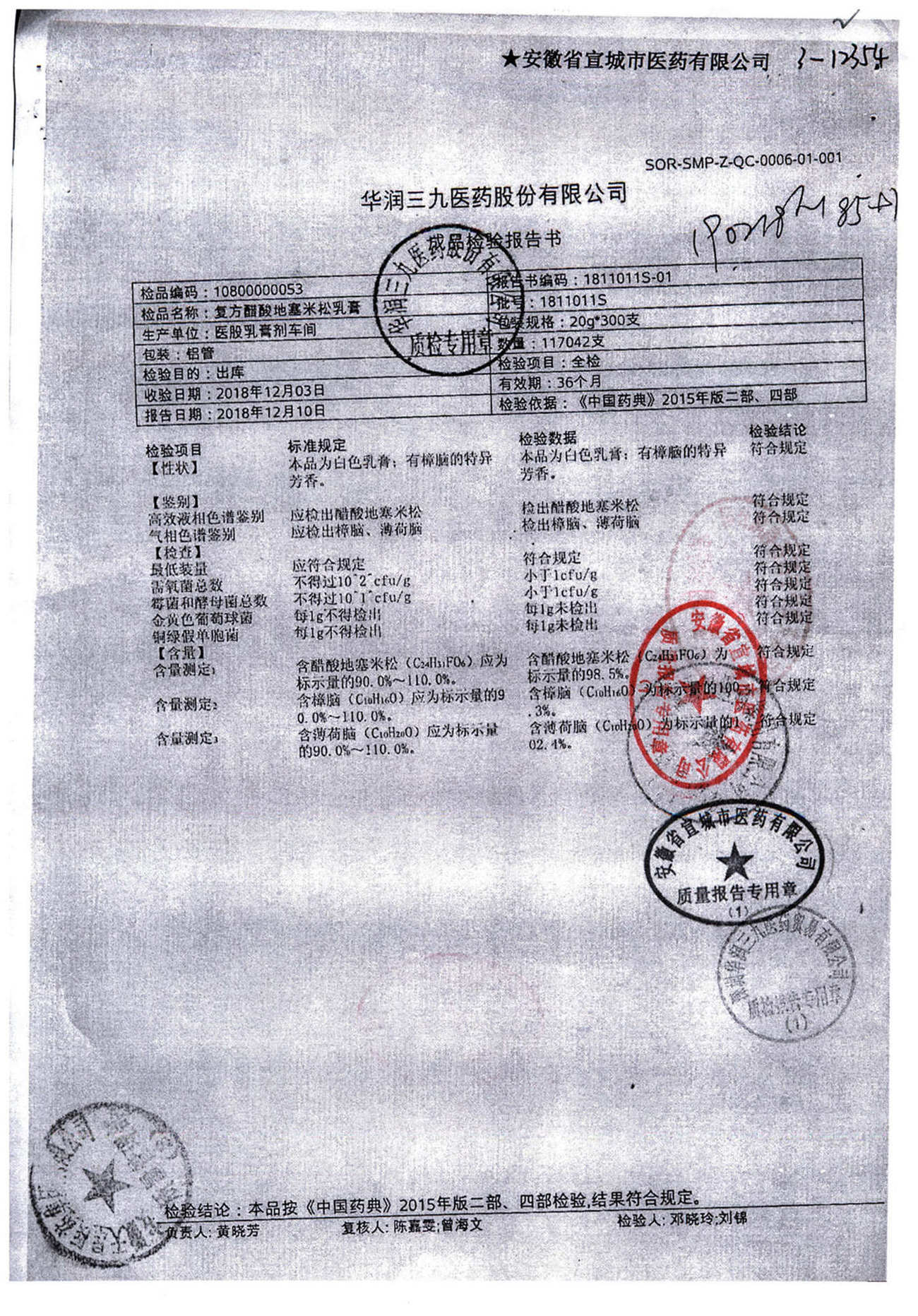 | 名稱 | 規(guī)格 | 批號 | 藥檢報告 |