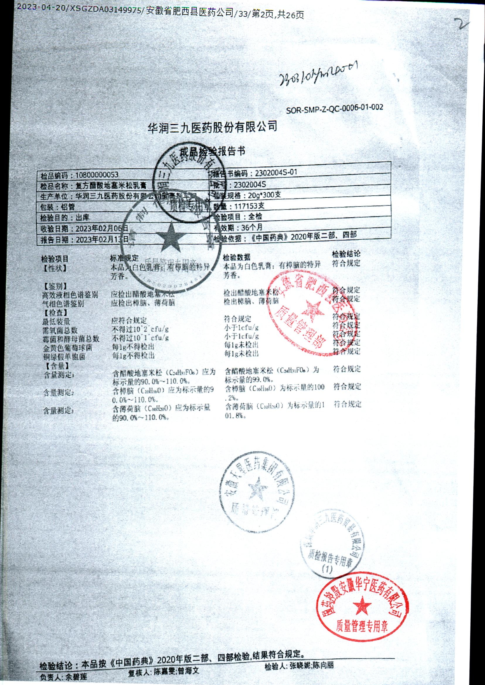 | 復(fù)方醋酸地塞米松乳膏 | 20g | 21110225-01 | 查看詳情 |