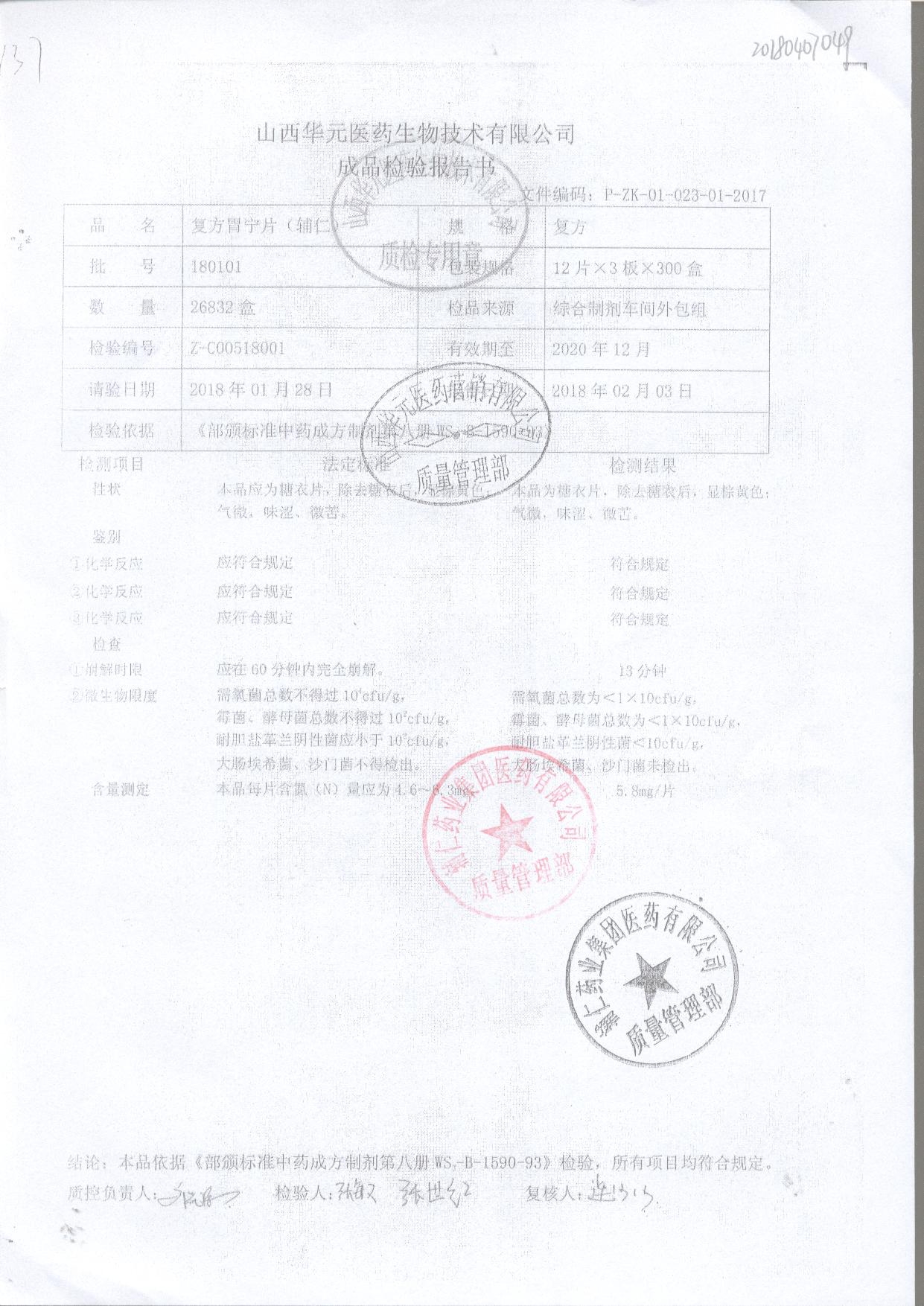 名稱 規(guī)格 批號(hào) 藥檢報(bào)告